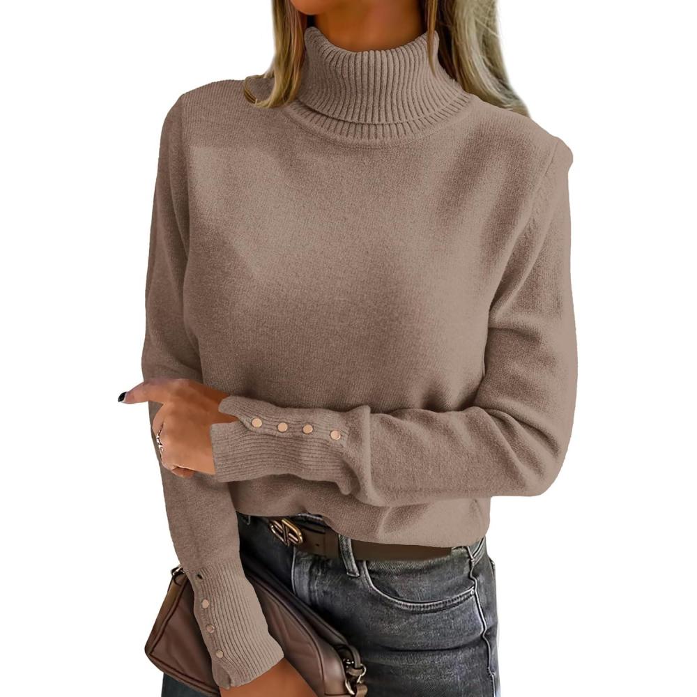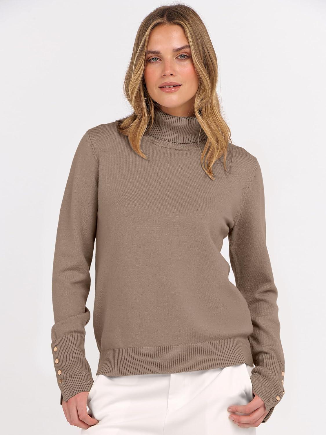 ANRABESS Turtleneck Sweaters for Women 2025 Fall Long Sleeve Dressy Casual Soft Knitted Button Basic Pullover Tops Outfits(Bright Tan)