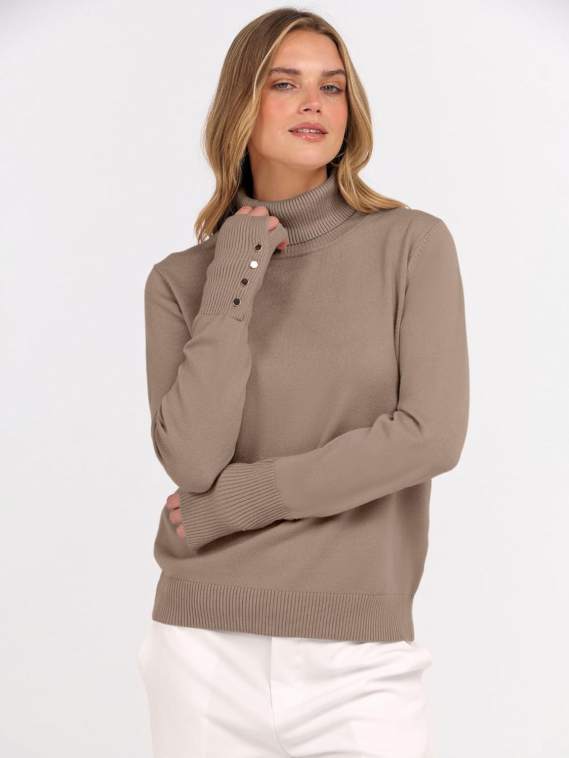 imageANRABESS Turtleneck Sweaters for Women 2025 Fall Long Sleeve Dressy Casual Soft Knitted Button Basic Pullover Tops OutfitsParchment
