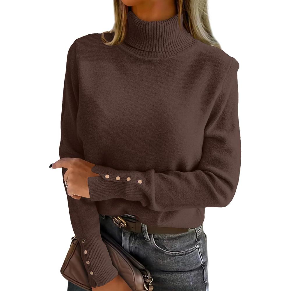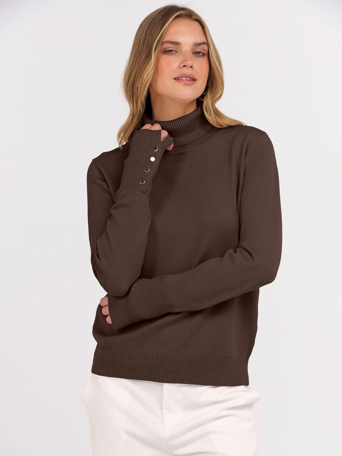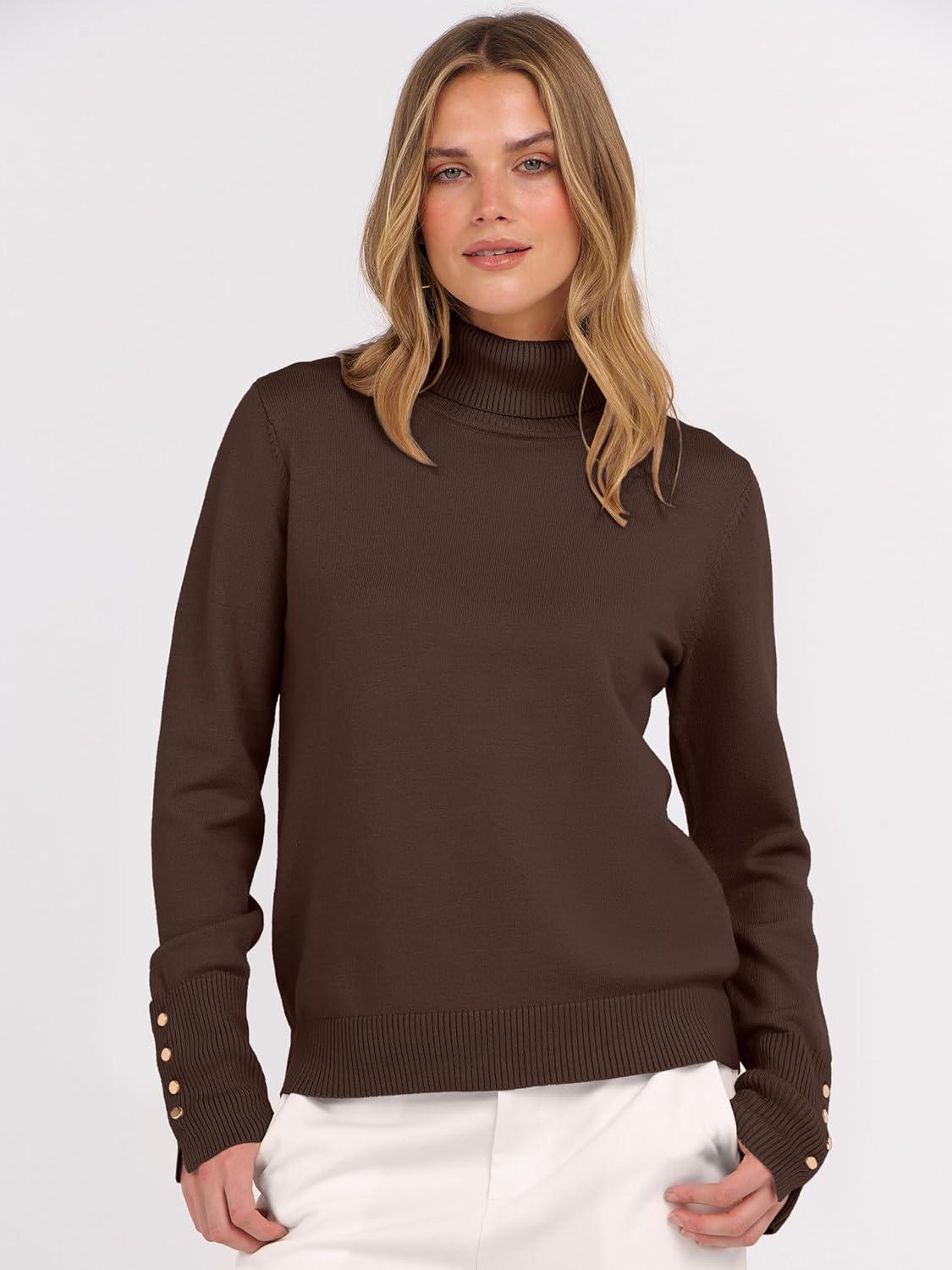 ANRABESS Turtleneck Sweaters for Women 2025 Fall Long Sleeve Dressy Casual Soft Knitted Button Basic Pullover Tops Outfits(Chocola)