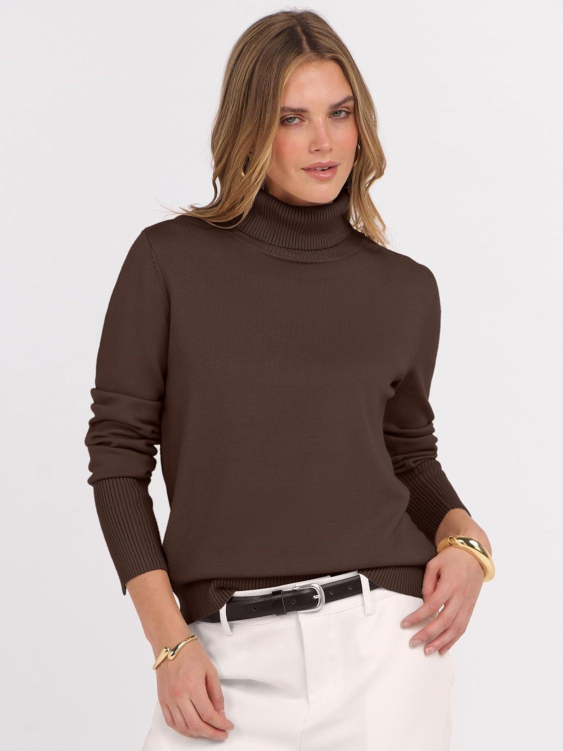 imageANRABESS Turtleneck Sweaters for Women 2025 Fall Long Sleeve Dressy Casual Soft Knitted Button Basic Pullover Tops OutfitsChocola
