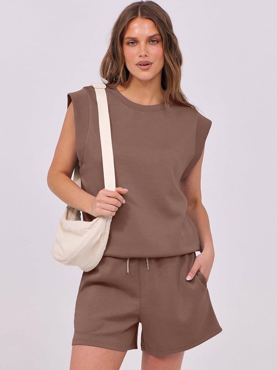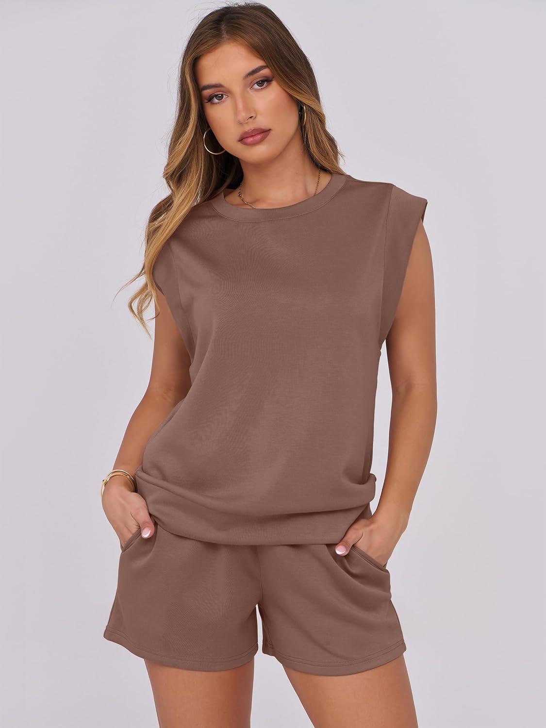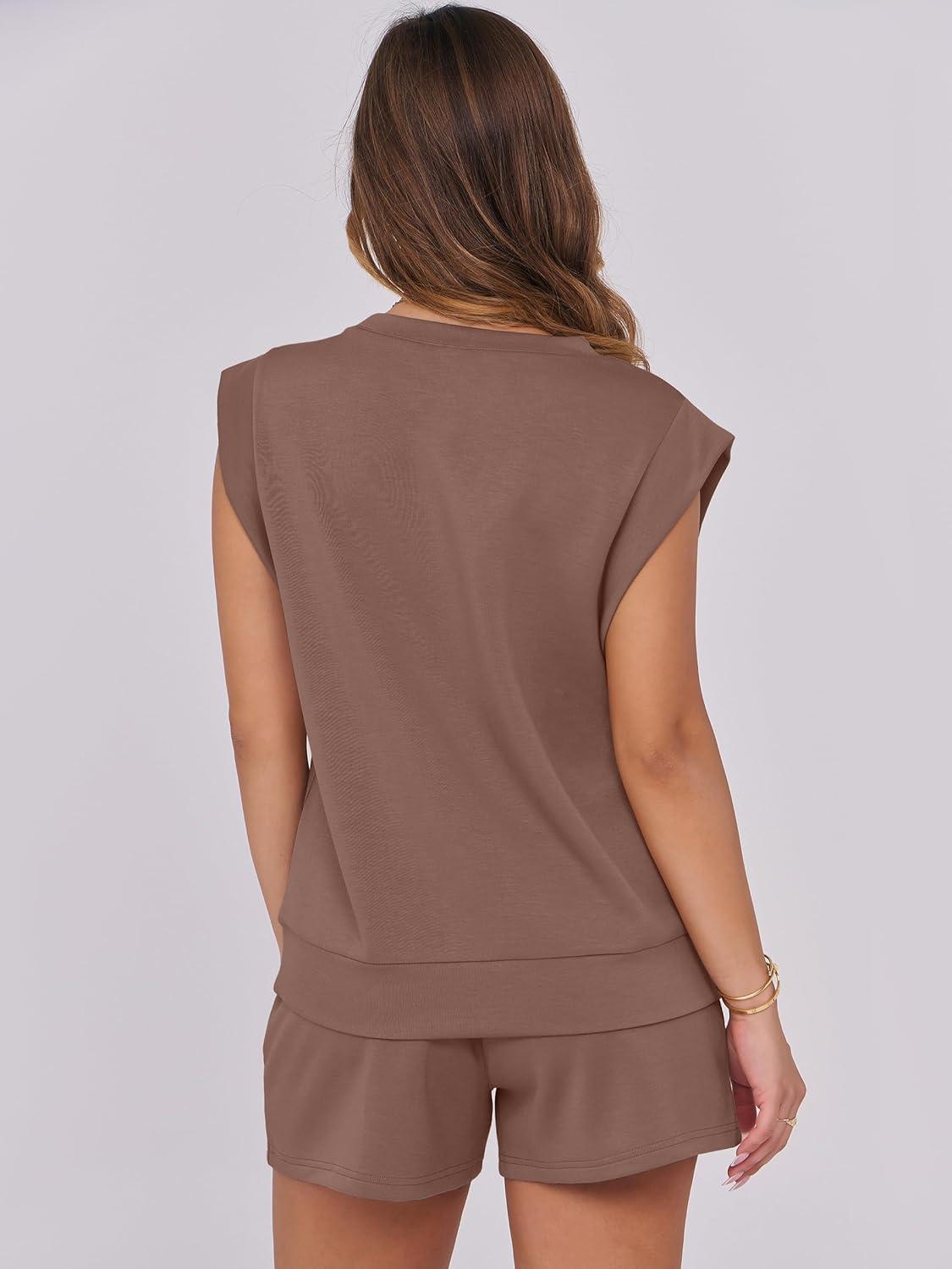 ANRABESS Two Piece Sets for Women 2025 Summer Short Lounge Set Casual Beach Vacation Outfits Spring Sweatsuits Tracksuit(Brown)