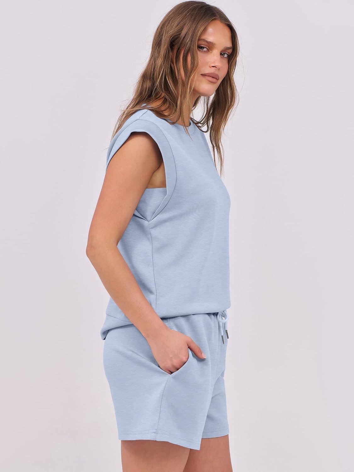 imageANRABESS Two Piece Sets for Women 2025 Summer Short Lounge Set Casual Beach Vacation Outfits Spring Sweatsuits TracksuitLight Blue