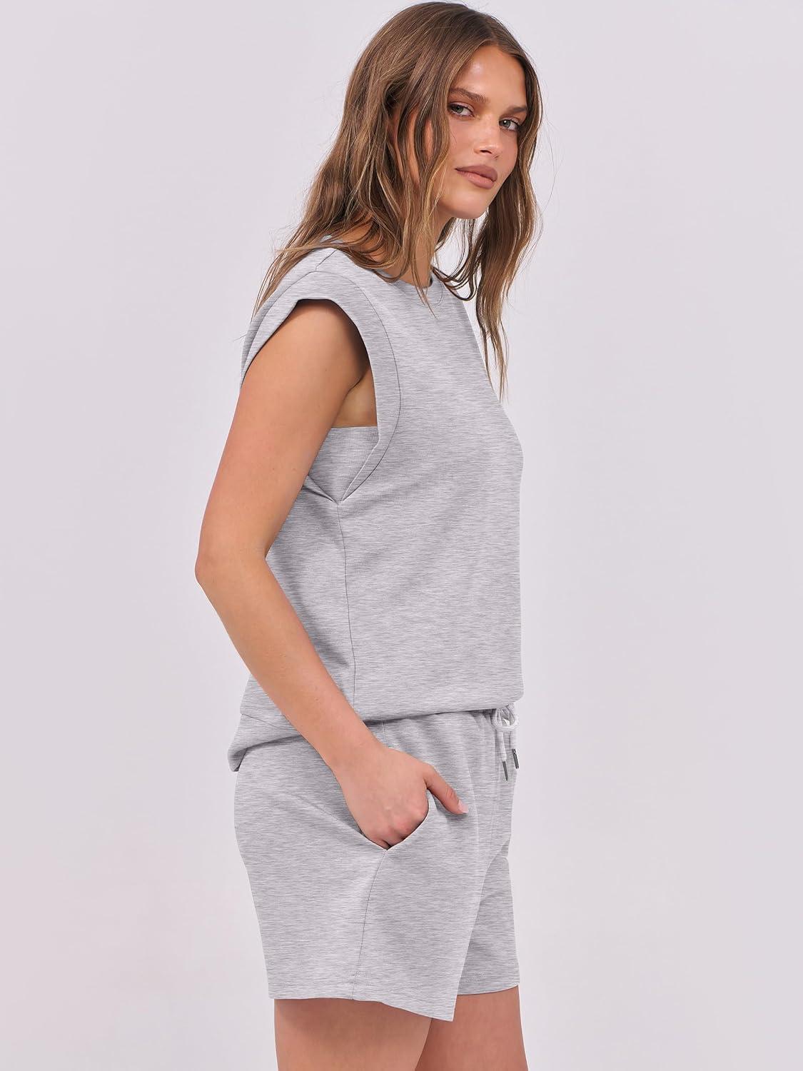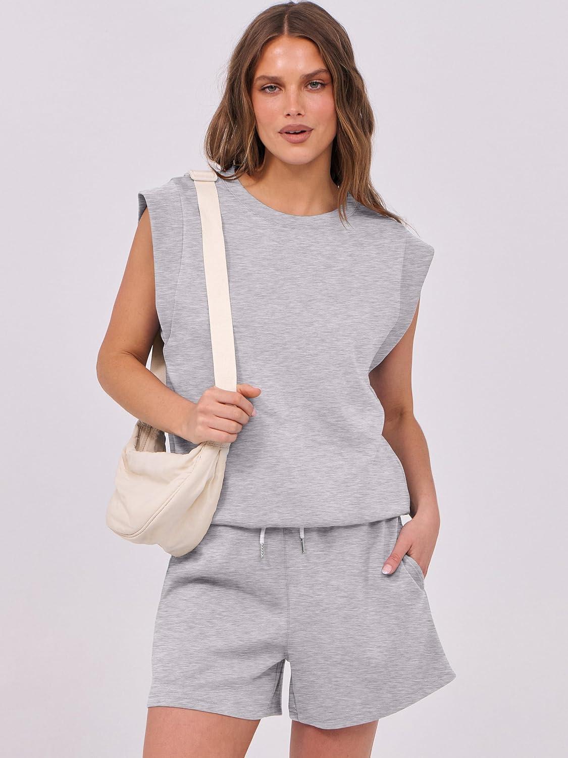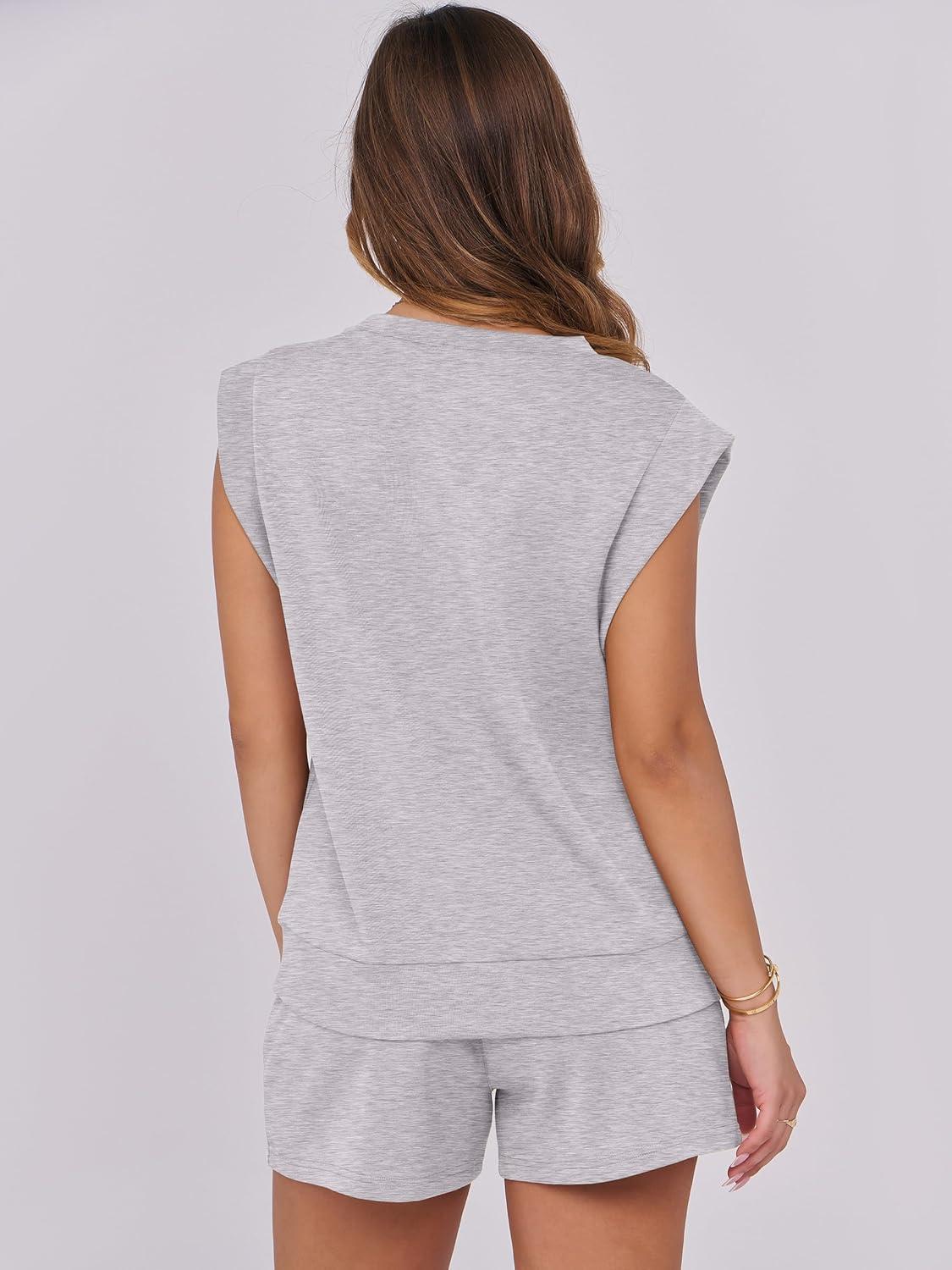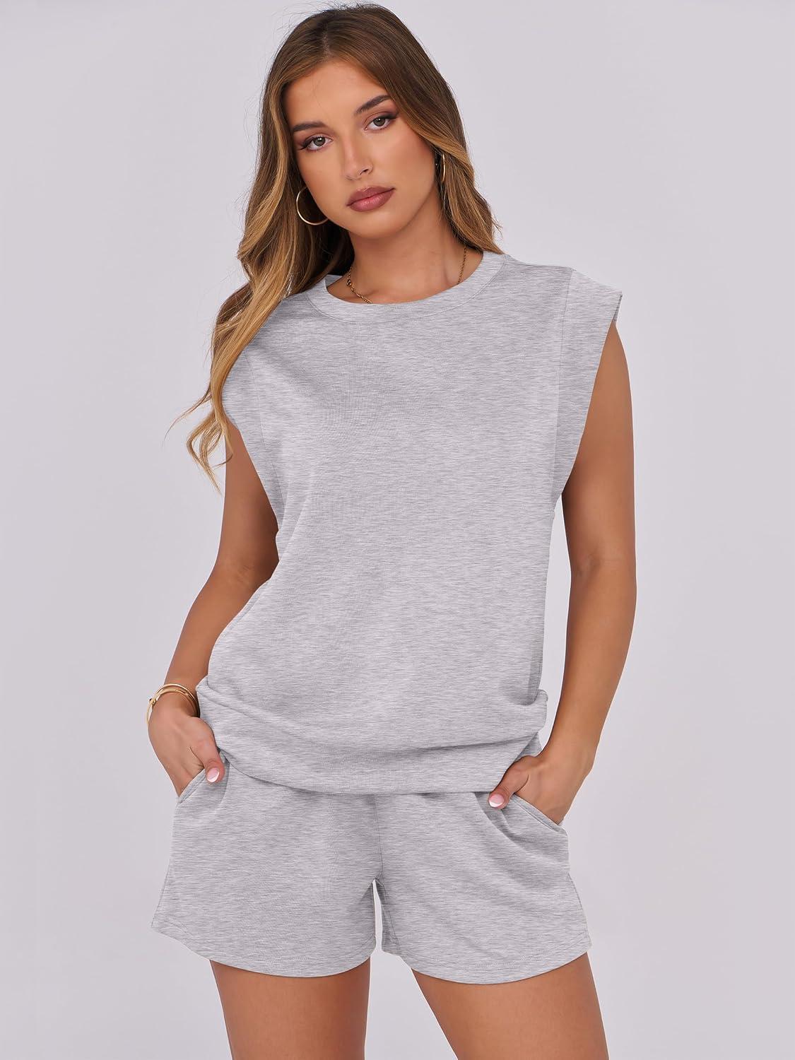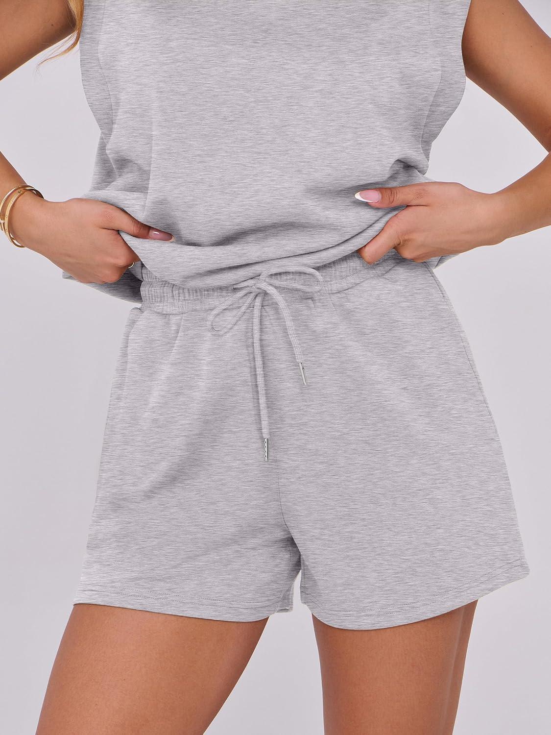 ANRABESS Two Piece Sets for Women 2025 Summer Short Lounge Set Casual Beach Vacation Outfits Spring Sweatsuits Tracksuit(Light Grey)