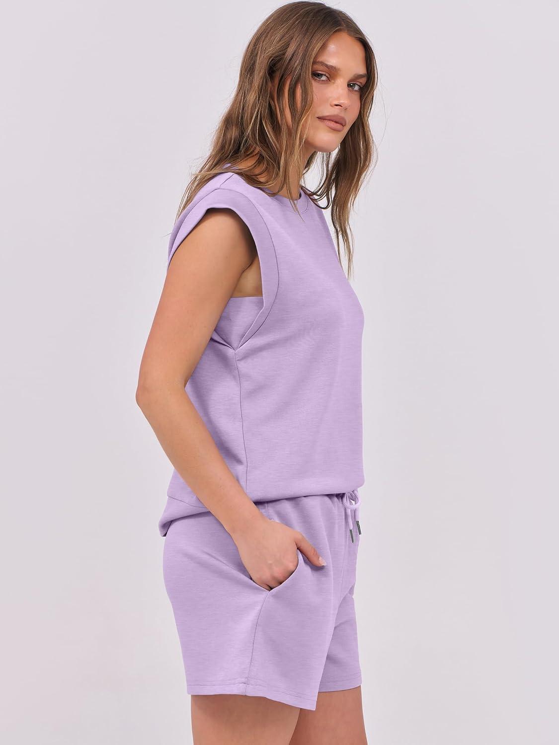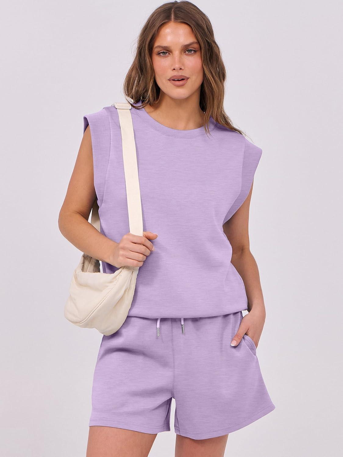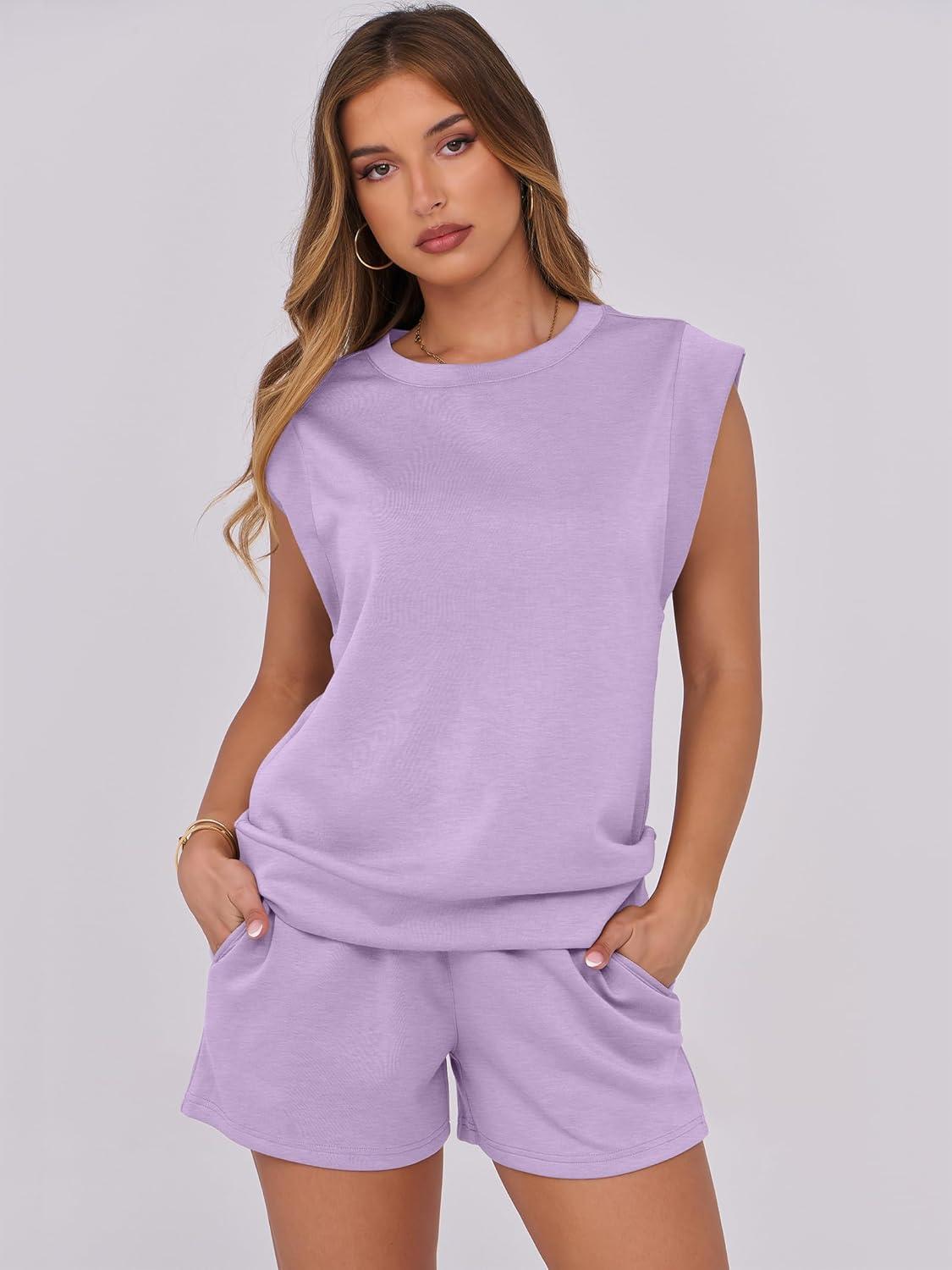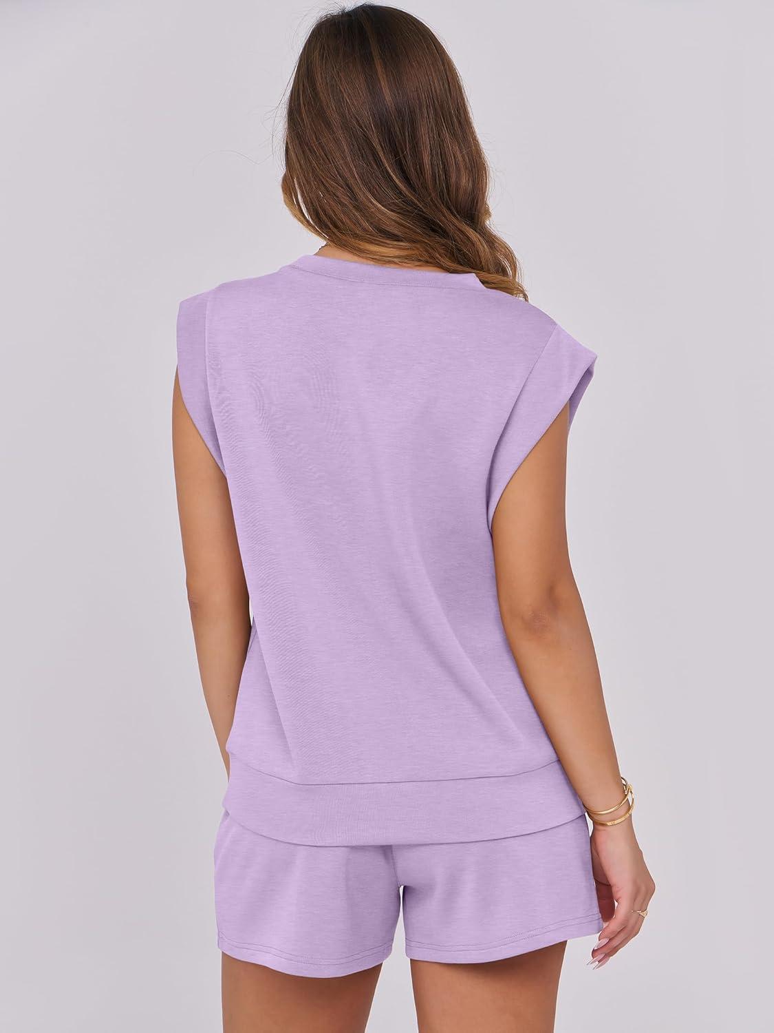 imageANRABESS Two Piece Sets for Women 2025 Summer Short Lounge Set Casual Beach Vacation Outfits Spring Sweatsuits TracksuitLight Purple