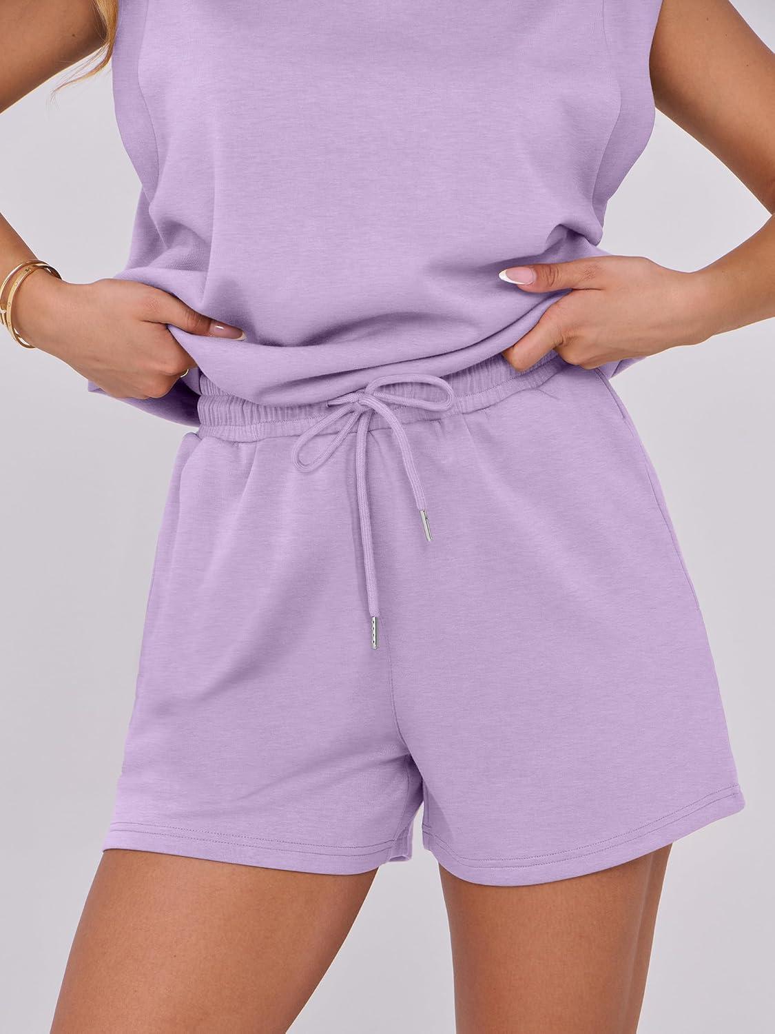 ANRABESS Two Piece Sets for Women 2025 Summer Short Lounge Set Casual Beach Vacation Outfits Spring Sweatsuits Tracksuit(Light Purple)
