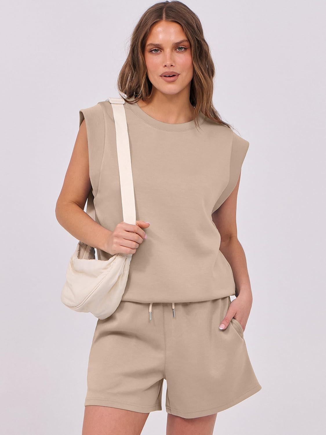 imageANRABESS Two Piece Sets for Women 2025 Summer Short Lounge Set Casual Beach Vacation Outfits Spring Sweatsuits TracksuitLighter Khaki