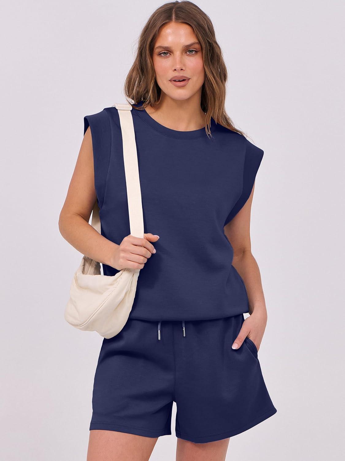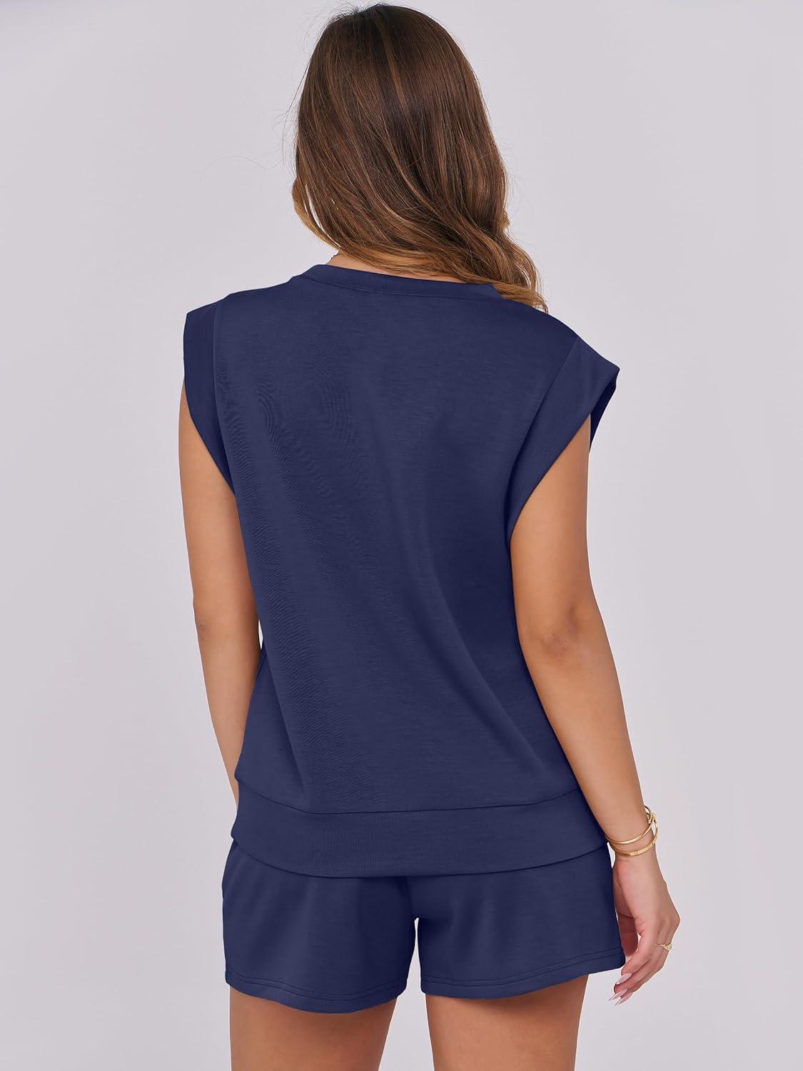 ANRABESS Two Piece Sets for Women 2025 Summer Short Lounge Set Casual Beach Vacation Outfits Spring Sweatsuits Tracksuit(Navy Blue)