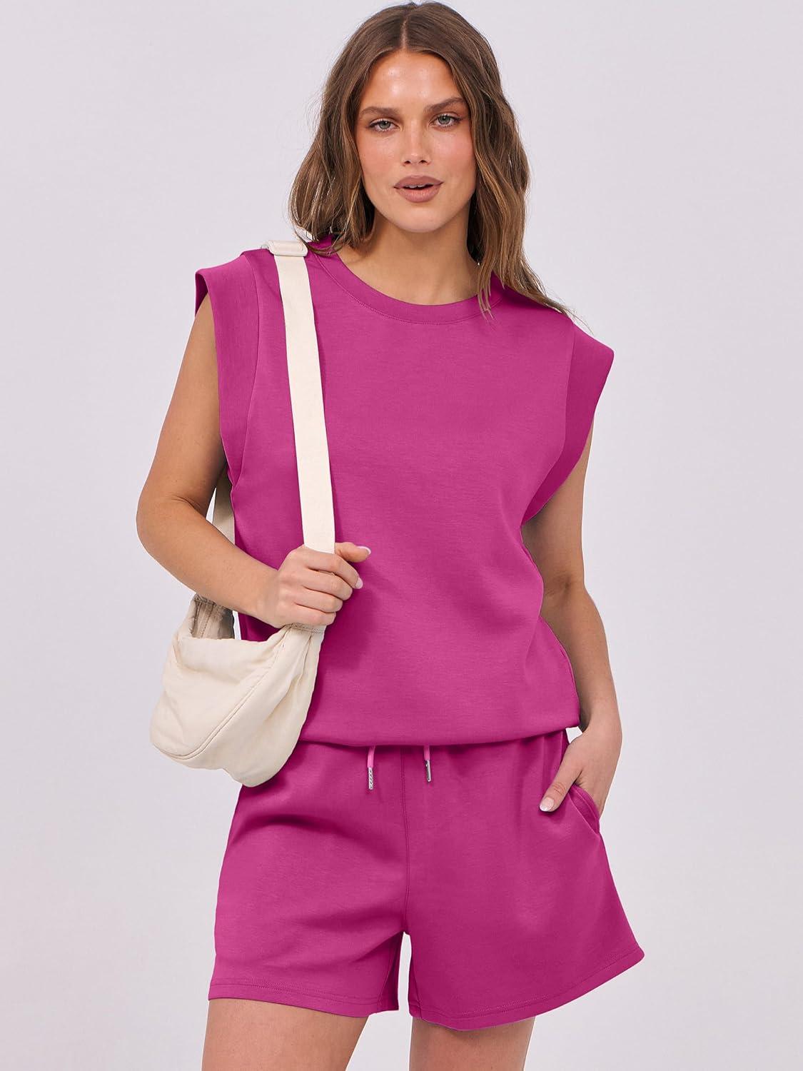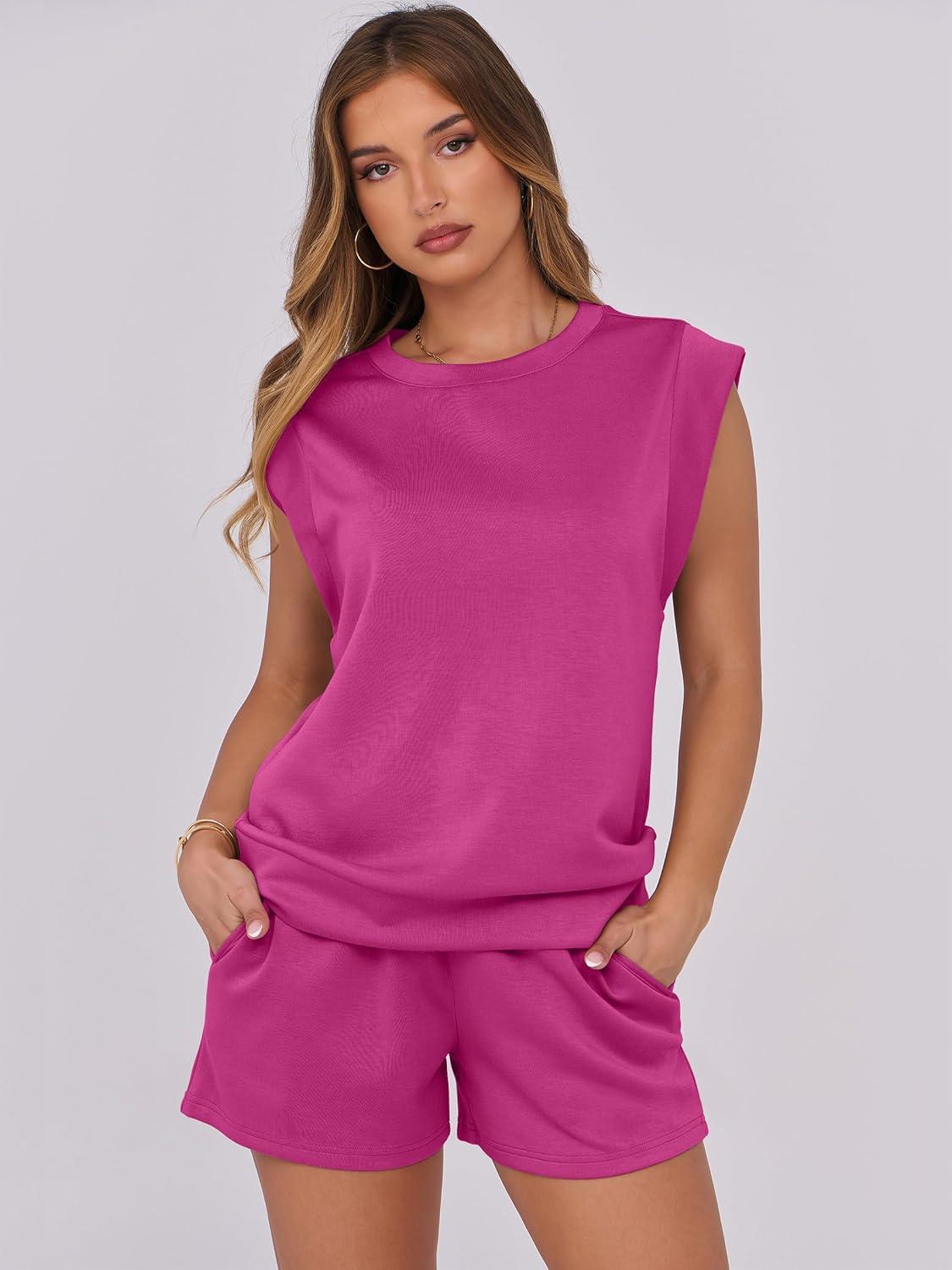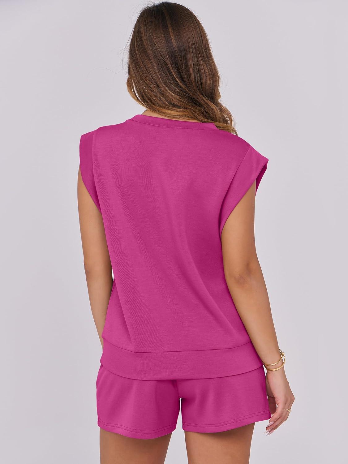 ANRABESS Two Piece Sets for Women 2025 Summer Short Lounge Set Casual Beach Vacation Outfits Spring Sweatsuits Tracksuit(Rose Red)