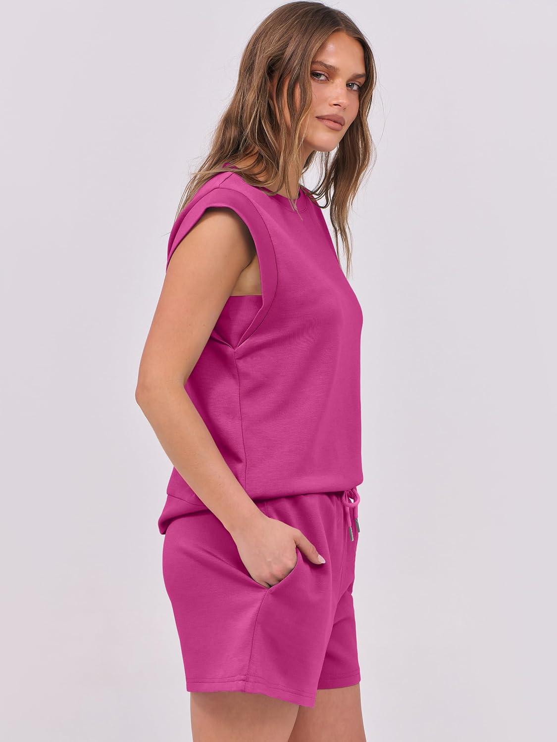 imageANRABESS Two Piece Sets for Women 2025 Summer Short Lounge Set Casual Beach Vacation Outfits Spring Sweatsuits TracksuitRose Red