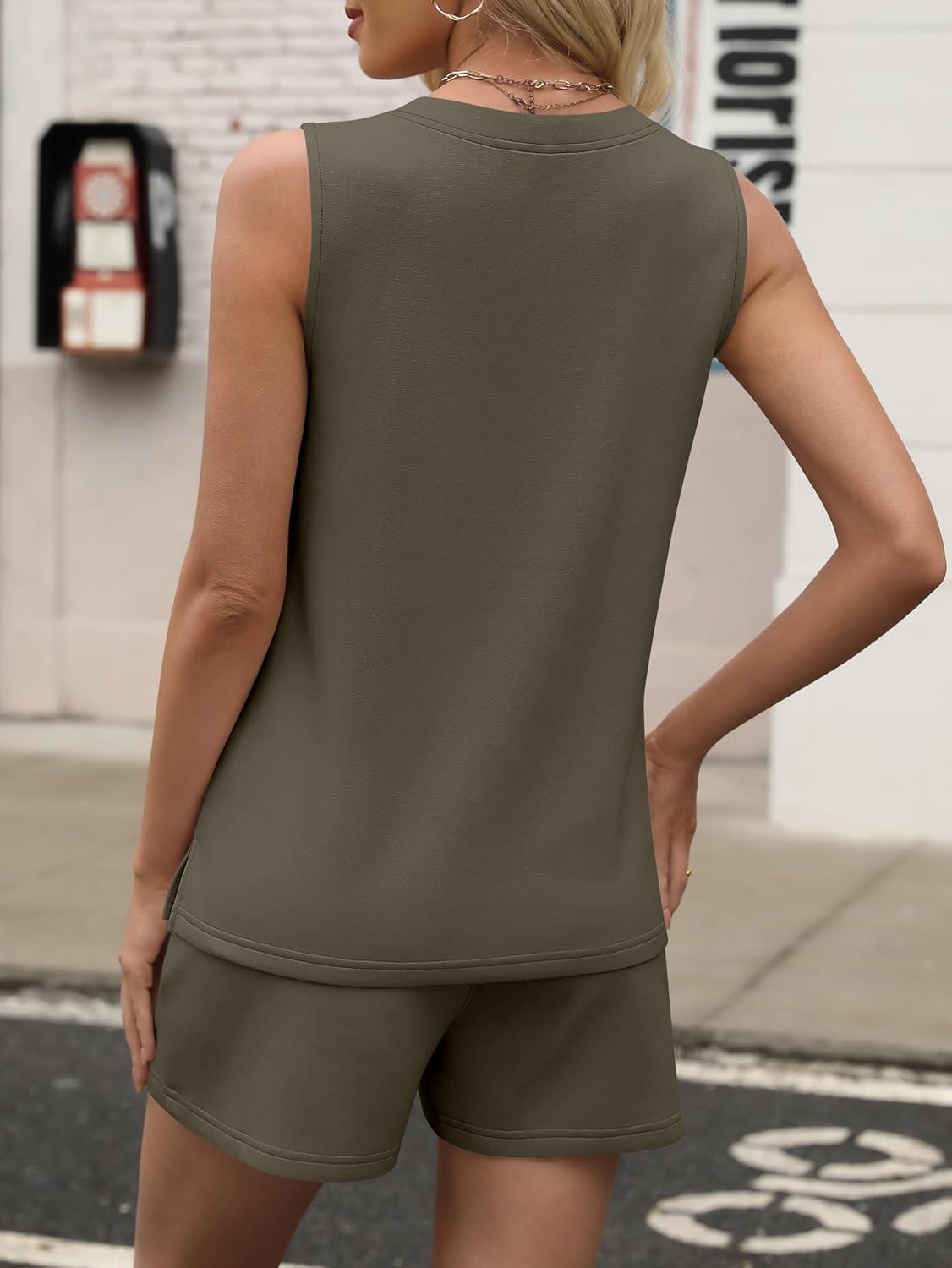 ANRABESS Two Piece Sets for Women 2026 Summer Outfits Short Matching Lounge Set Casual V Neck Beach Vacation Travel Clothes(Army Green)
