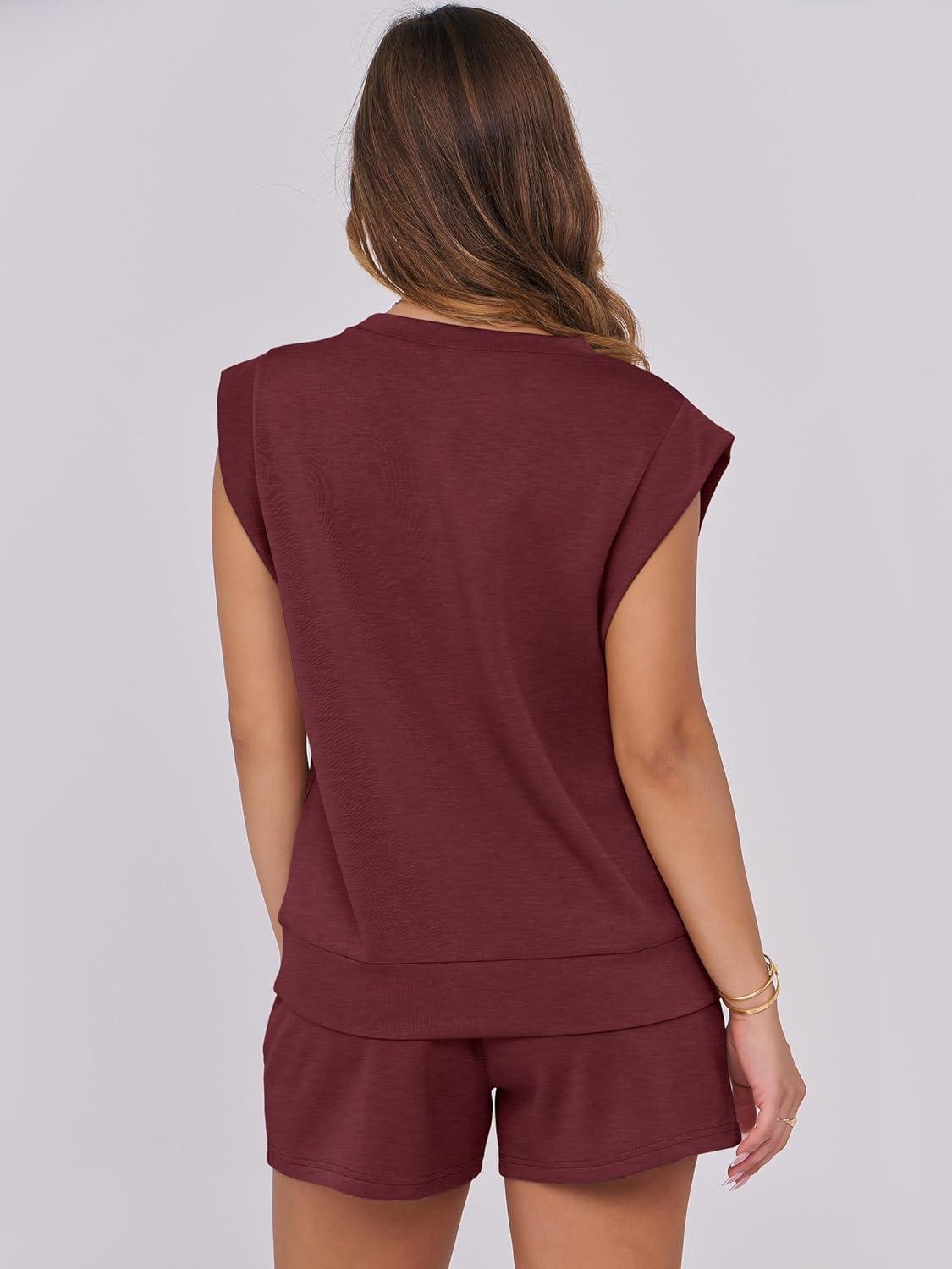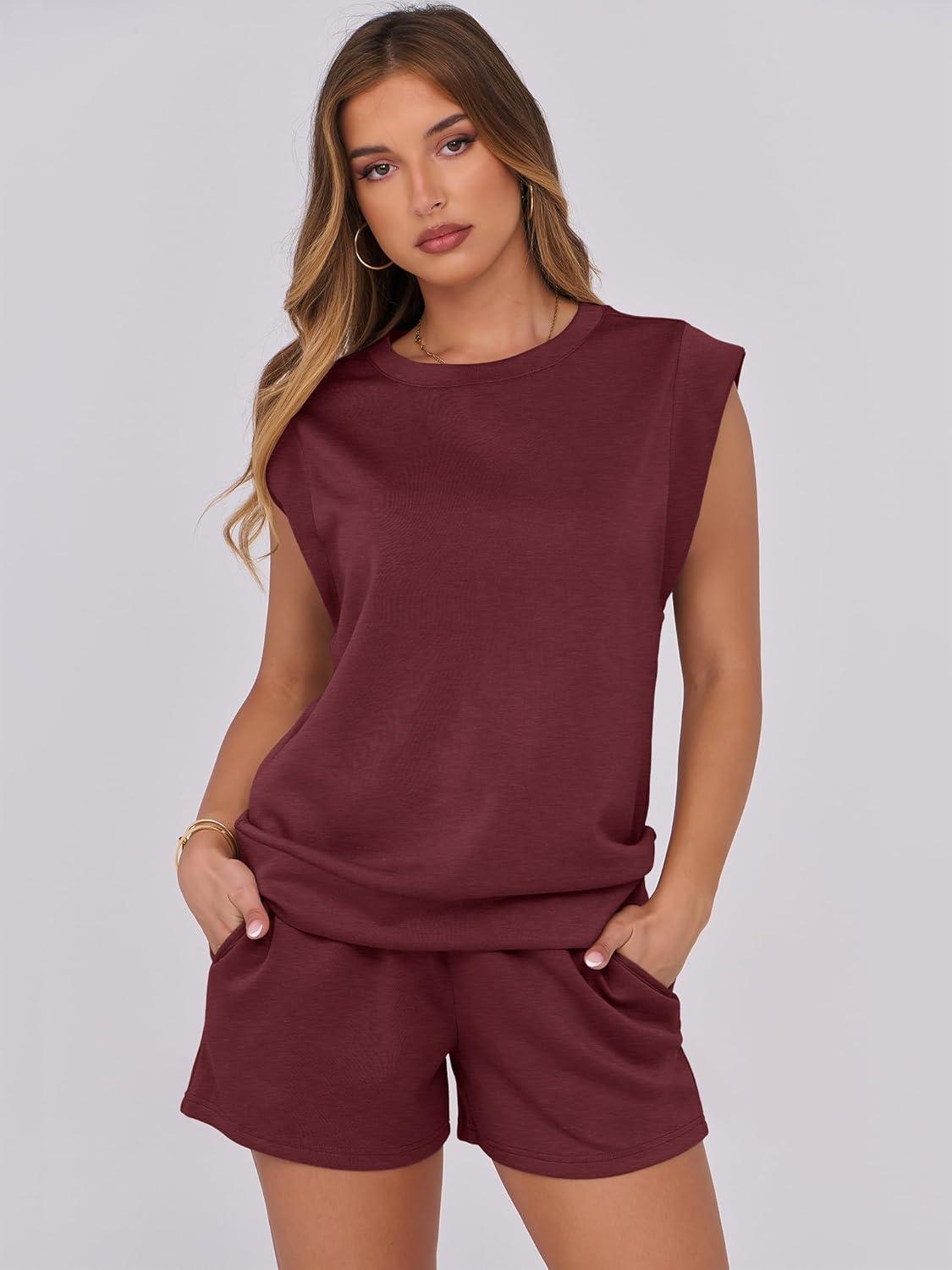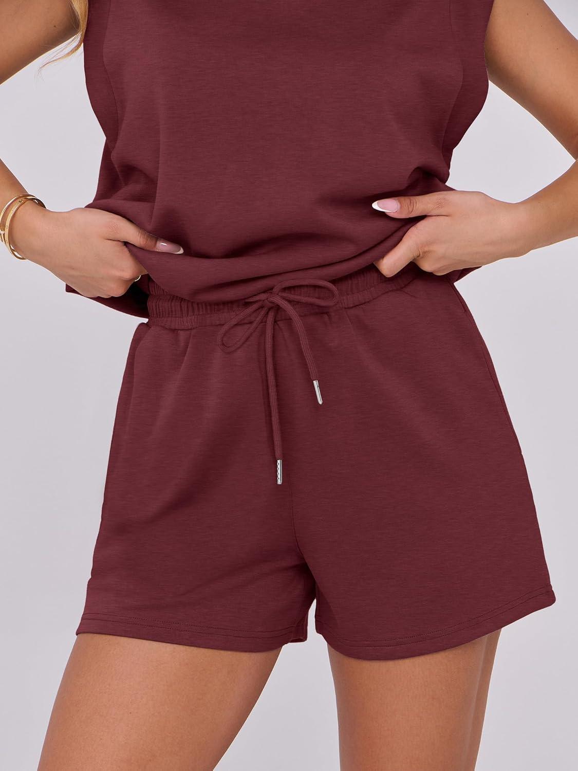ANRABESS Two Piece Sets for Women 2026 Summer Short Lounge Set Casual Beach Vacation Outfits Spring Sweatsuits Tracksuit(Burgundy)