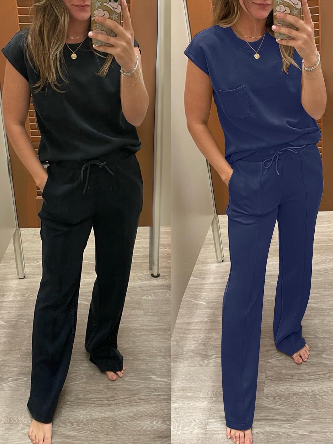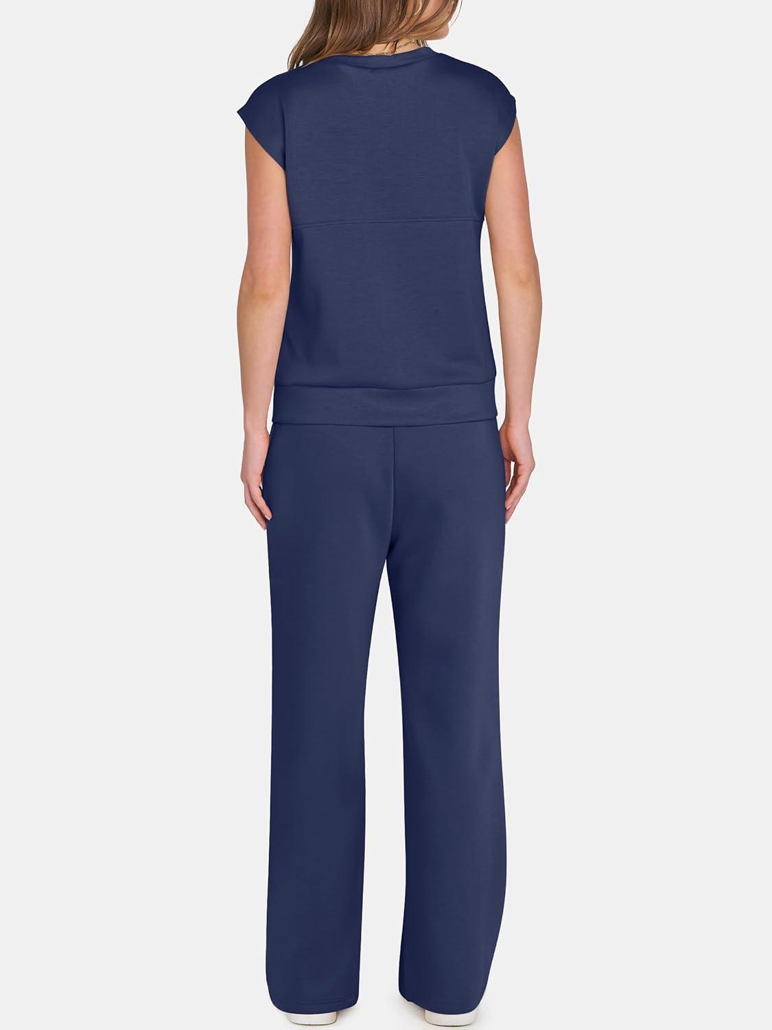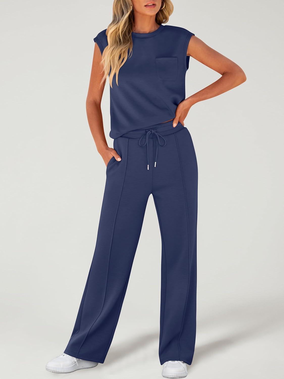 ANRABESS Two Piece Sets for Women 2026 Summer Travel Vacation Outfits Sleeveless Lounge Set Matching Wide Leg Pants Sweatsuit(Navy Blue)