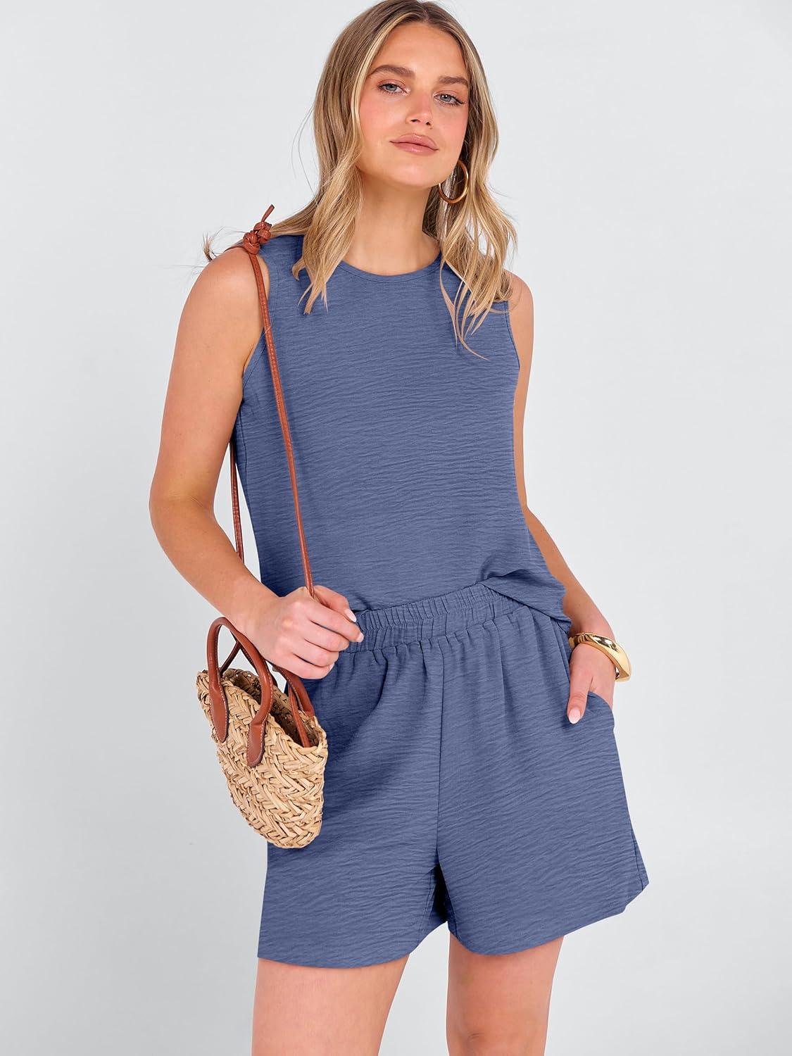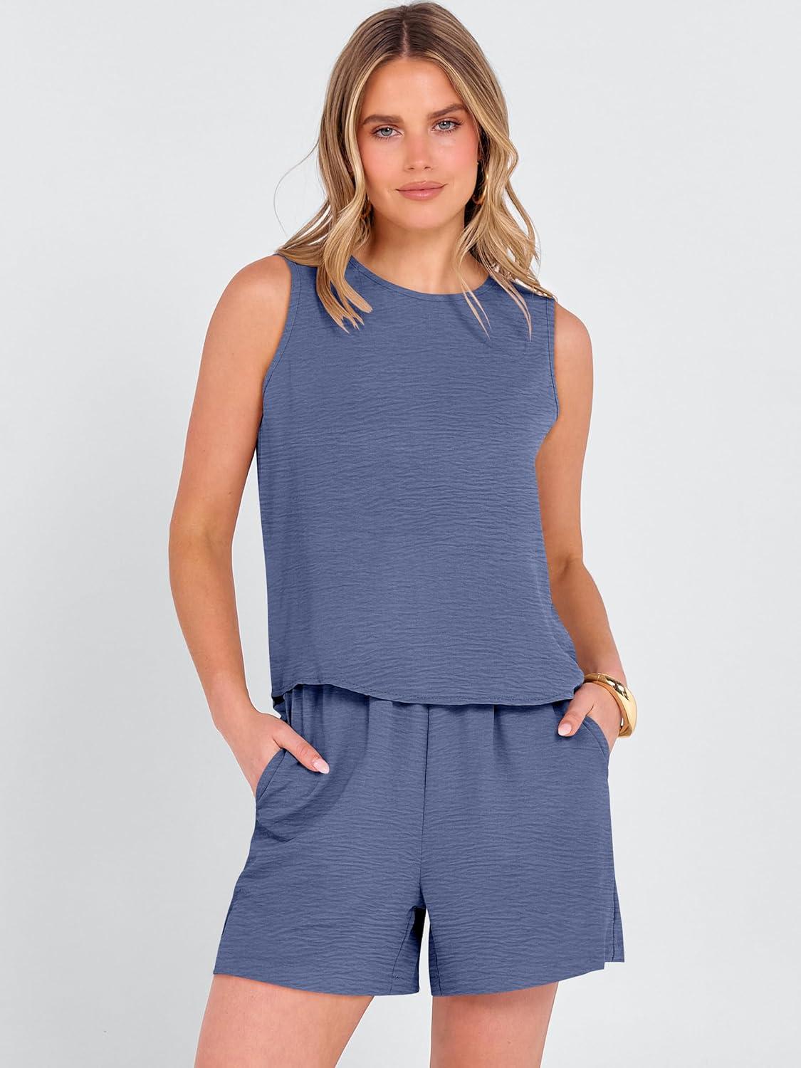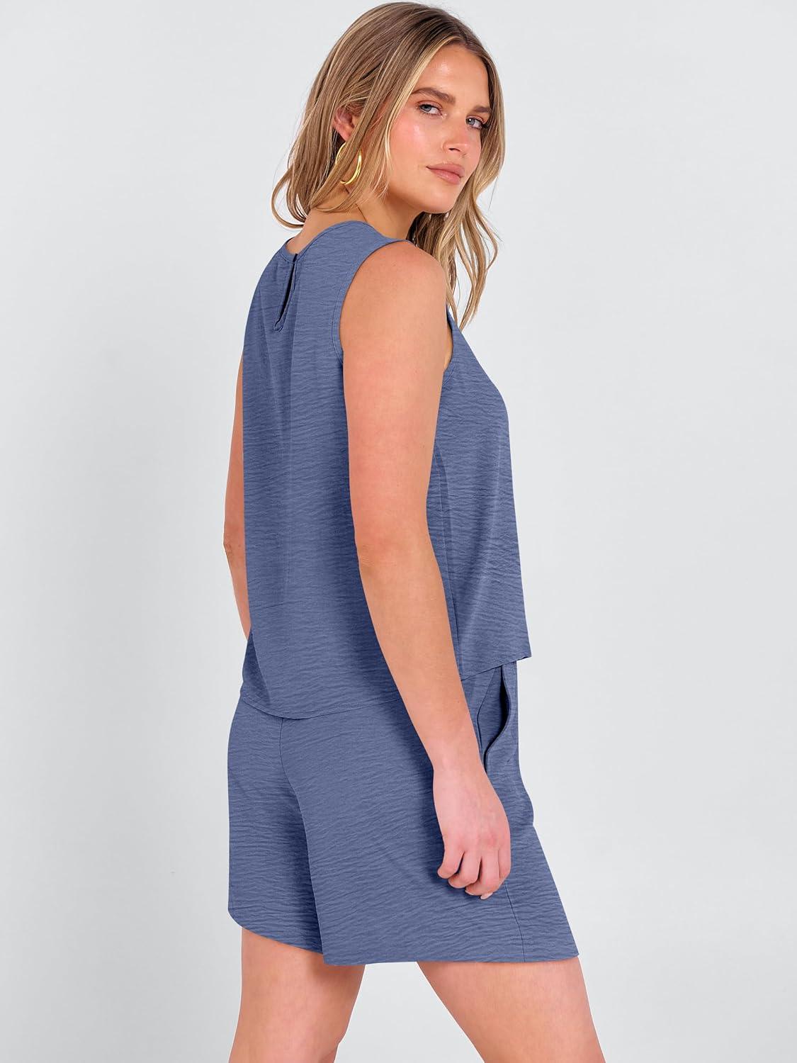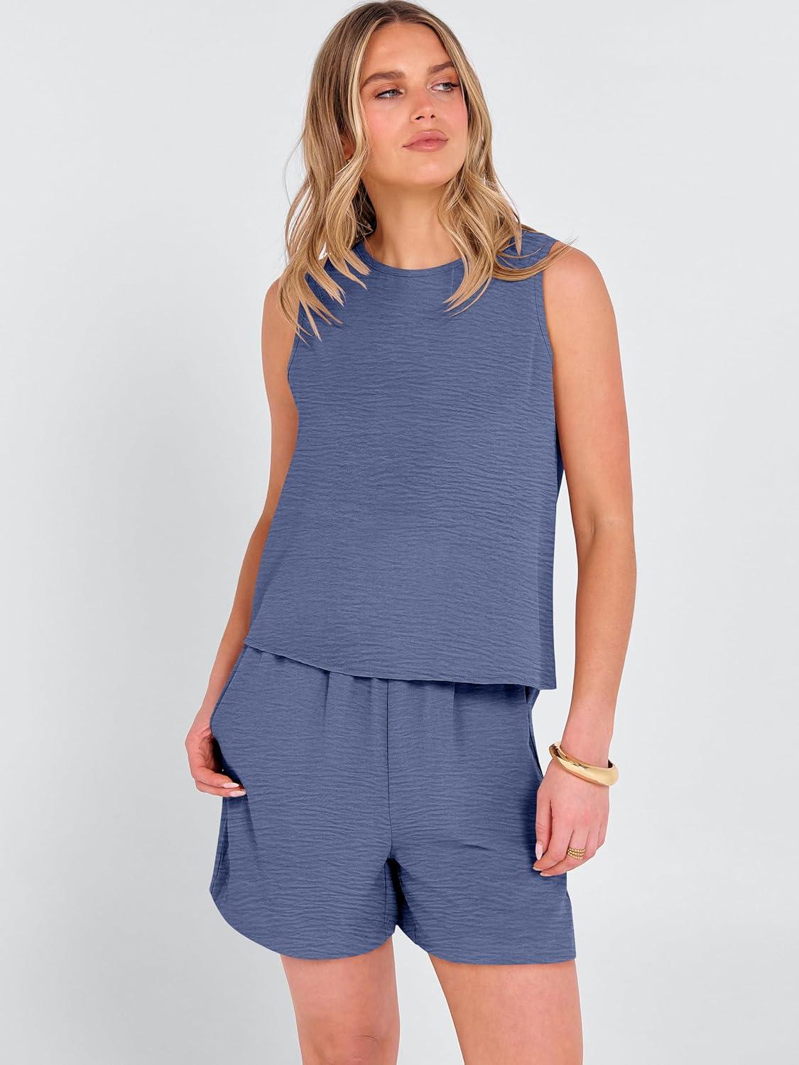 ANRABESS Two Piece Sets for Women Summer Casual Sleeveless Tank Top Matching Shorts Lounge Sets Pajamas 2026 Trendy Clothes(Deep Blue)