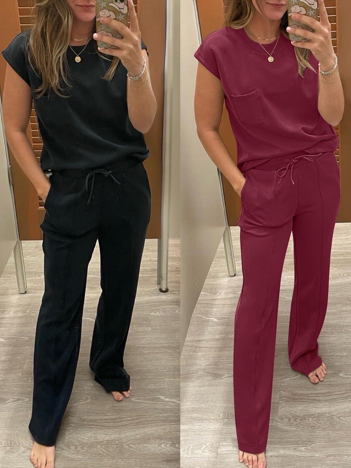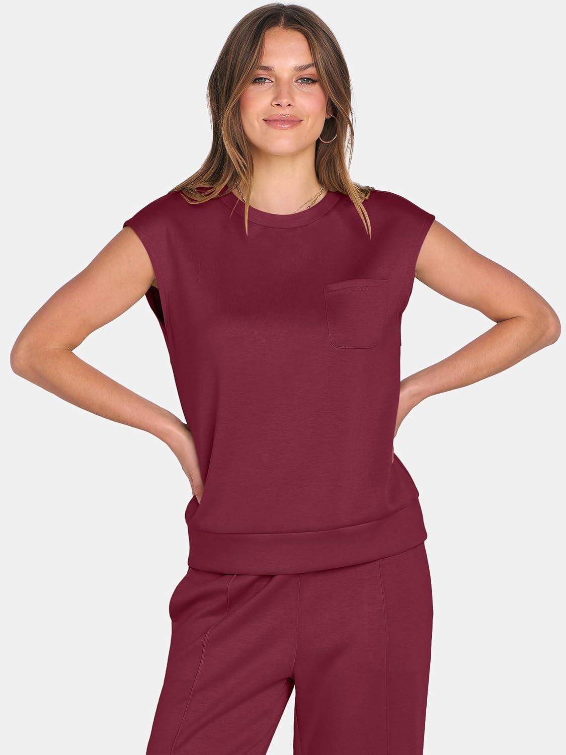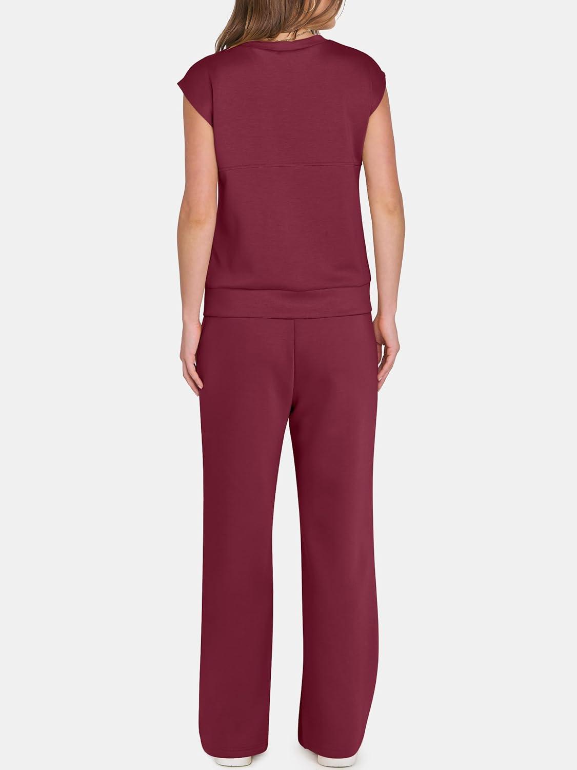 ANRABESS Two Piece Sets for Women Summer Sleeveless Sweatsuits Wide Leg Casual Lounge Set Matching Vacation Travel Outfits(Burgundy)