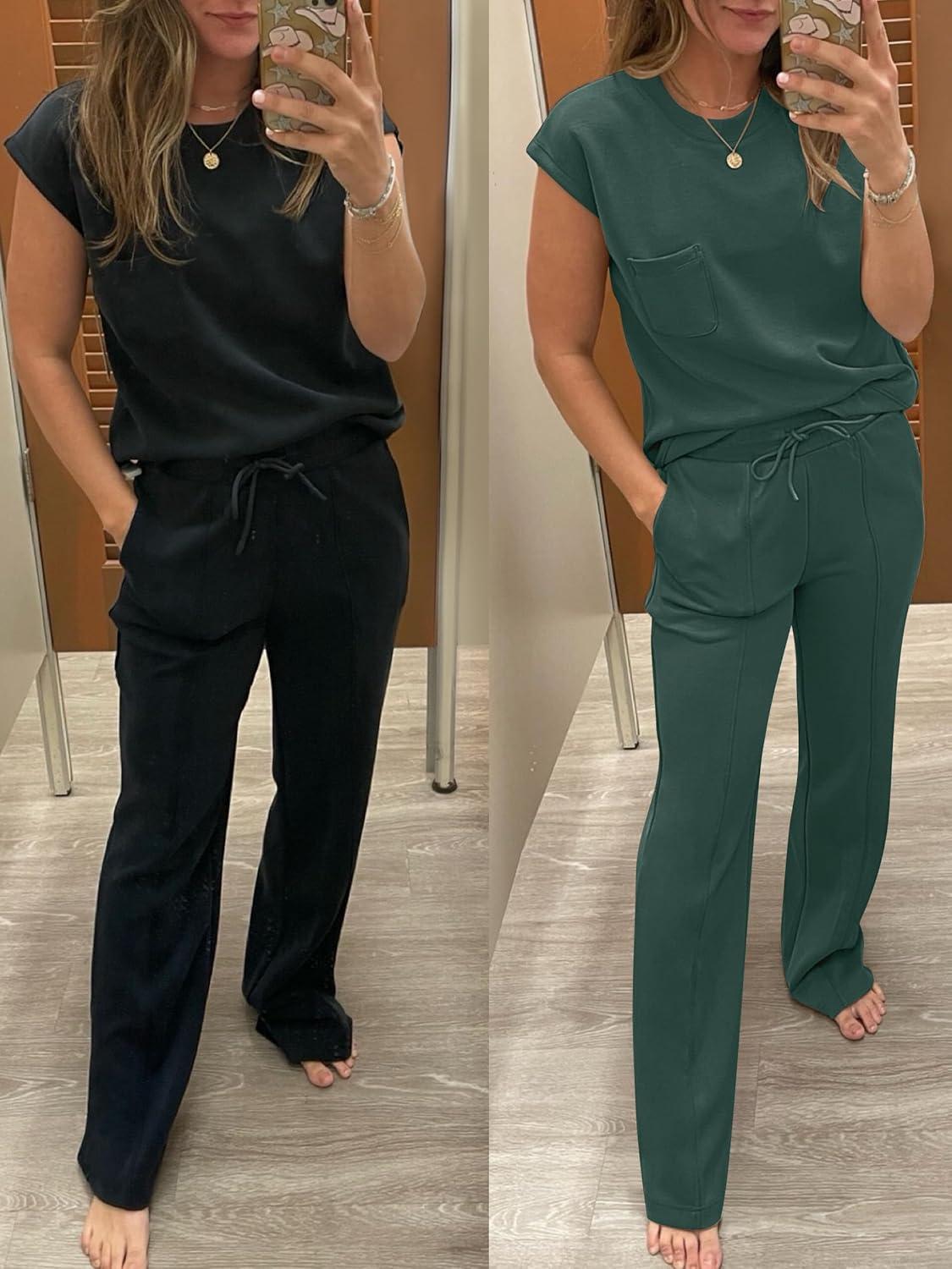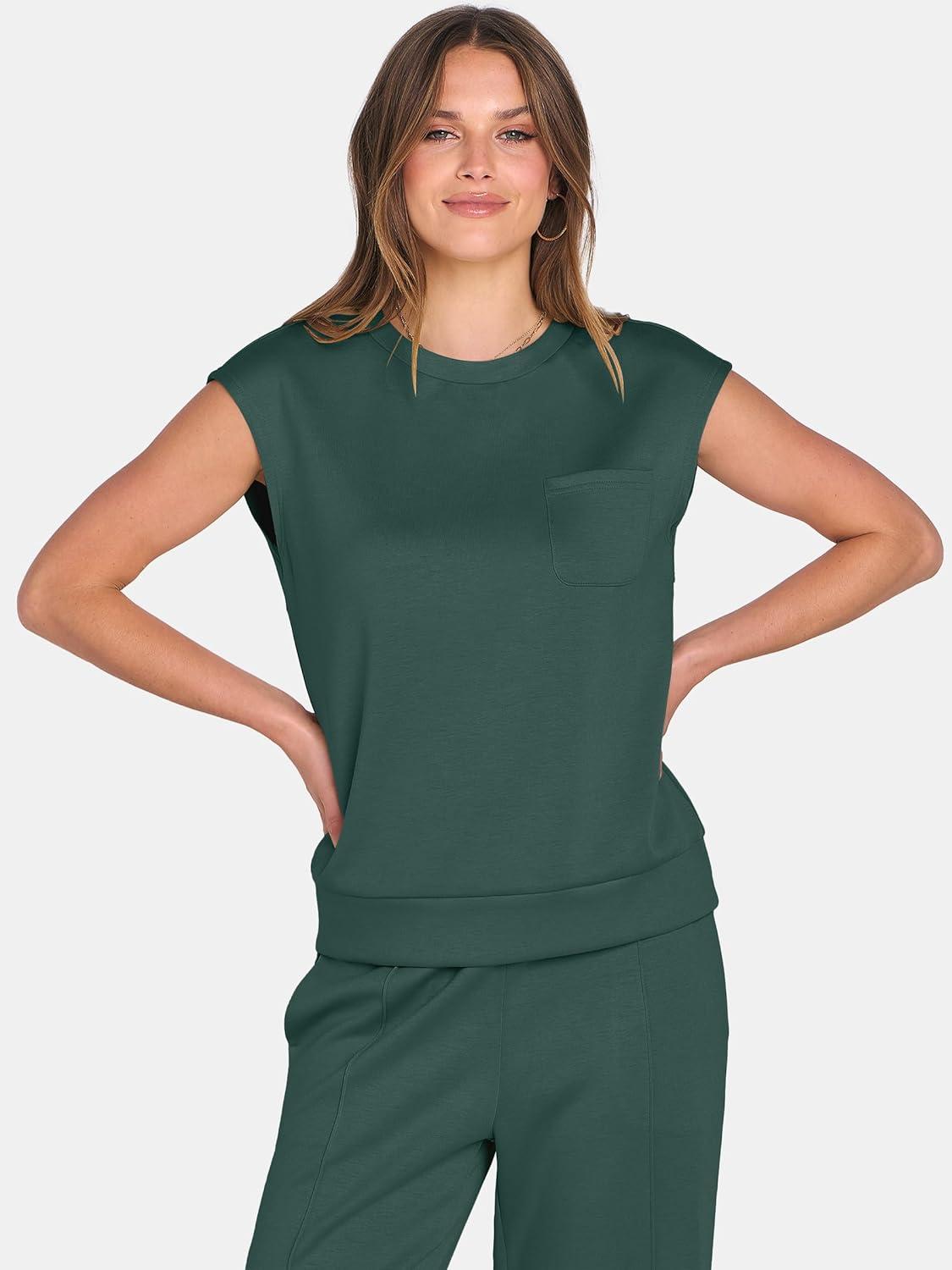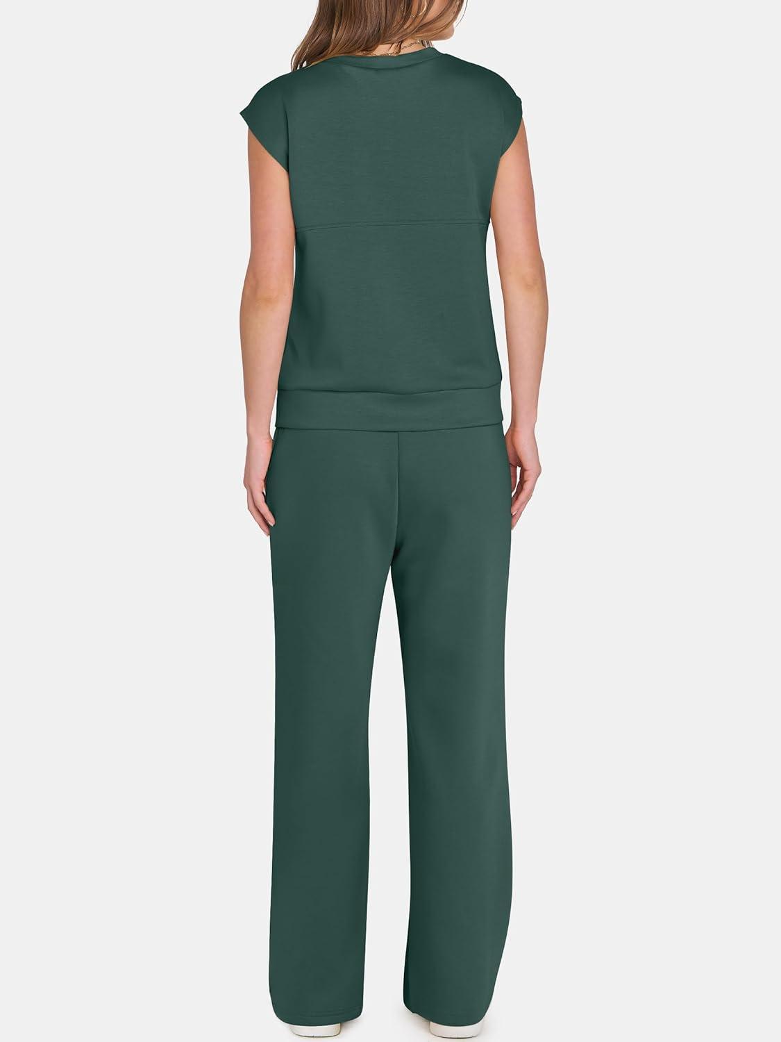 ANRABESS Two Piece Sets for Women Summer Sleeveless Sweatsuits Wide Leg Casual Lounge Set Matching Vacation Travel Outfits(Deep Green)