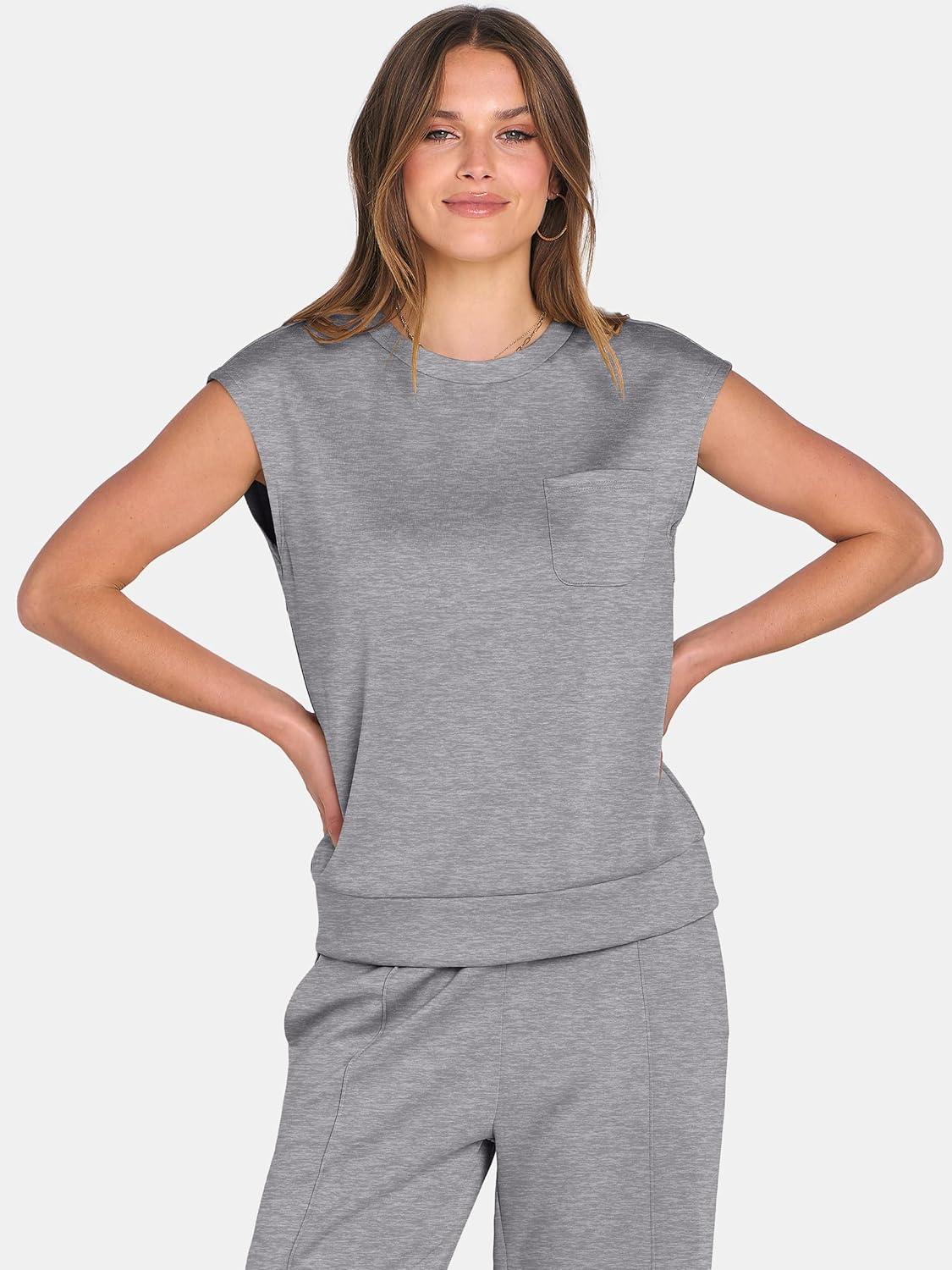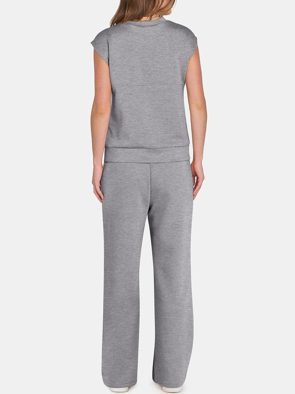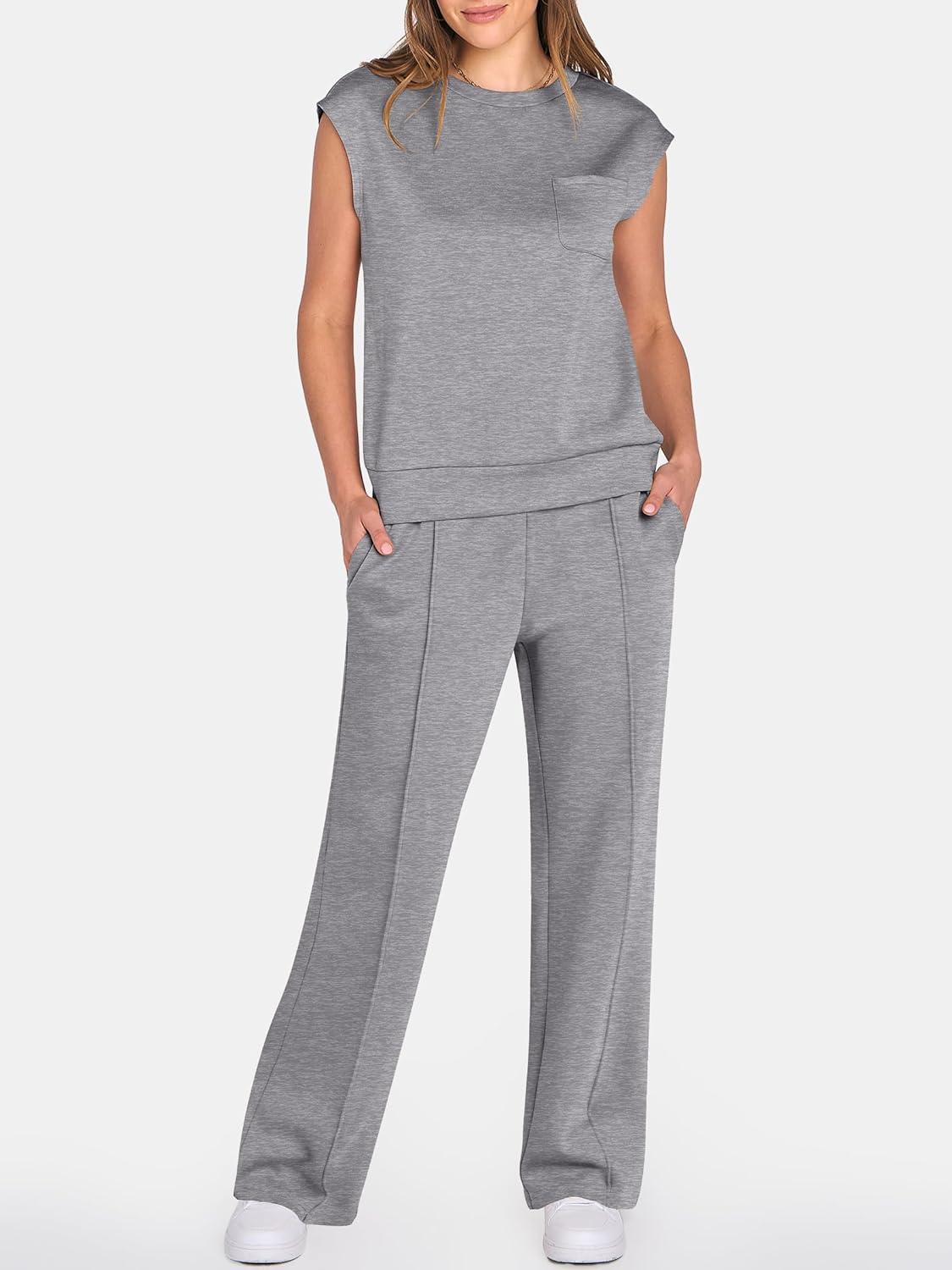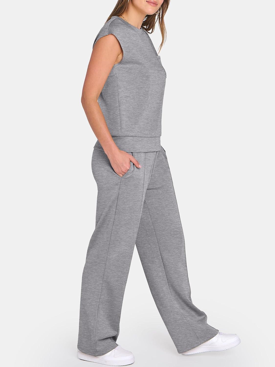 ANRABESS Two Piece Sets for Women Summer Sleeveless Sweatsuits Wide Leg Casual Lounge Set Matching Vacation Travel Outfits(Grey)