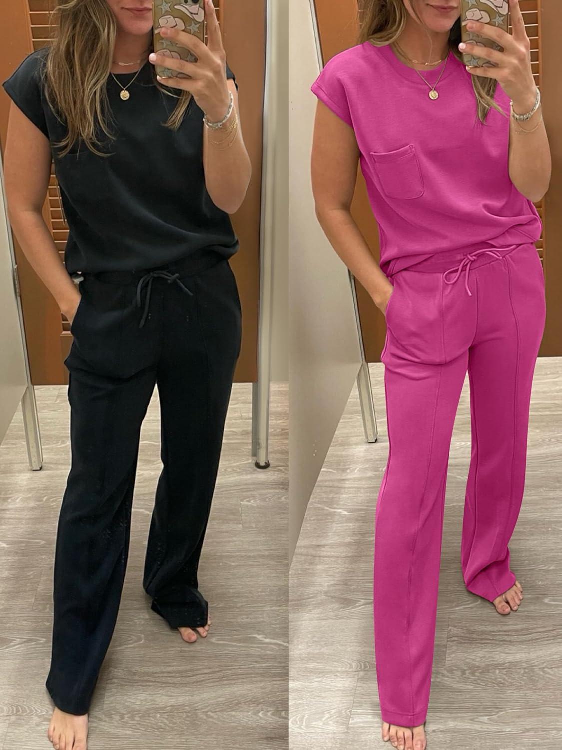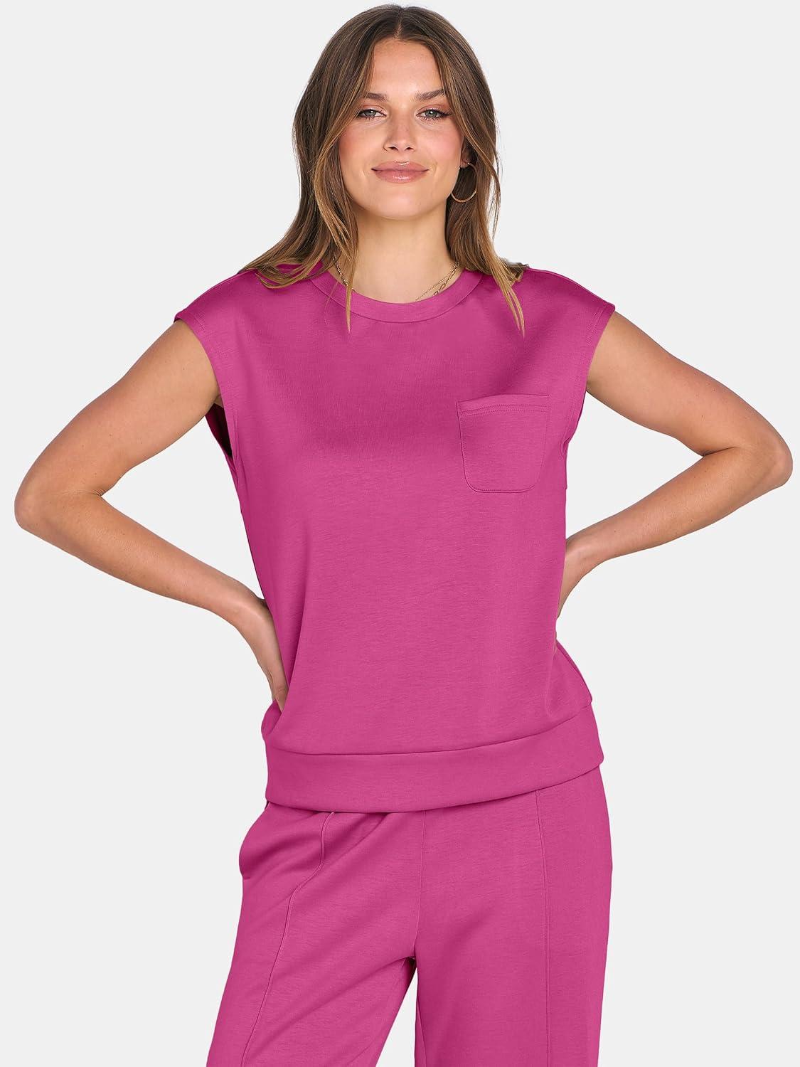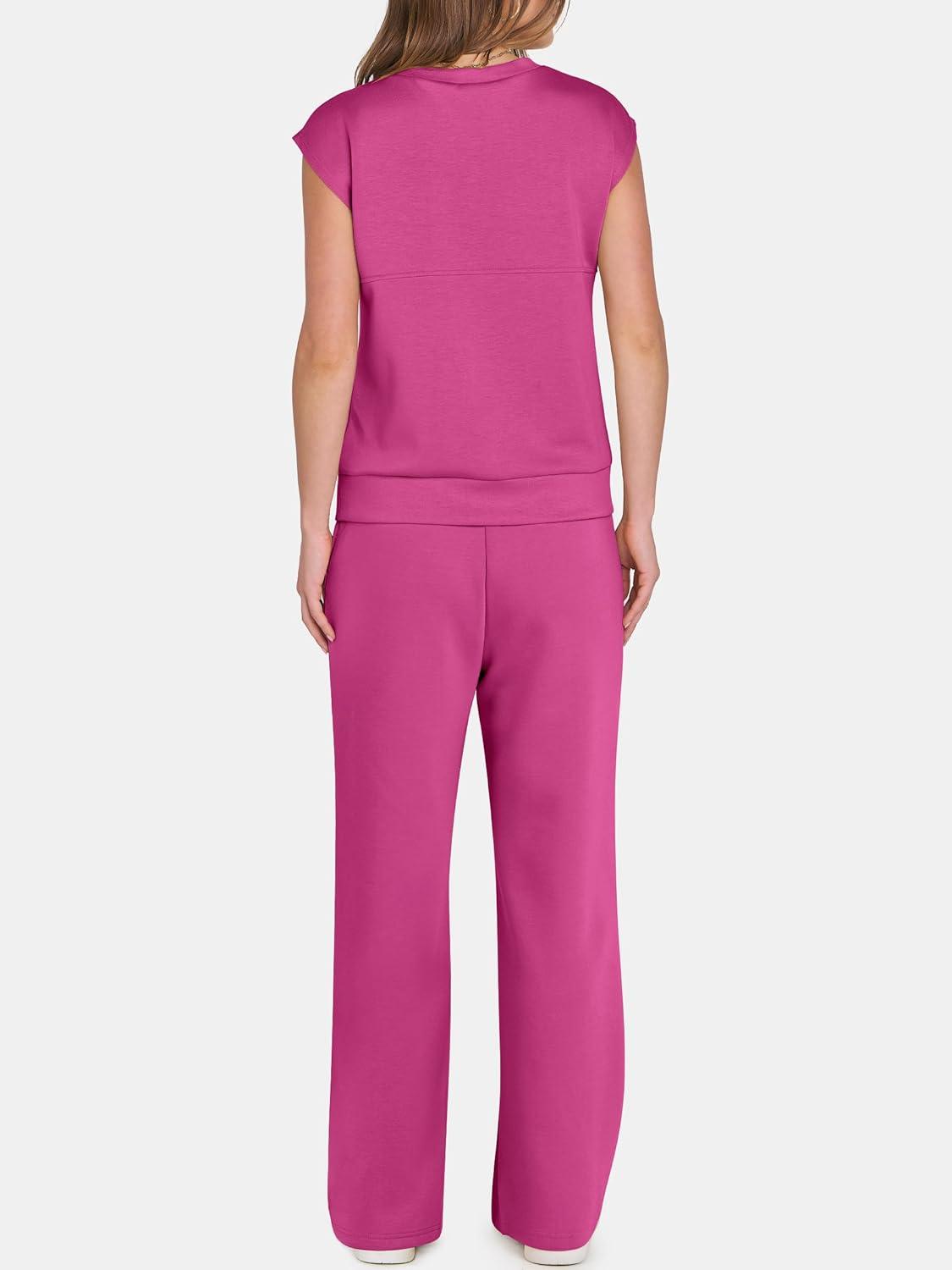 ANRABESS Two Piece Sets for Women Summer Sleeveless Sweatsuits Wide Leg Casual Lounge Set Matching Vacation Travel Outfits(Rose)