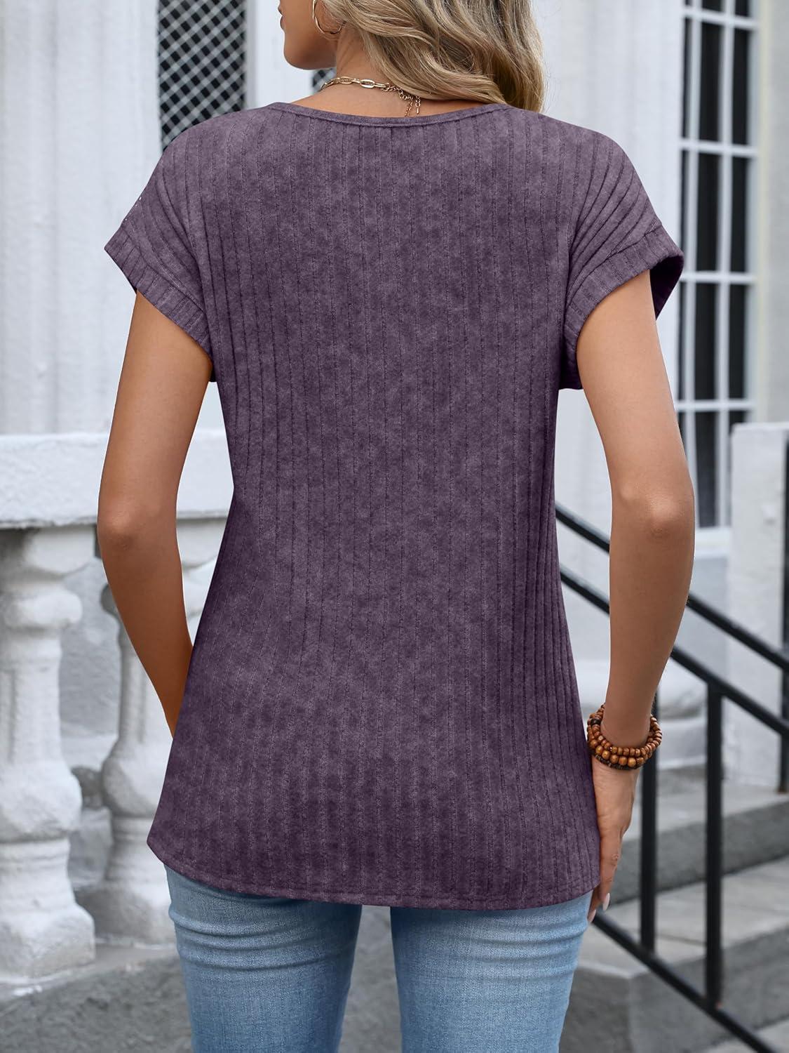 ANRABESS Wemens Tops Summer Sweaters Shirts Short Sleeve Lace T-Shirts Dressy Casual Business Tee Blouses 2026 Trendy Clothes(Purple)