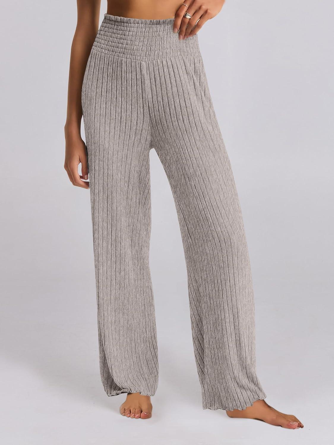 imageANRABESS Women 2 Piece Lounge Pajamas Sets Casual Ribbed Knit Long Sleeve Top Pants Matching Set 2025 Fall Outfits ClothesGrey Khaki