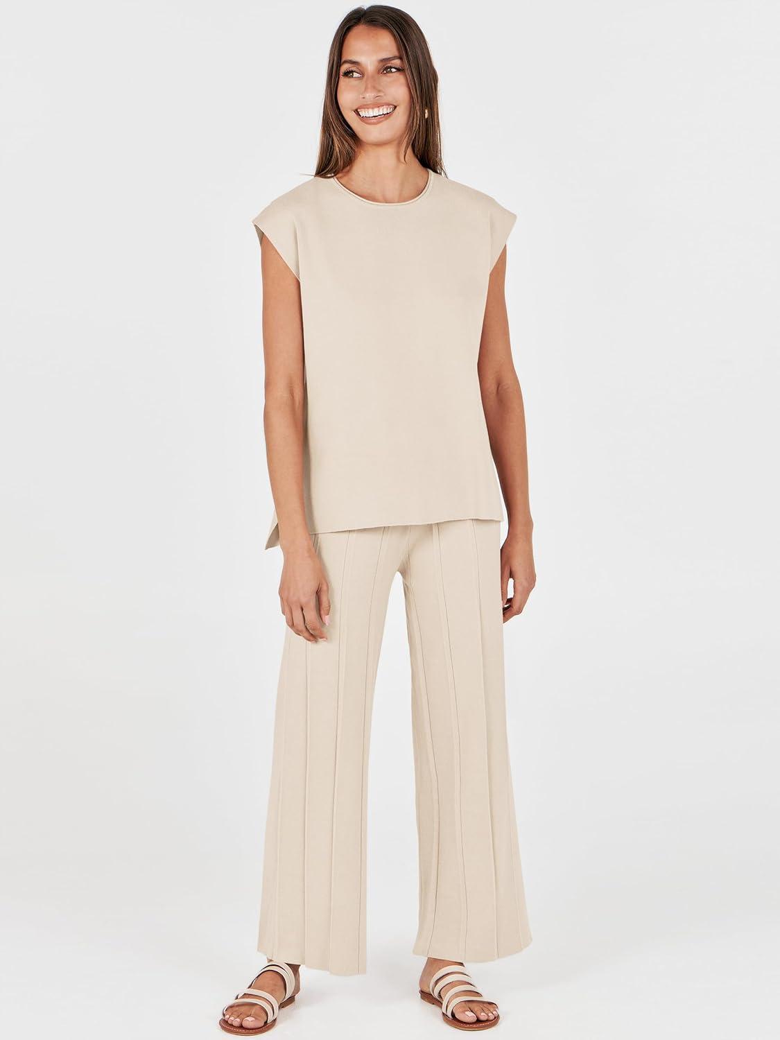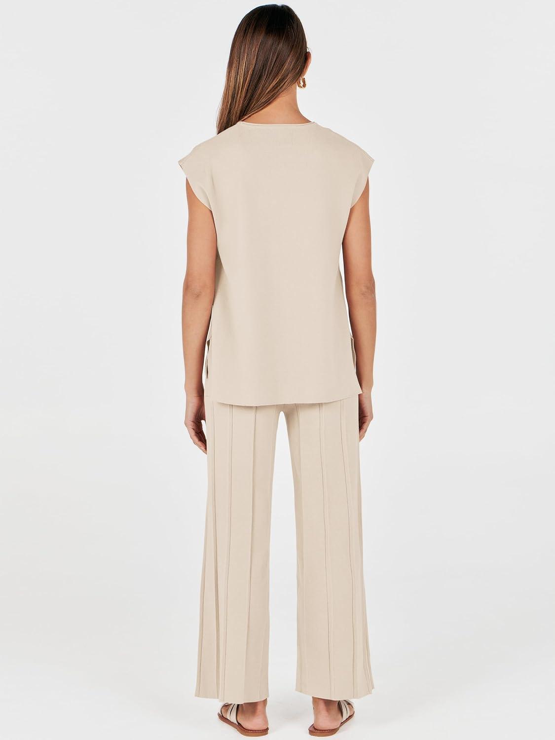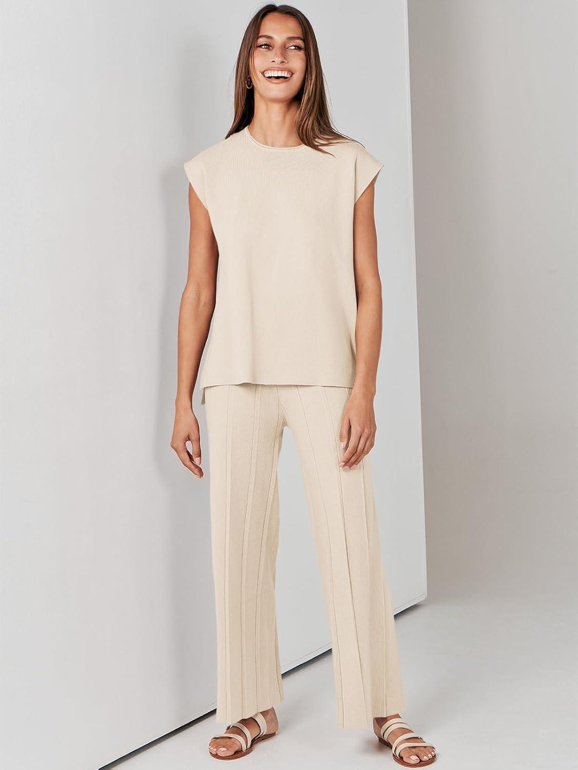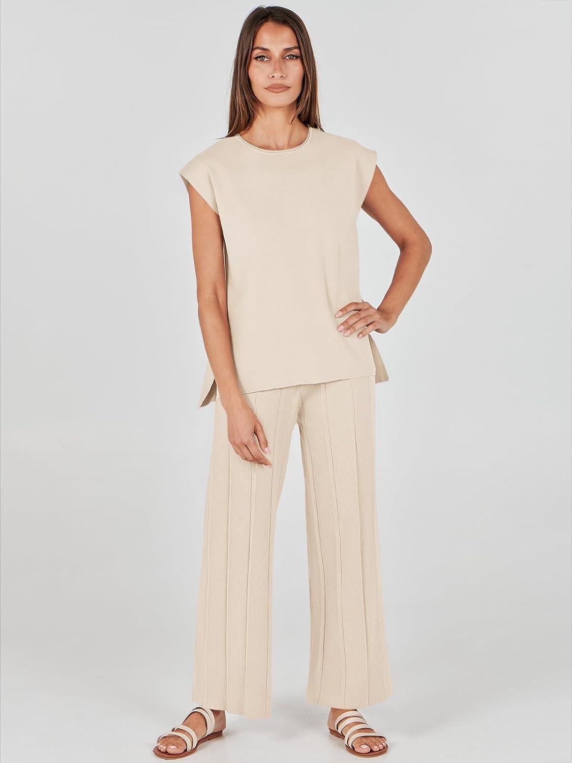 ANRABESS Women 2 Piece Lounge Sets Summer Casual Knit Sweater Vest Pant Set Beach Vacation Clothes 2026 Airport Outfits(Apricot)