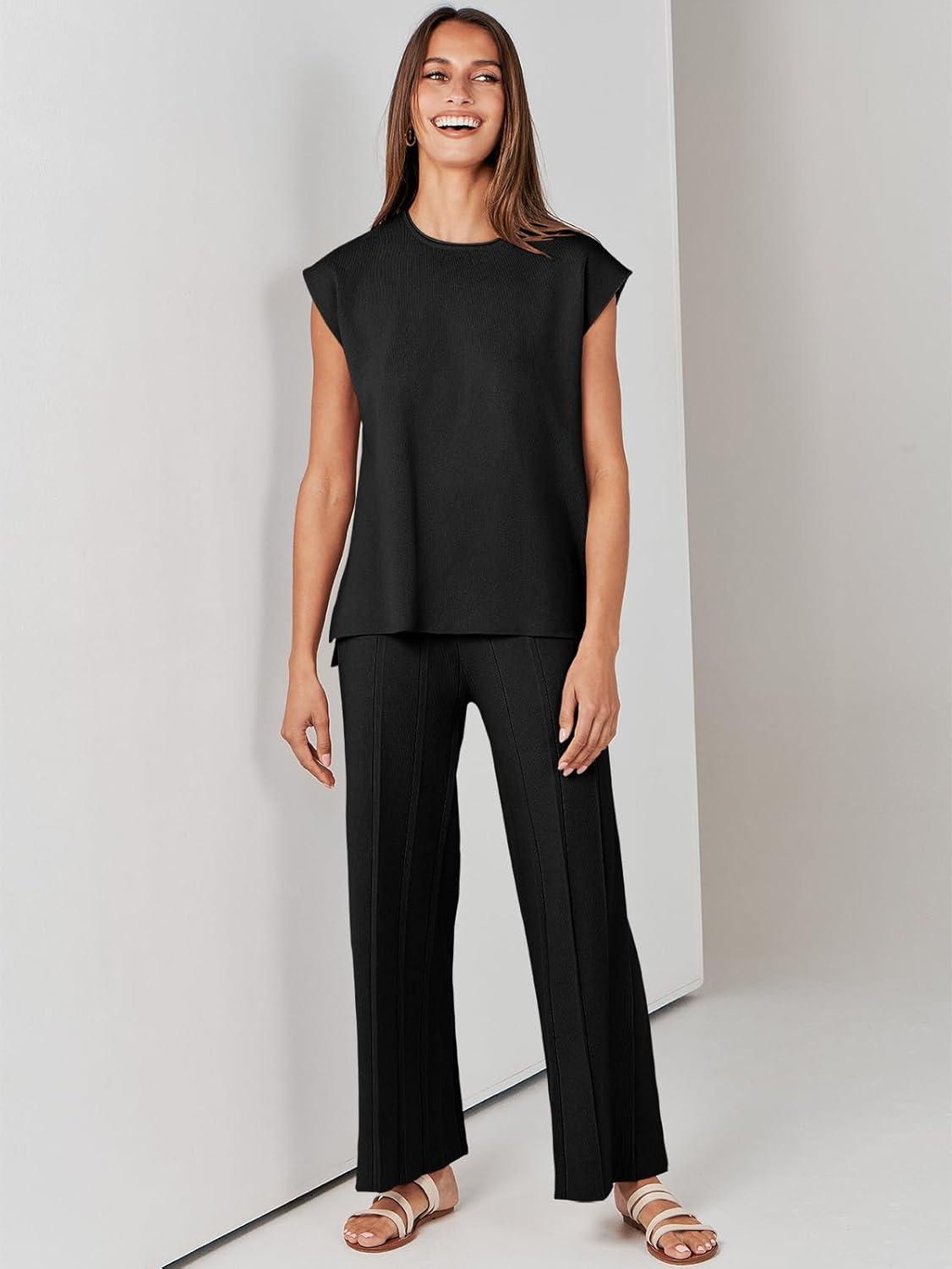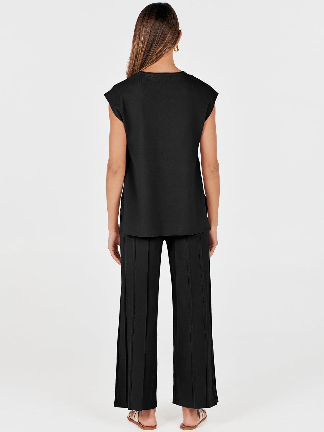 ANRABESS Women 2 Piece Lounge Sets Summer Casual Knit Sweater Vest Pant Set Beach Vacation Clothes 2026 Airport Outfits(Black)