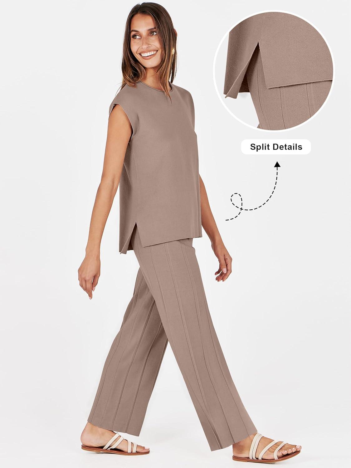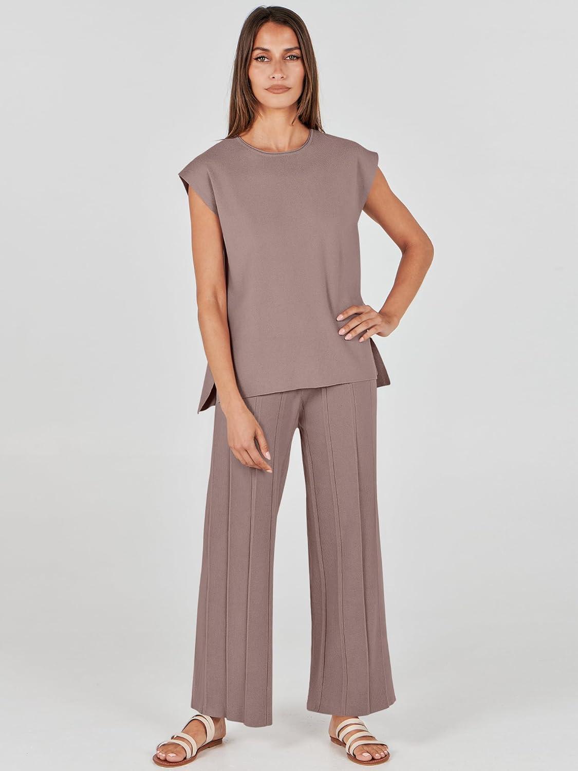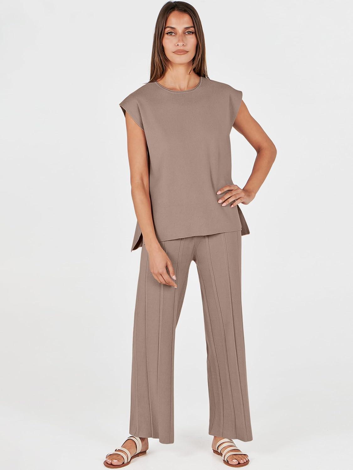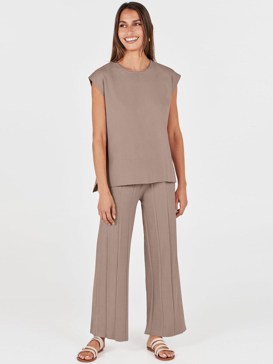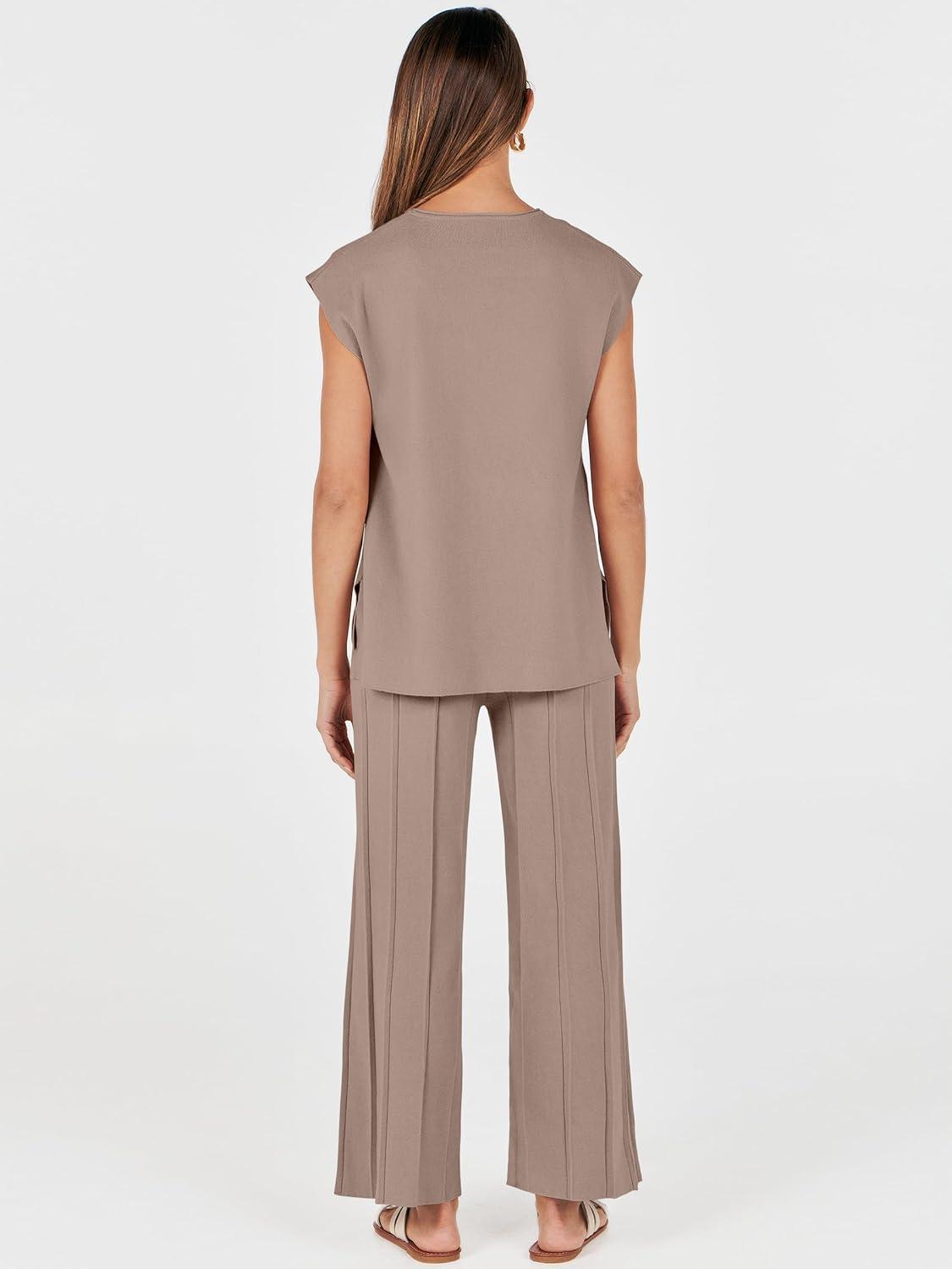 ANRABESS Women 2 Piece Lounge Sets Summer Casual Knit Sweater Vest Pant Set Beach Vacation Clothes 2026 Airport Outfits(Coffee)