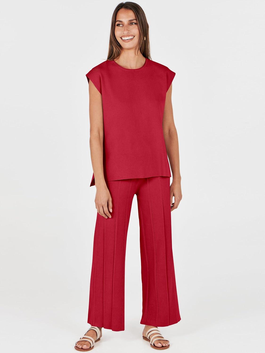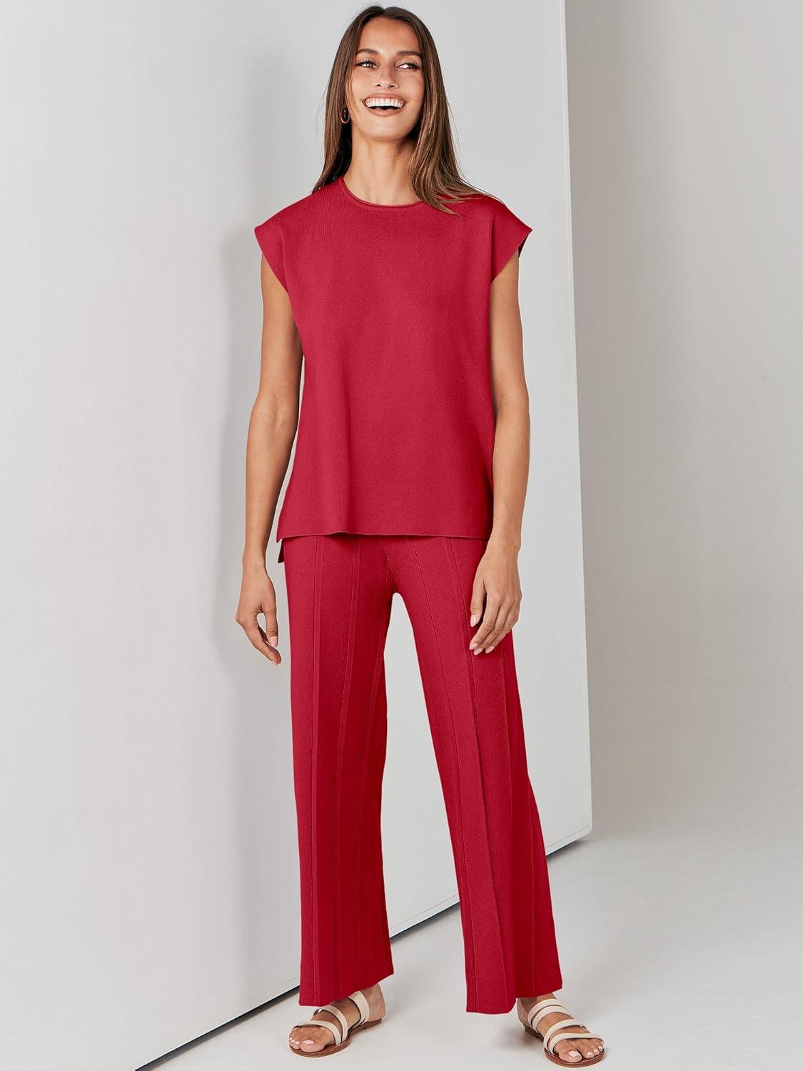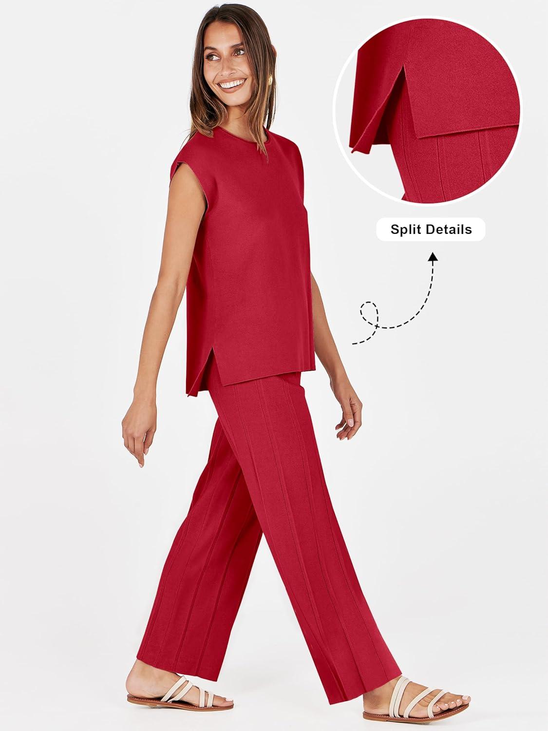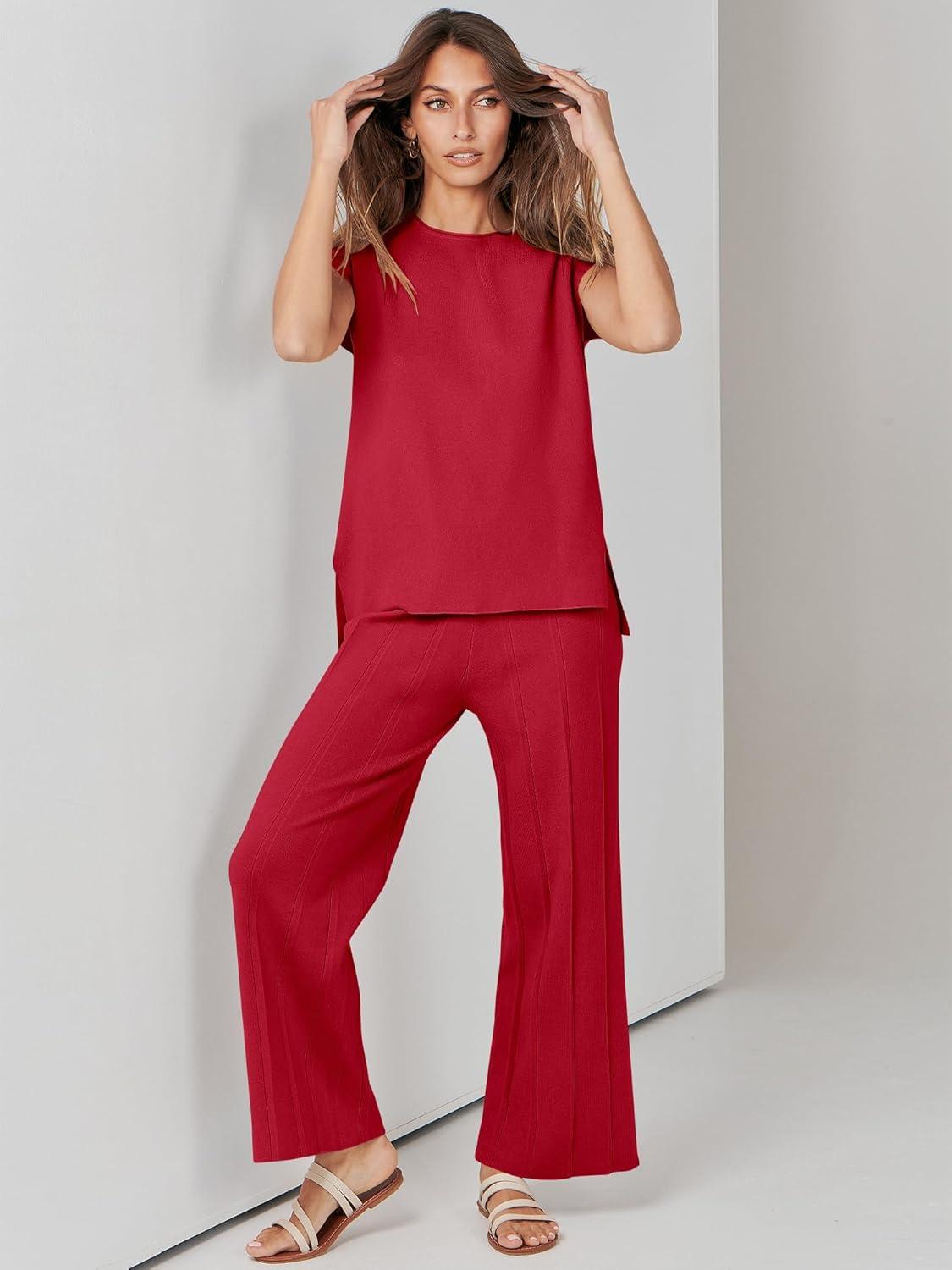 ANRABESS Women 2 Piece Lounge Sets Summer Casual Knit Sweater Vest Pant Set Beach Vacation Clothes 2026 Airport Outfits(Red)