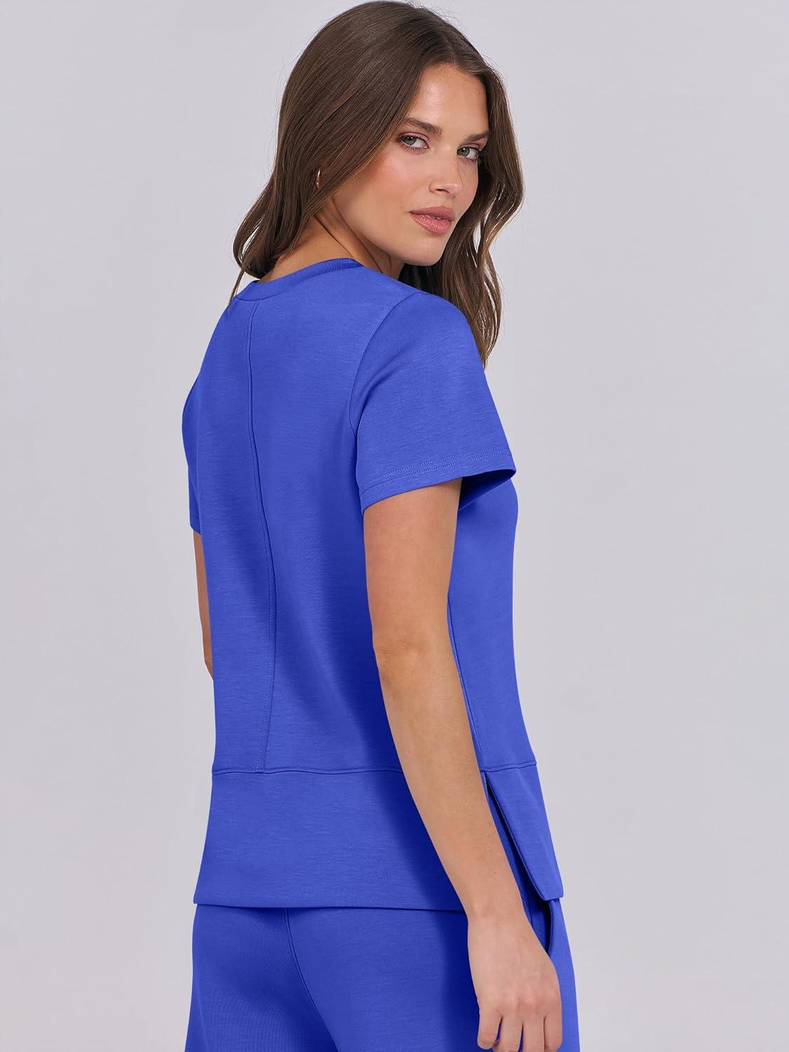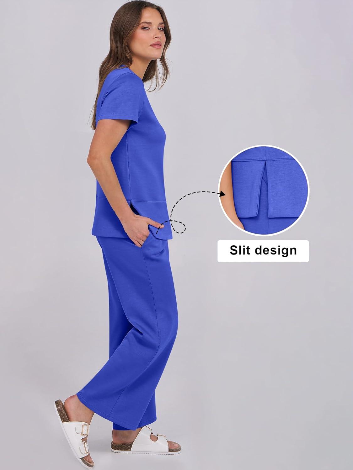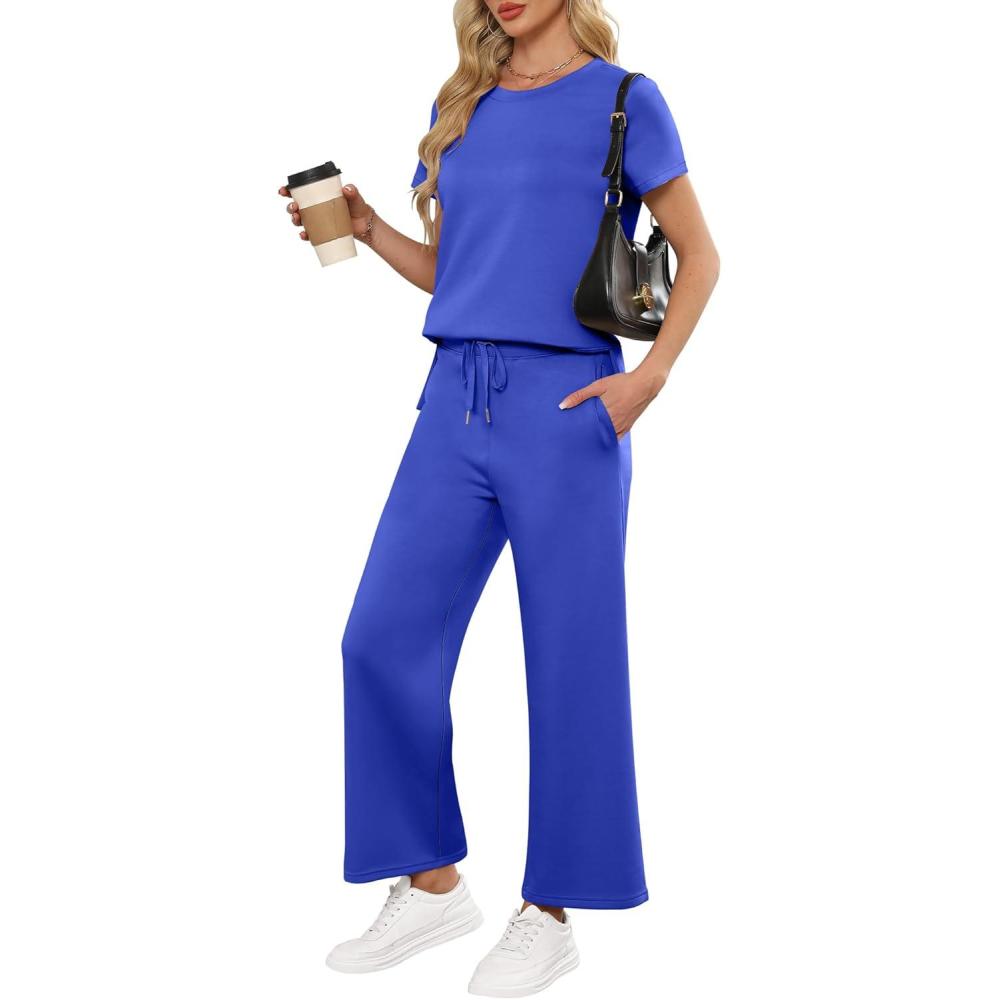 ANRABESS Women 2 Piece Lounge Sets Summer Travel Sweat Outfits Short Sleeve Wide Leg Casual Matching Tracksuits Clothes(Royal Blue)