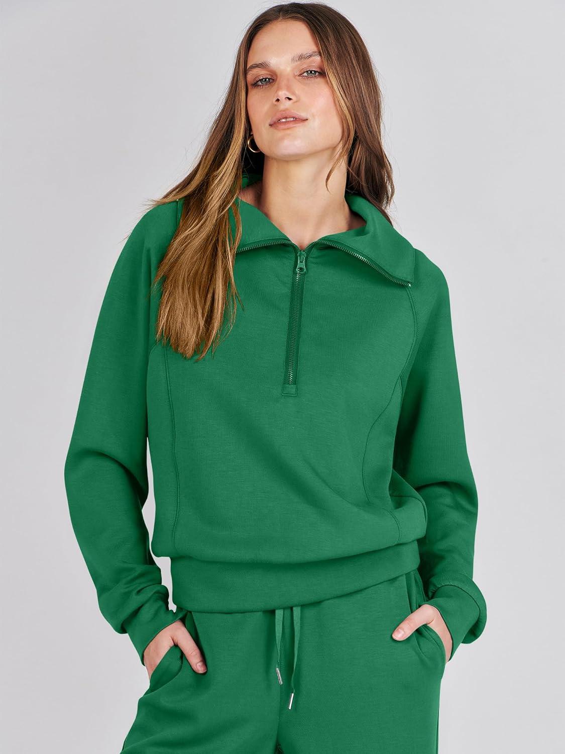 imageANRABESS Women 2 Piece Outfits 2025 Fall Fashion Airport Wide Leg Pants Lounge Set Leisure Travel Vacation Clothes SweatsuitsGreen