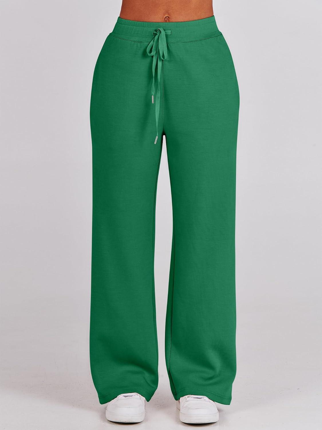 ANRABESS Women 2 Piece Outfits 2025 Fall Fashion Airport Wide Leg Pants Lounge Set Leisure Travel Vacation Clothes Sweatsuits(Green)