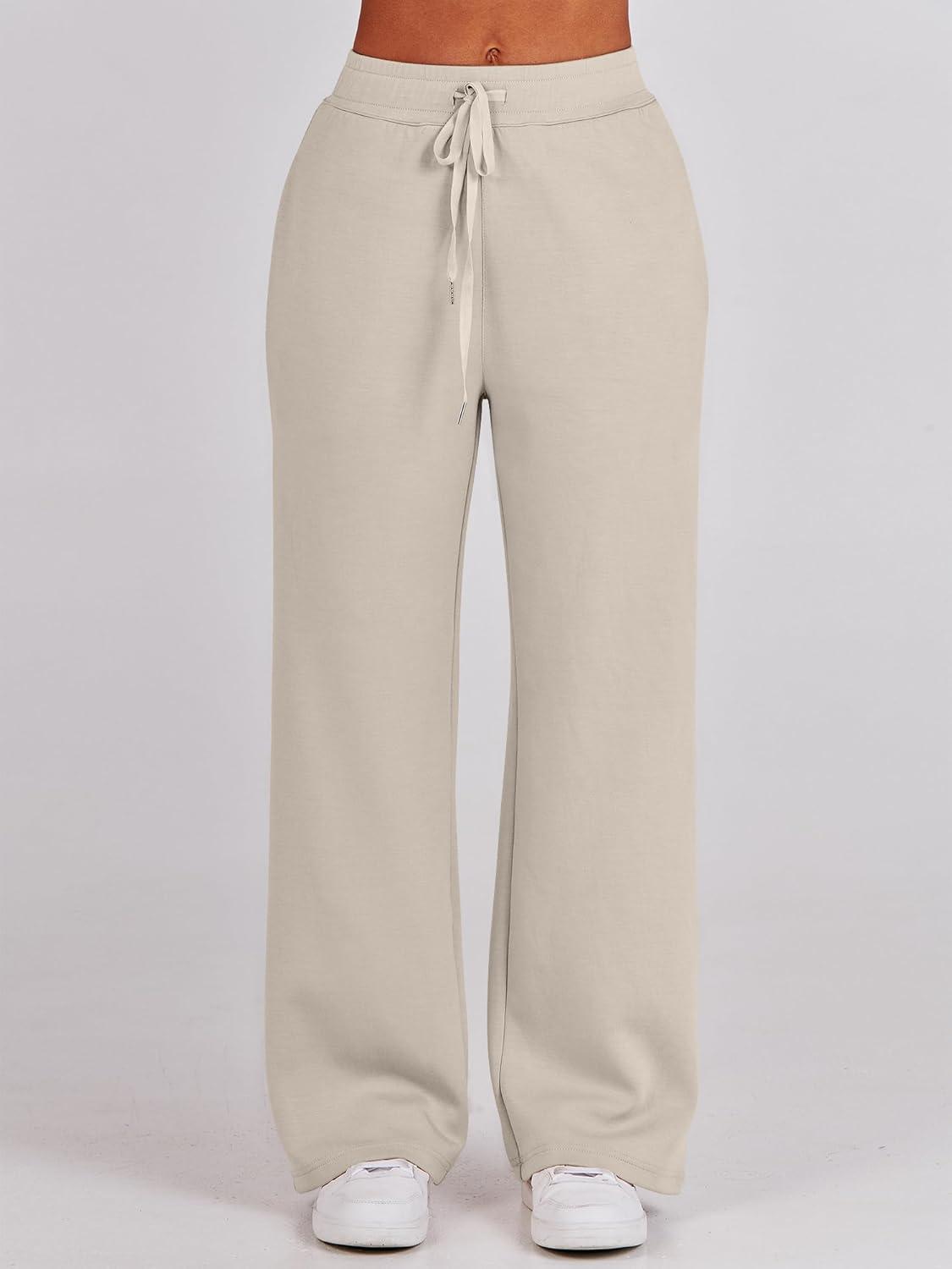 ANRABESS Women 2 Piece Outfits 2025 Fall Fashion Airport Wide Leg Pants Lounge Set Leisure Travel Vacation Clothes Sweatsuits(Light Khaki)