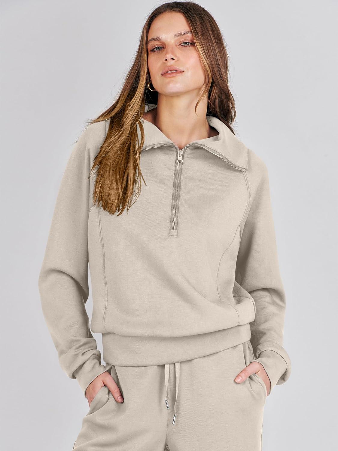 imageANRABESS Women 2 Piece Outfits 2025 Fall Fashion Airport Wide Leg Pants Lounge Set Leisure Travel Vacation Clothes SweatsuitsLight Khaki