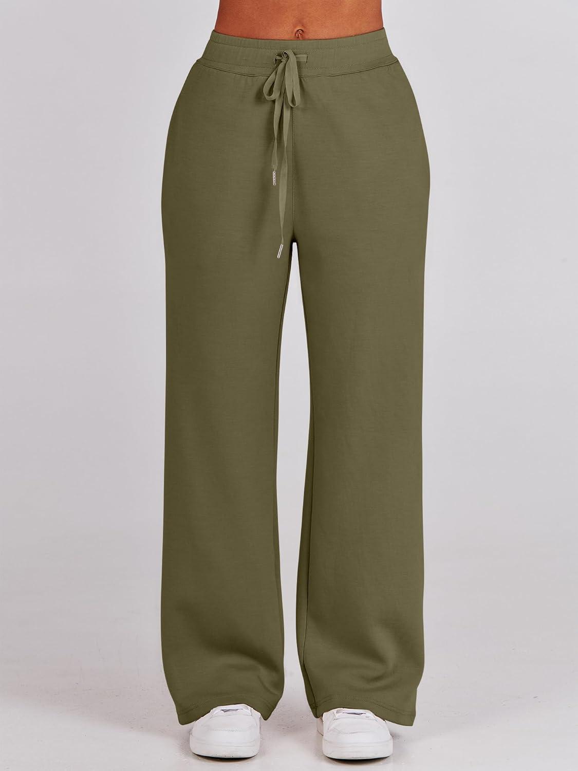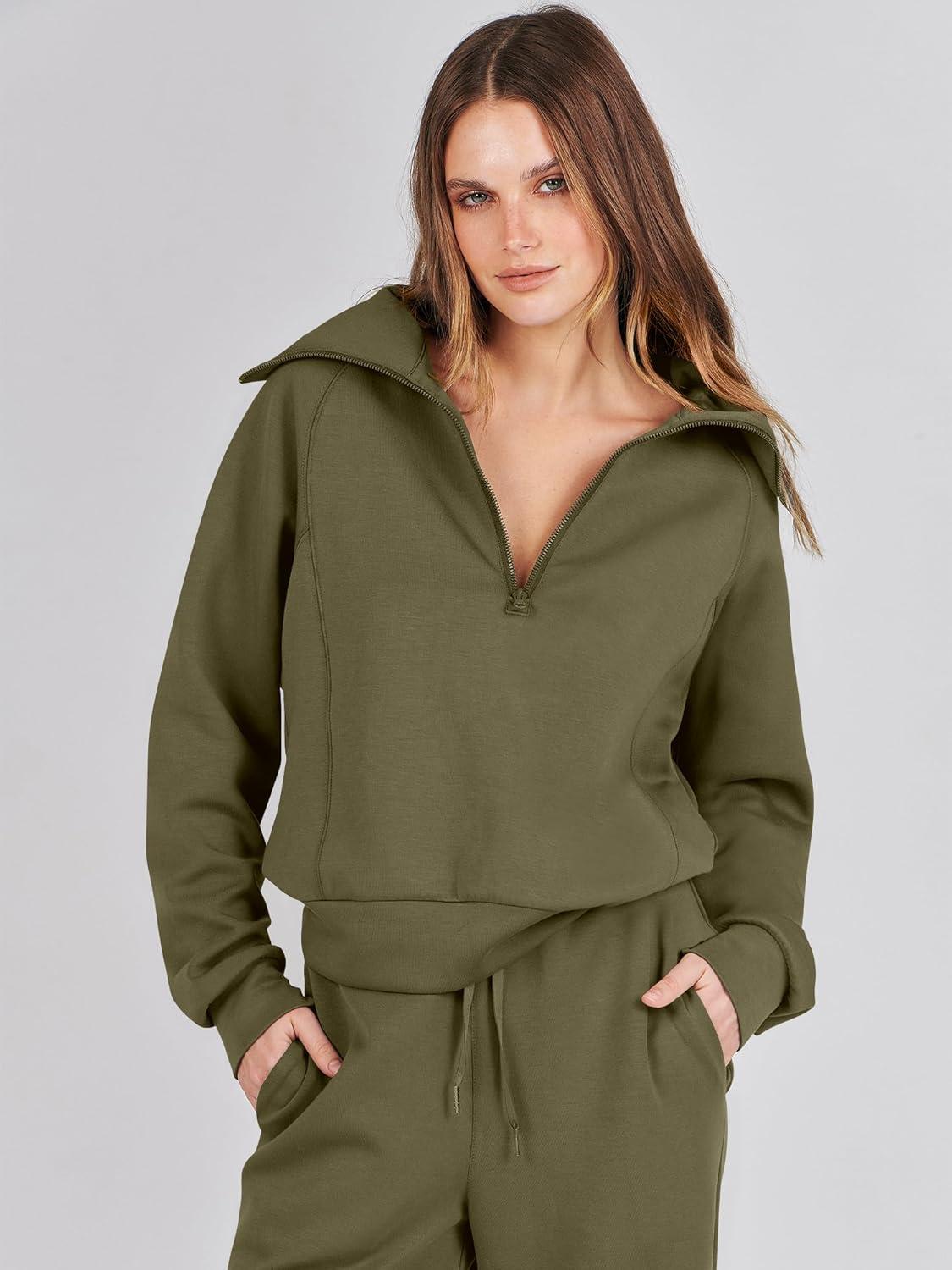 ANRABESS Women 2 Piece Outfits 2025 Fall Fashion Airport Wide Leg Pants Lounge Set Leisure Travel Vacation Clothes Sweatsuits(Olive)