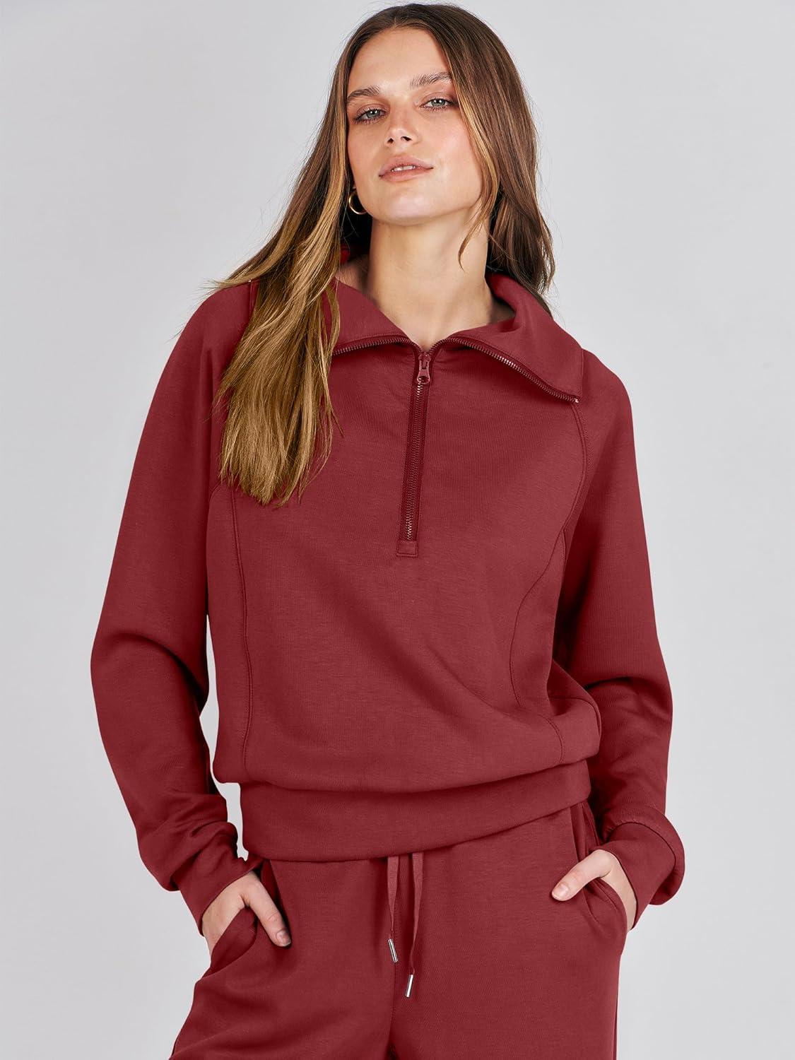 imageANRABESS Women 2 Piece Outfits 2025 Fall Fashion Airport Wide Leg Pants Lounge Set Leisure Travel Vacation Clothes SweatsuitsRed