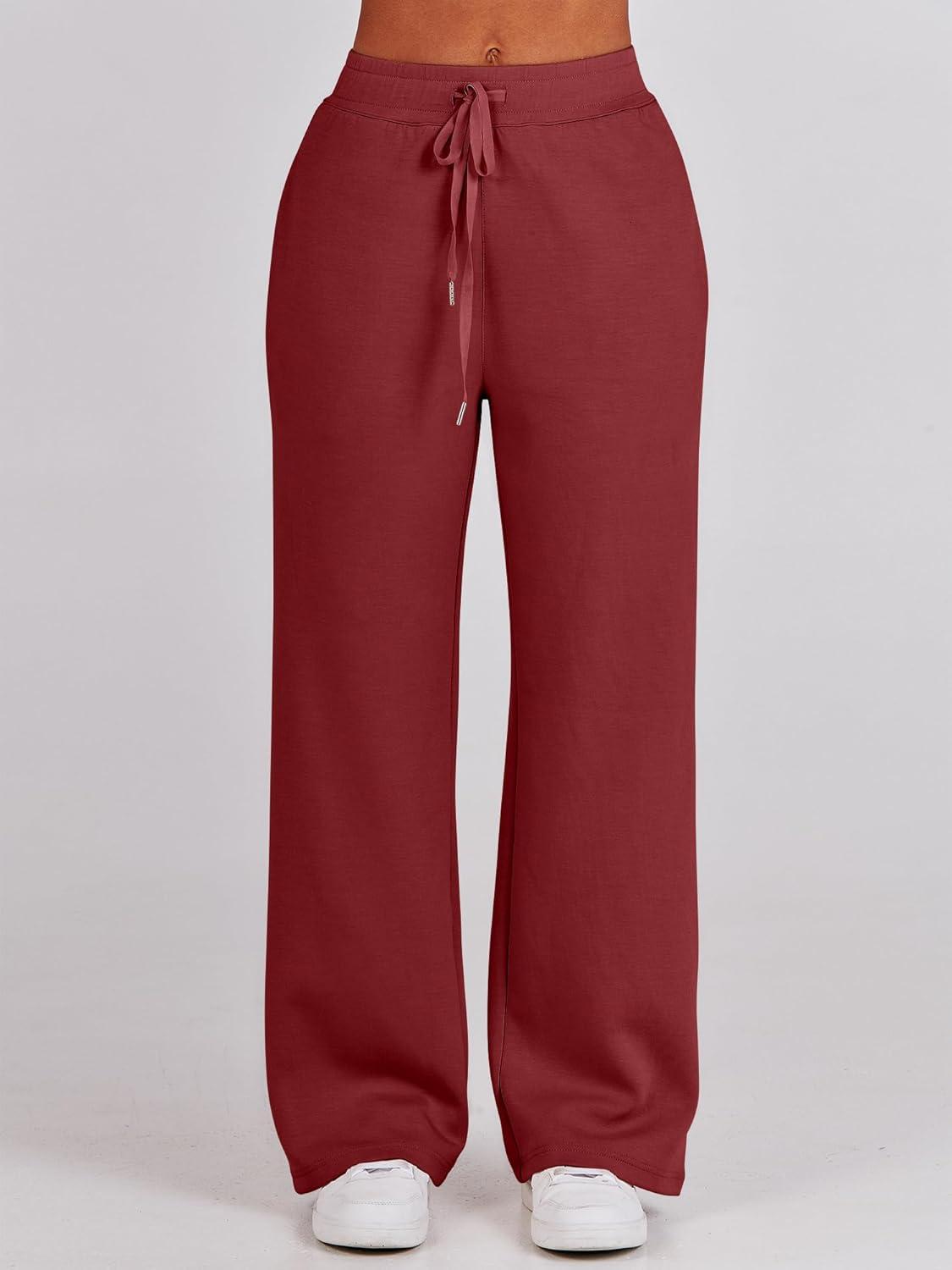 ANRABESS Women 2 Piece Outfits 2025 Fall Fashion Airport Wide Leg Pants Lounge Set Leisure Travel Vacation Clothes Sweatsuits(Red)