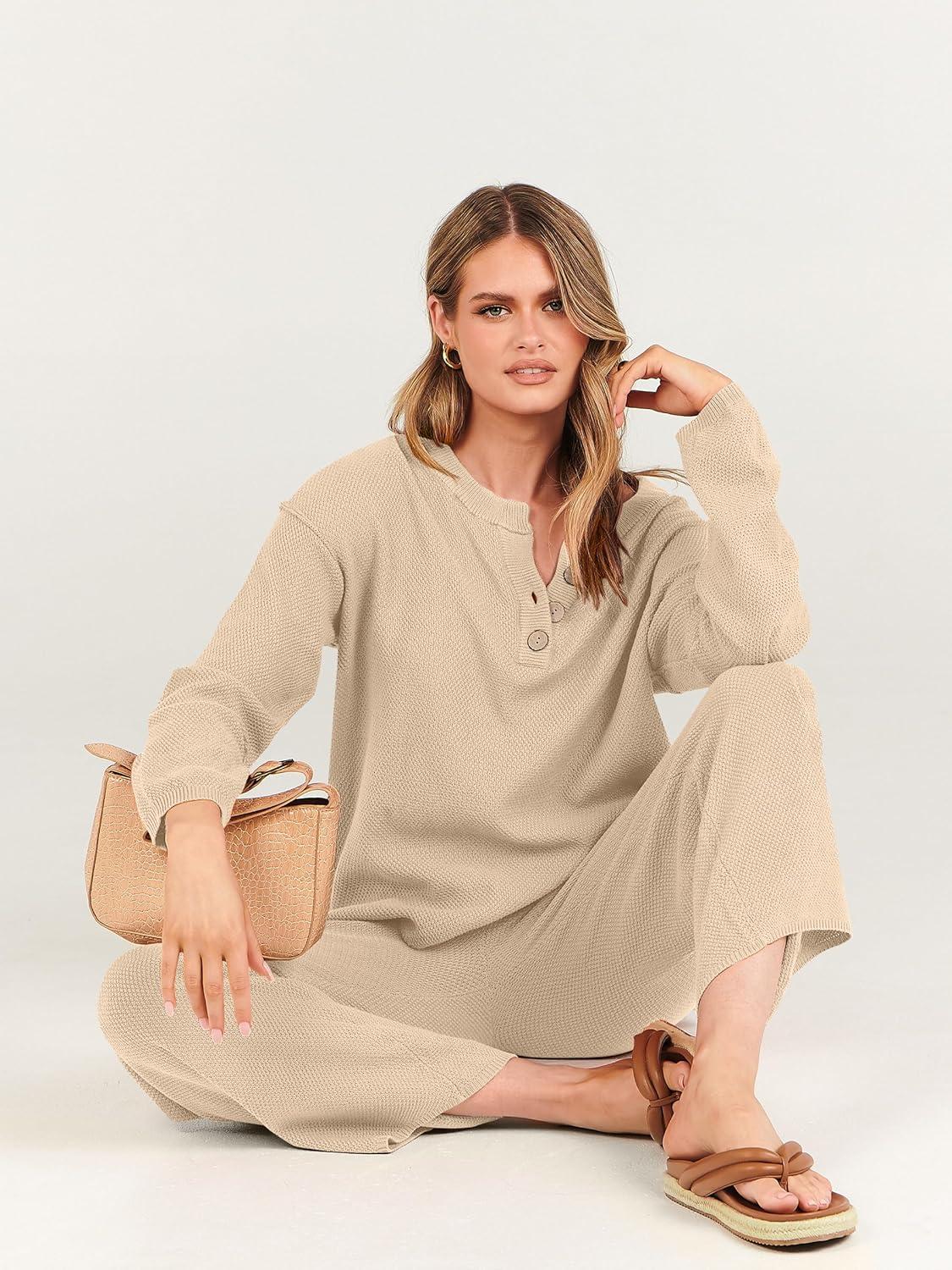 Be the first to review “ANRABESS Women 2 Piece Outfits Oversized Loose Waffle Knit Sweater Set 2025 Fall Trendy Matching Lounge Sets Cozy Clothes(Apricot)”