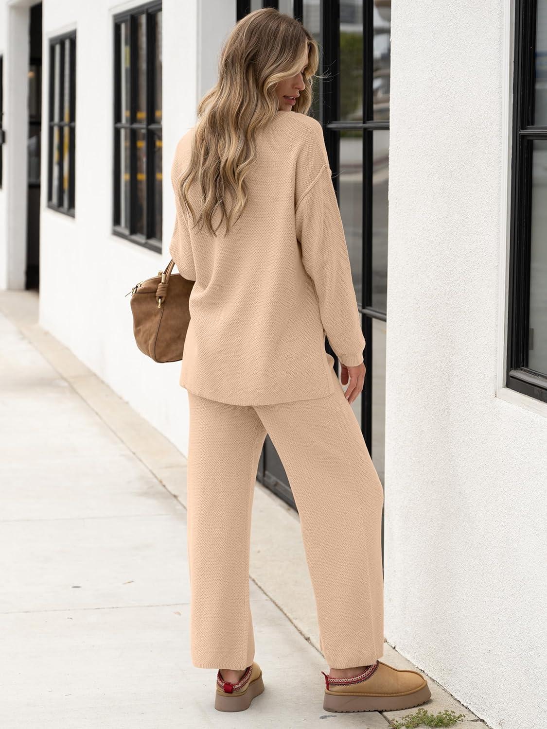 ANRABESS Women 2 Piece Outfits Oversized Loose Waffle Knit Sweater Set 2025 Fall Trendy Matching Lounge Sets Cozy Clothes(Apricot)
