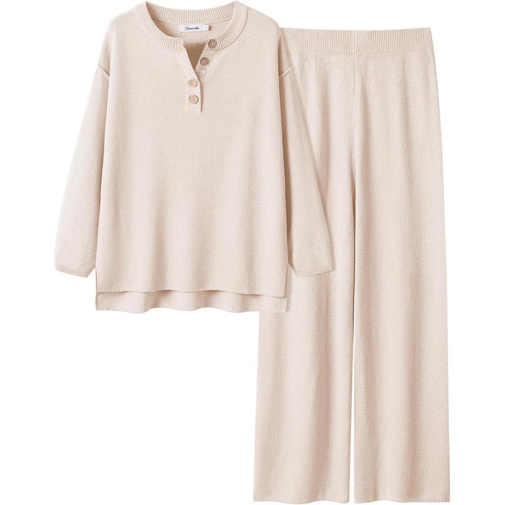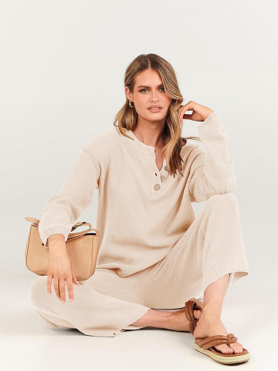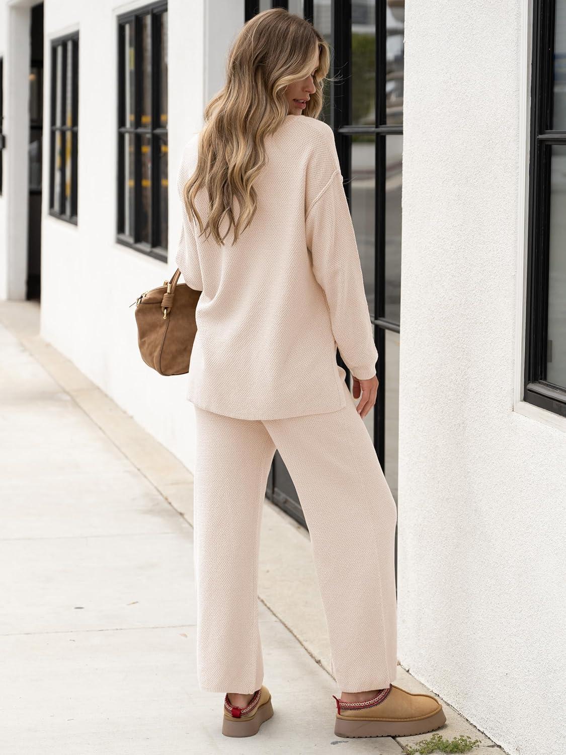 ANRABESS Women 2 Piece Outfits Oversized Loose Waffle Knit Sweater Set 2025 Fall Trendy Matching Lounge Sets Cozy Clothes(Beige)