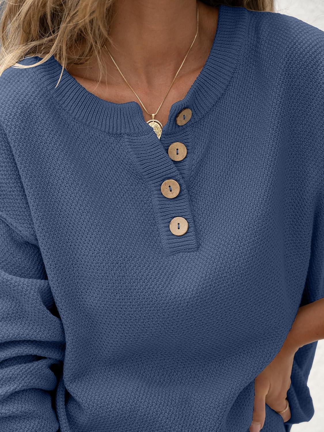 ANRABESS Women 2 Piece Outfits Oversized Loose Waffle Knit Sweater Set 2025 Fall Trendy Matching Lounge Sets Cozy Clothes(Indigo)