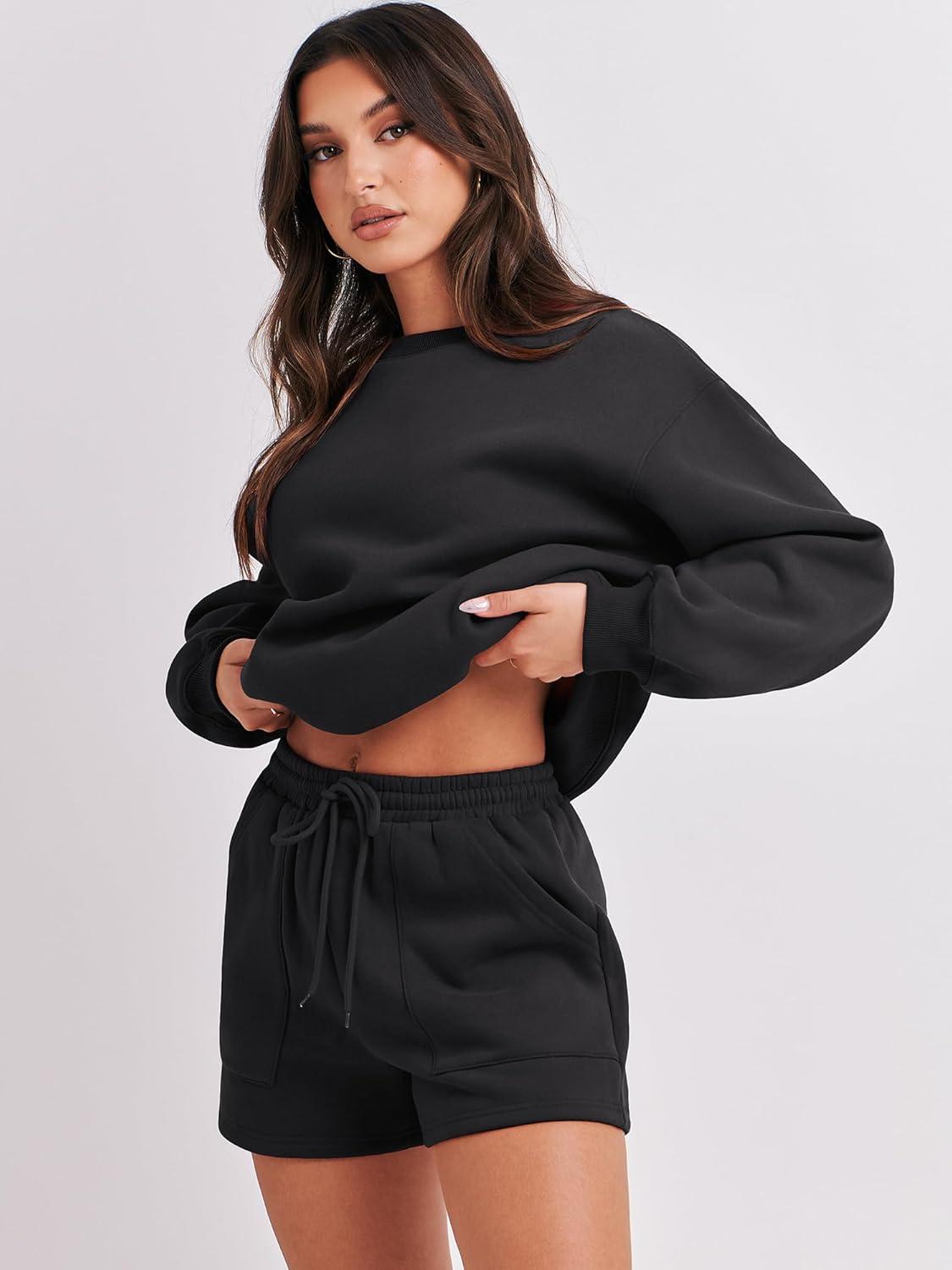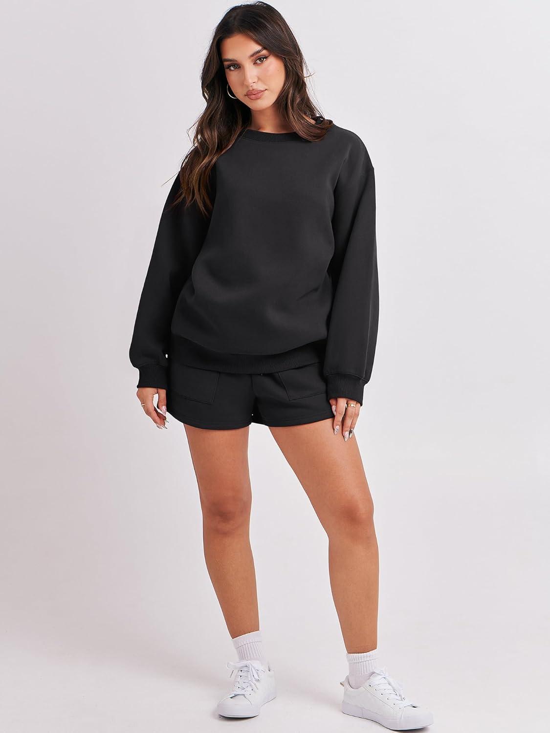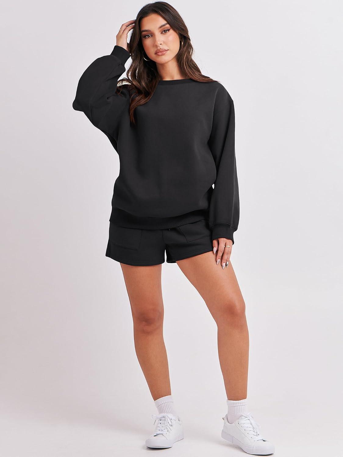 ANRABESS Women 2 Piece Outfits Sweat Shorts Sets 2026 Oversized Casual Lounge Matching Set Sweatsuit Tracksuit Fall Clothes(Black)