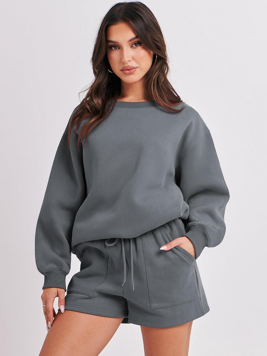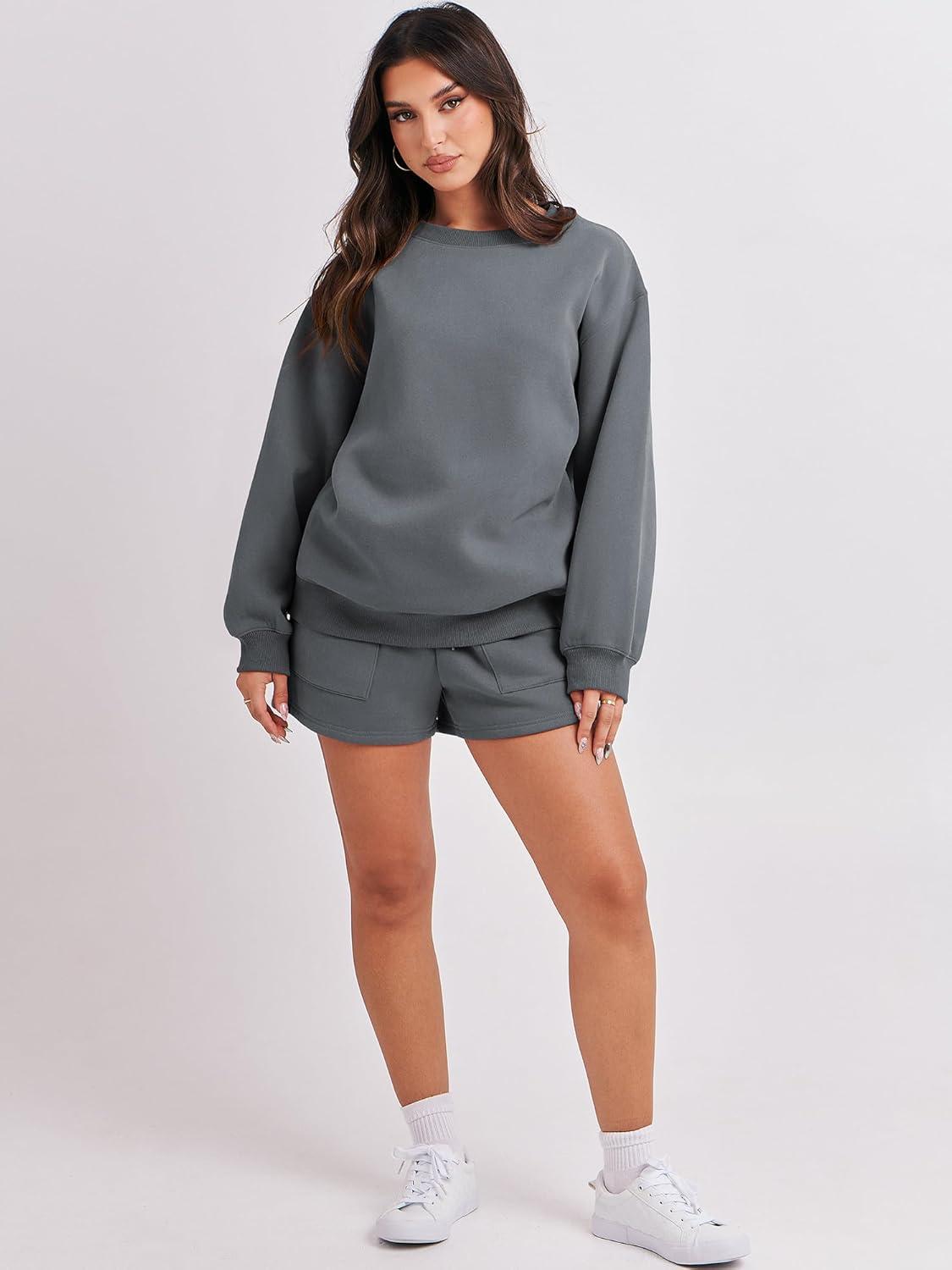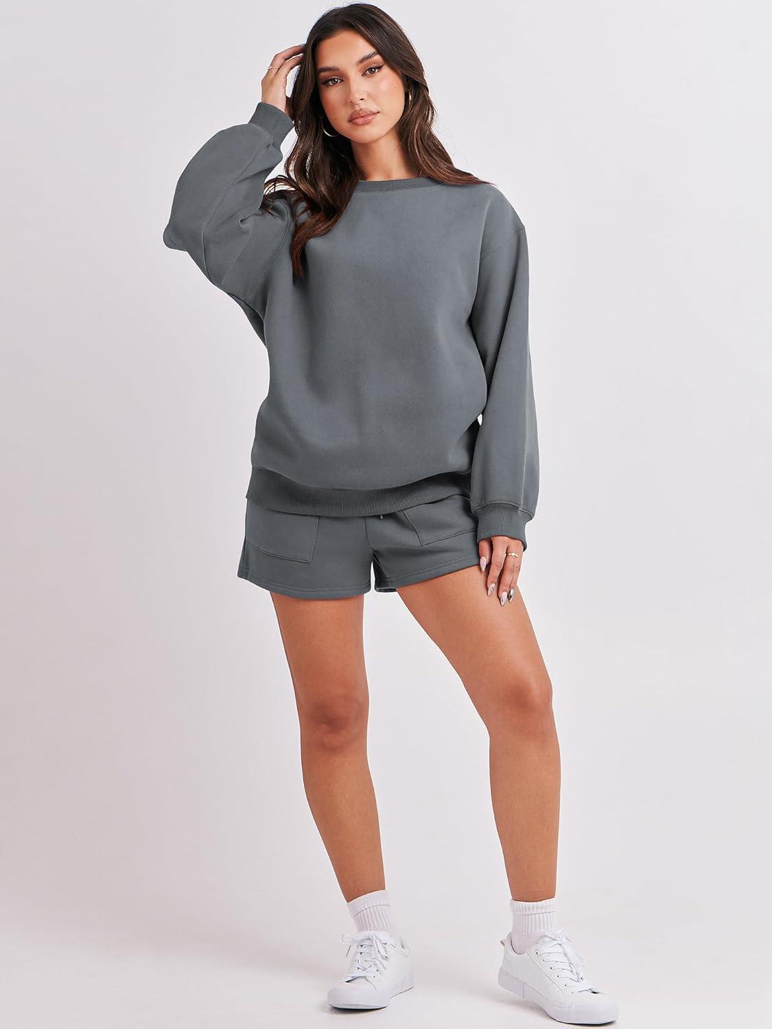 ANRABESS Women 2 Piece Outfits Sweat Shorts Sets 2026 Oversized Casual Lounge Matching Set Sweatsuit Tracksuit Fall Clothes(Dark Grey)