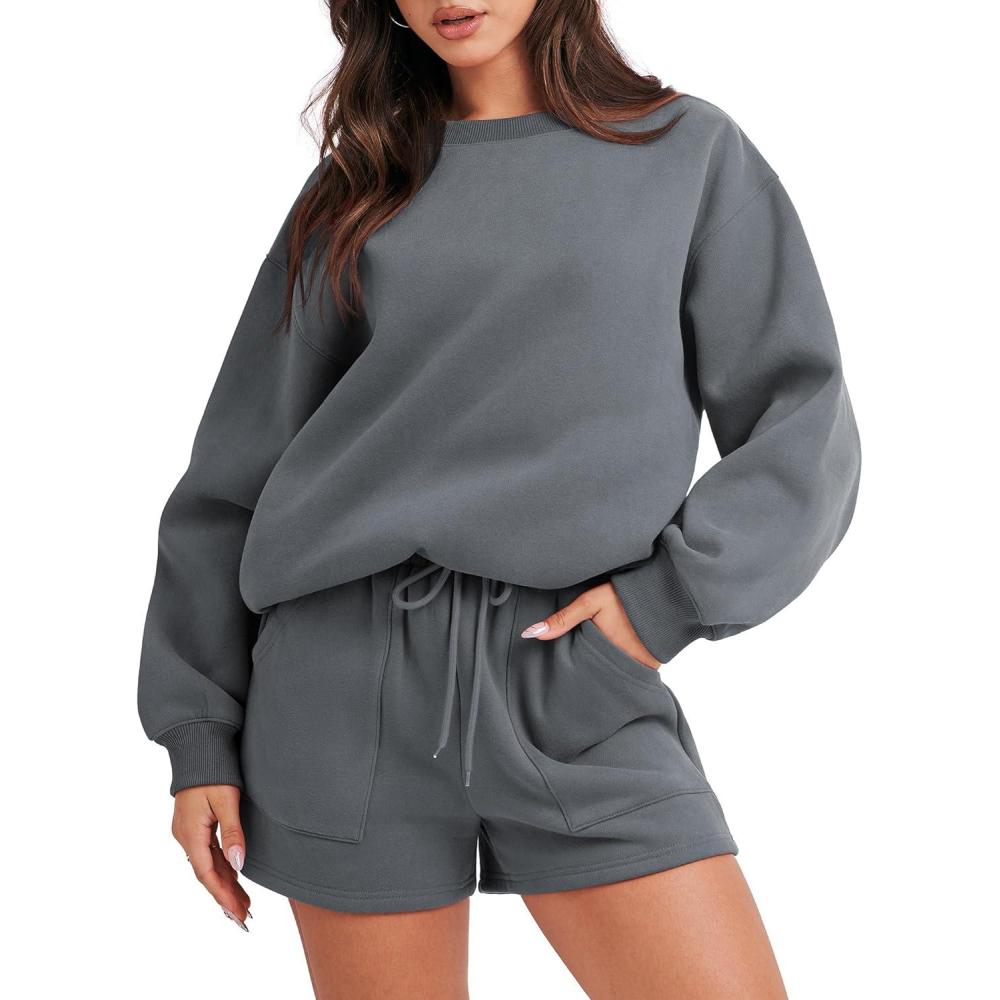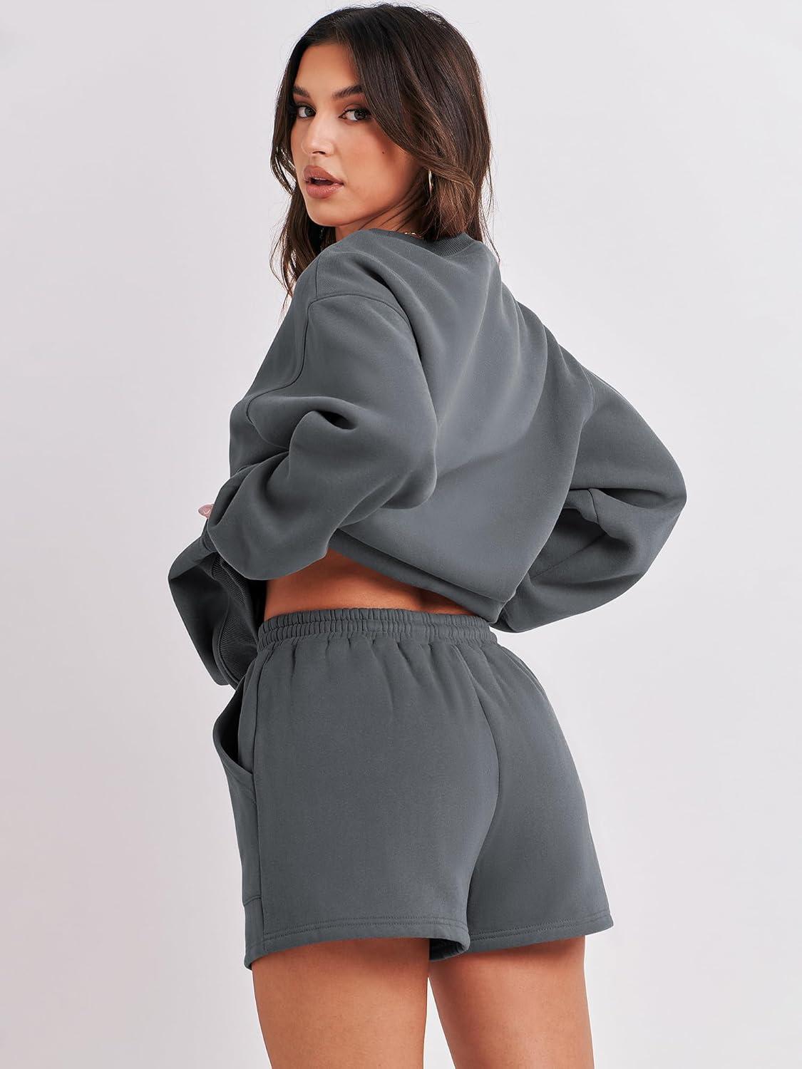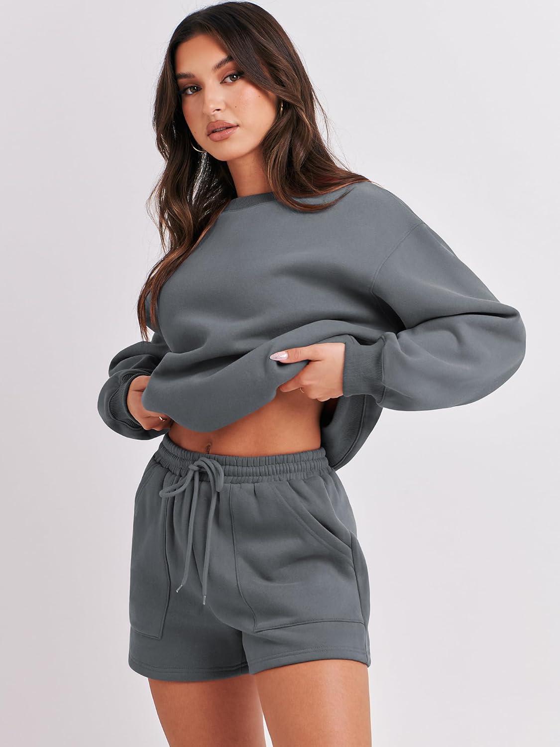 ANRABESS Women 2 Piece Outfits Sweat Shorts Sets 2026 Oversized Casual Lounge Matching Set Sweatsuit Tracksuit Fall Clothes(Dark Grey)