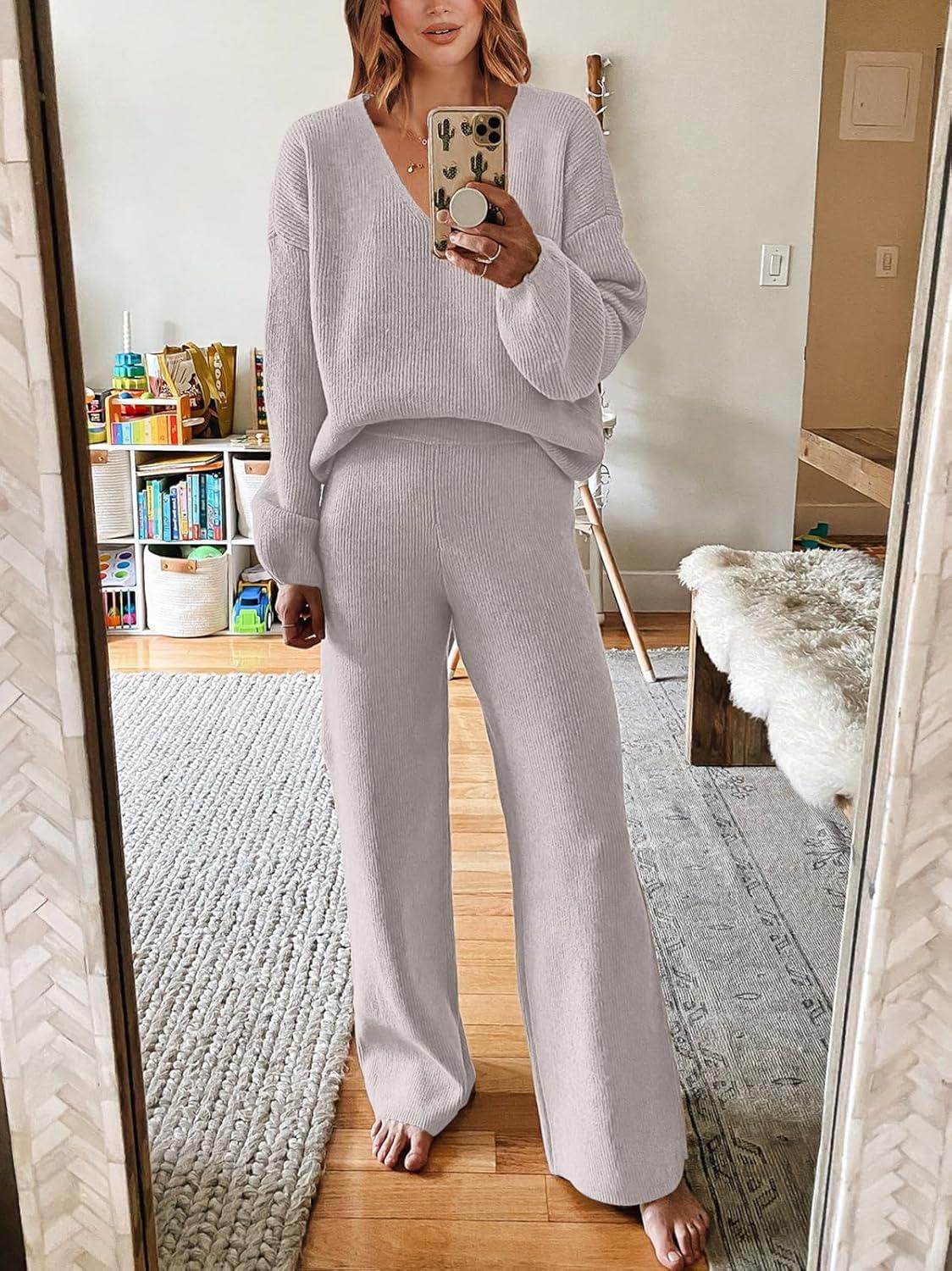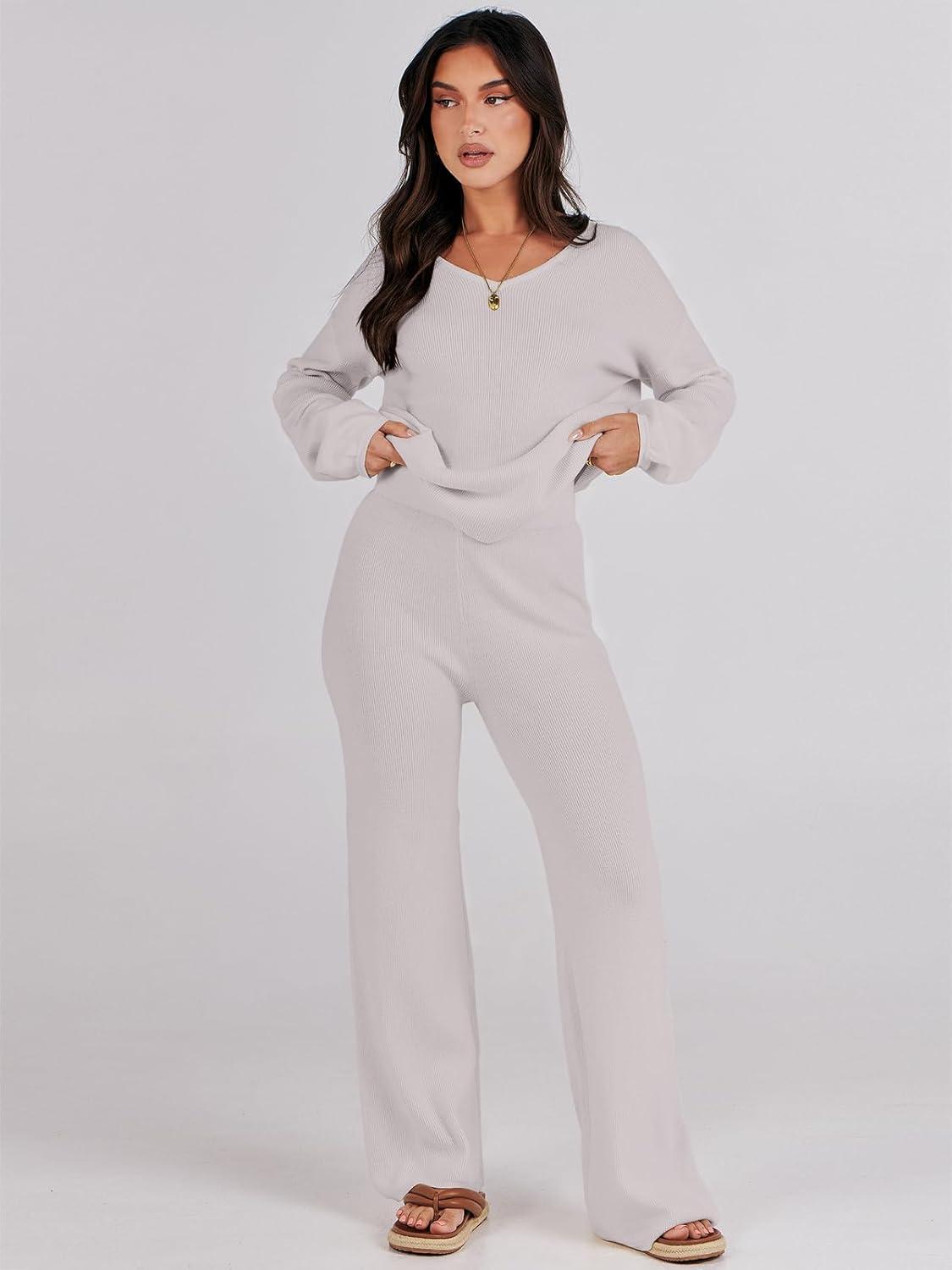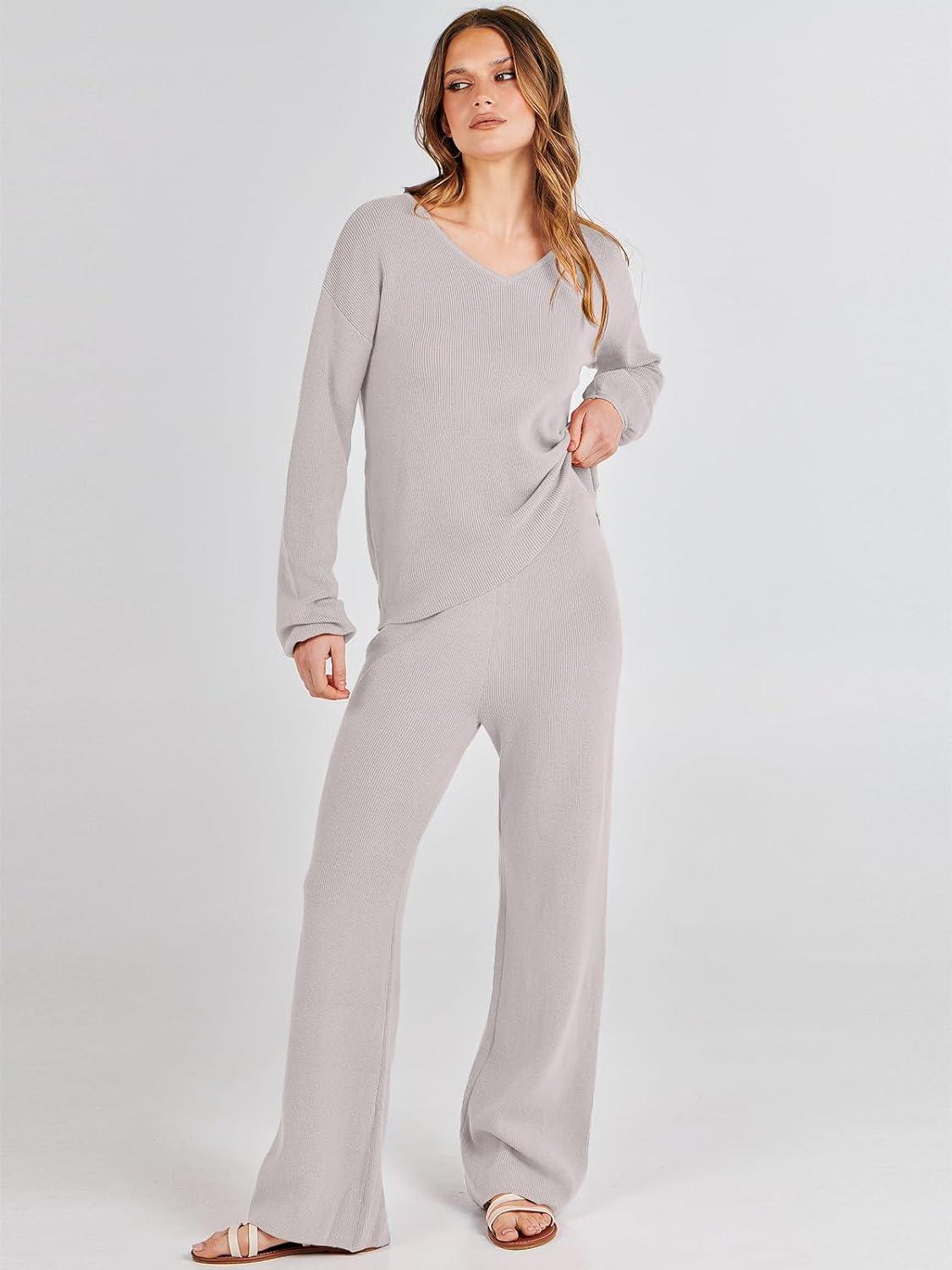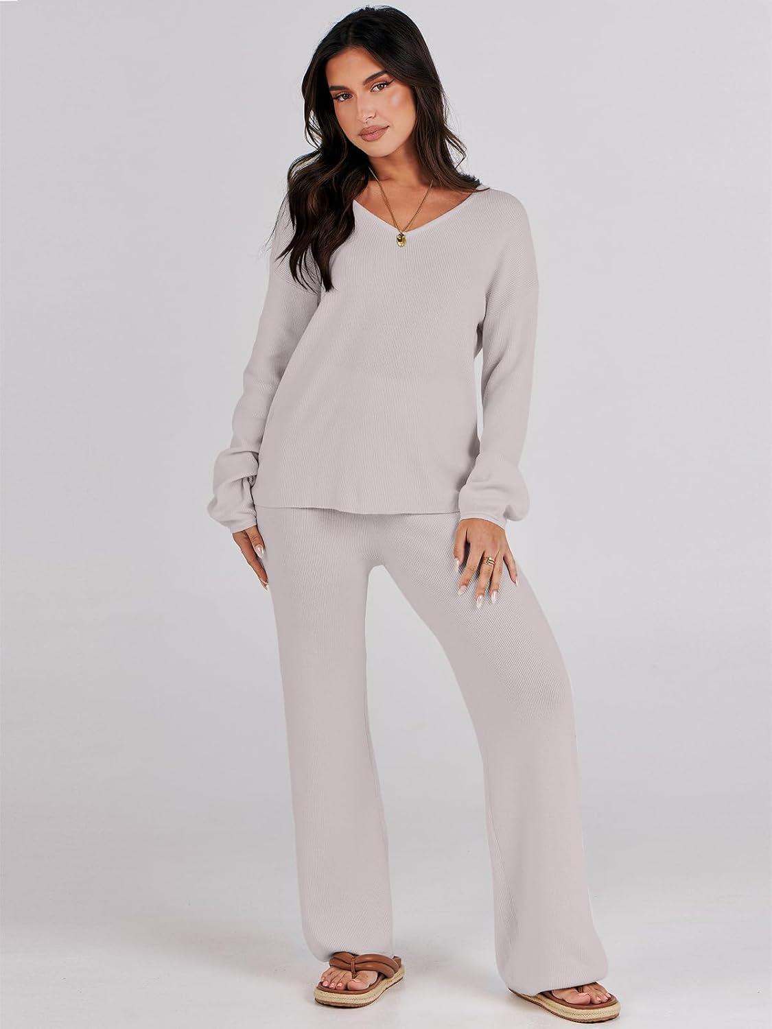 Be the first to review “ANRABESS Women 2 Piece Outfits Sweater Lounge Sets Long Sleeve Cable Knit Pullover and Wide Leg Pants Tracksuit Matching Set(Grey)”