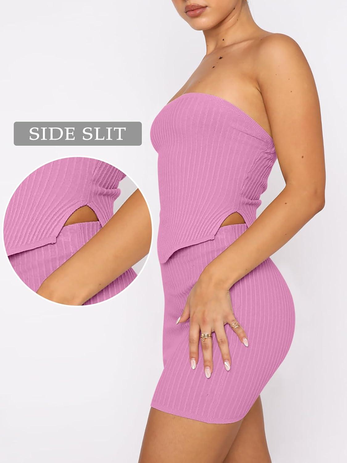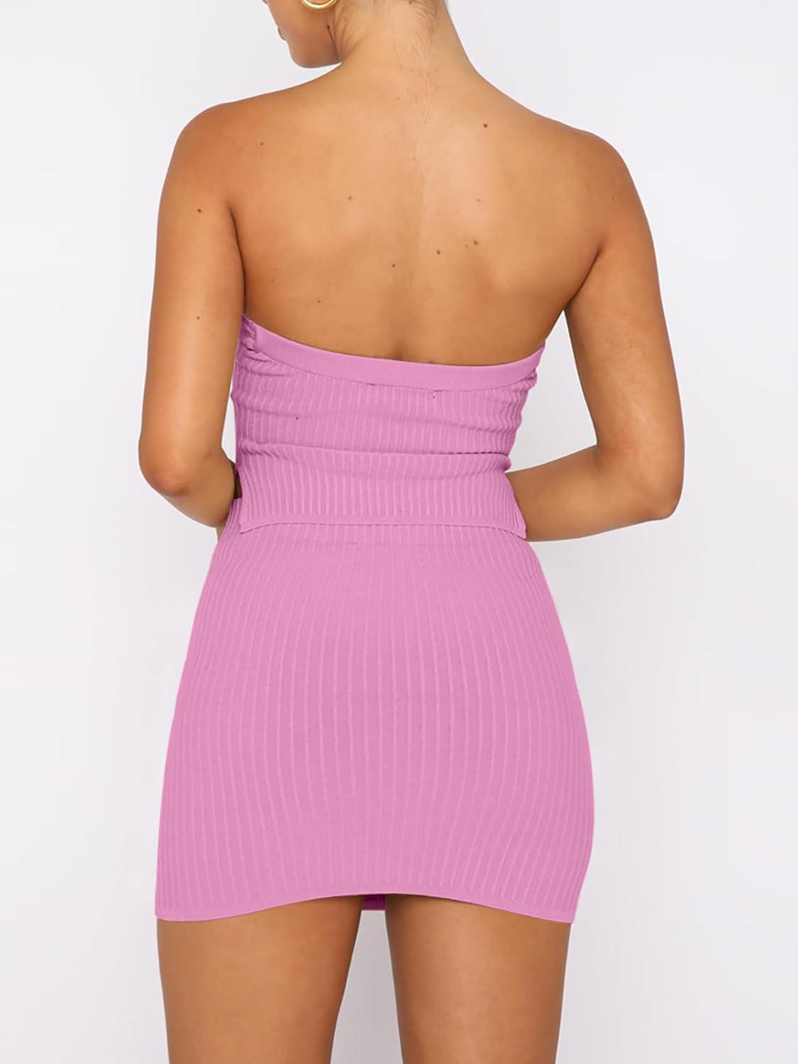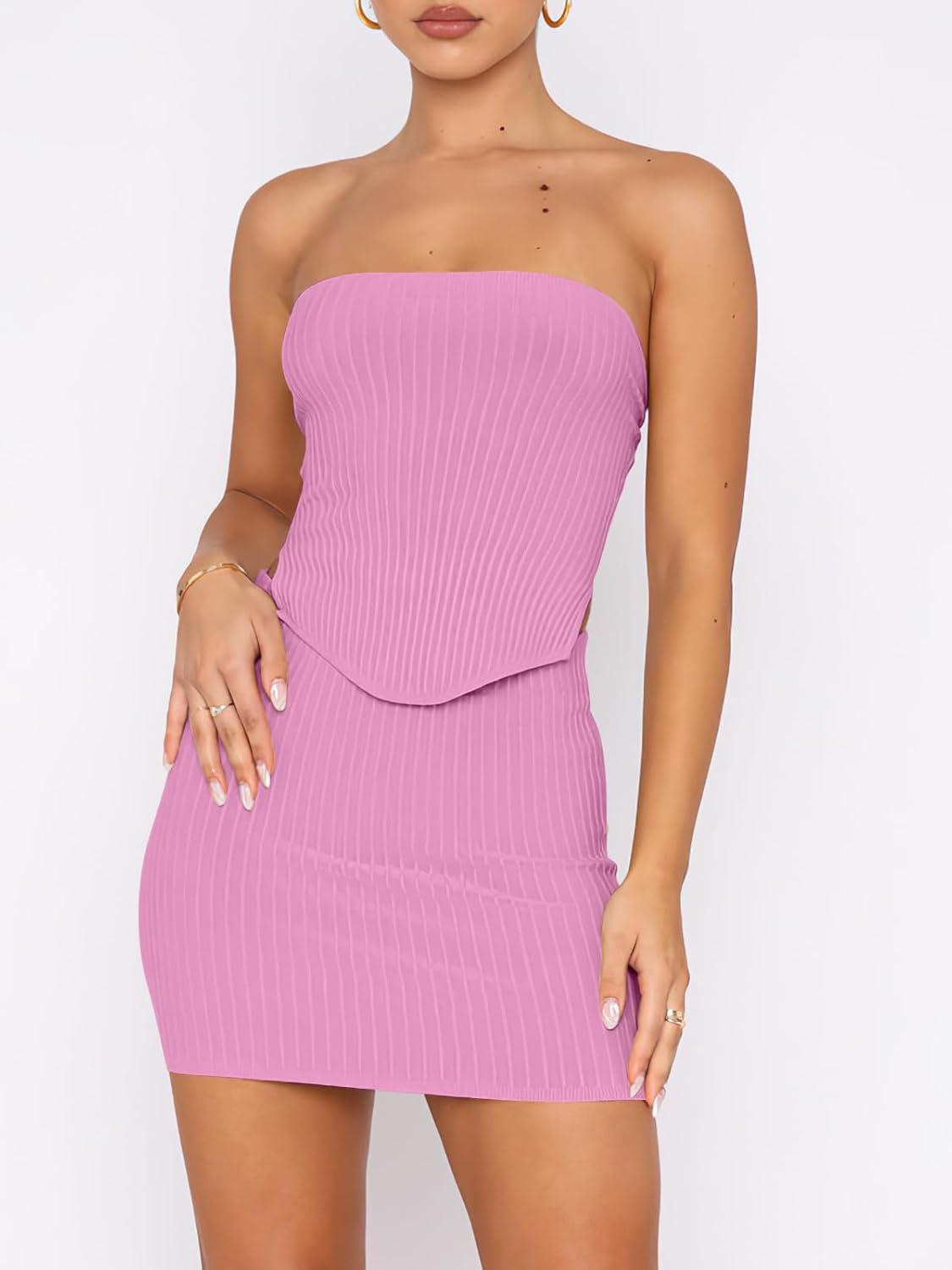 imageANRABESS Women 2 Piece Skirt Sets Summer Strapless Crop Top Matching Bodycon Sexy Going Out Mini Club Dress Outfit ClothesPink