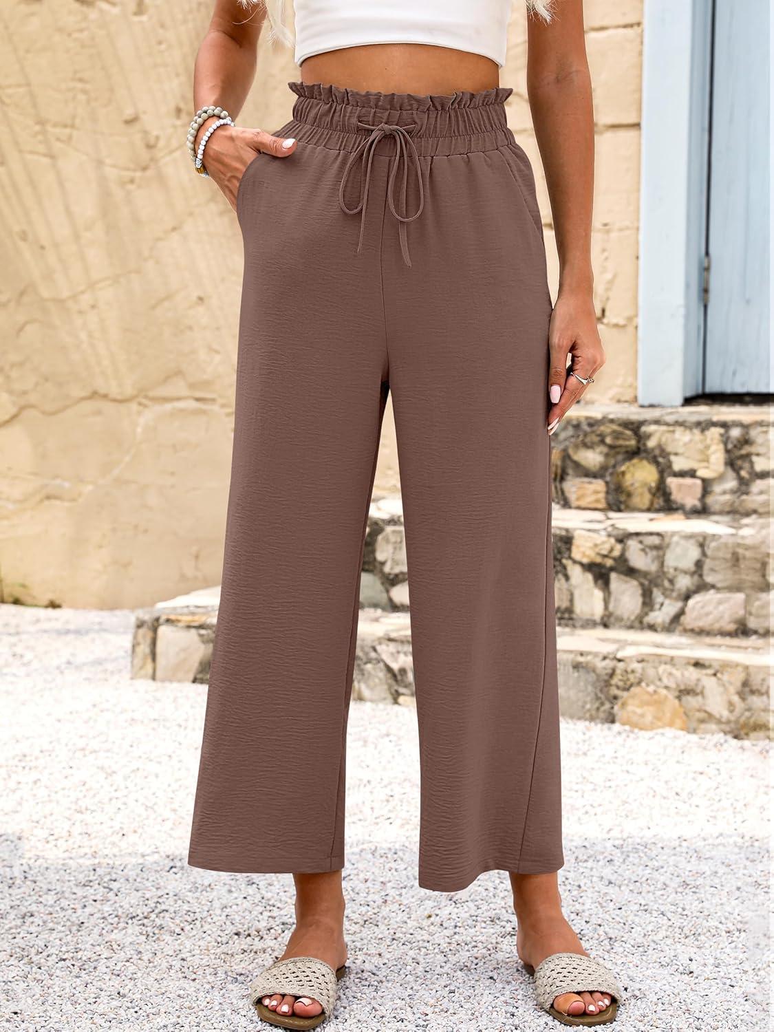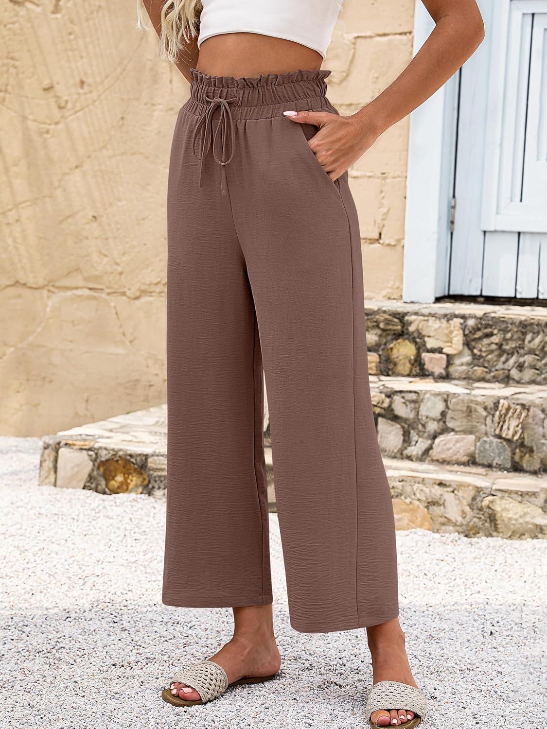 imageANRABESS Women 2025 Summer Casual Flowy Loose High Waist Boho Wide Leg Cropped Palazzo Lounge Beach Vacation Pants TrousersCoffee