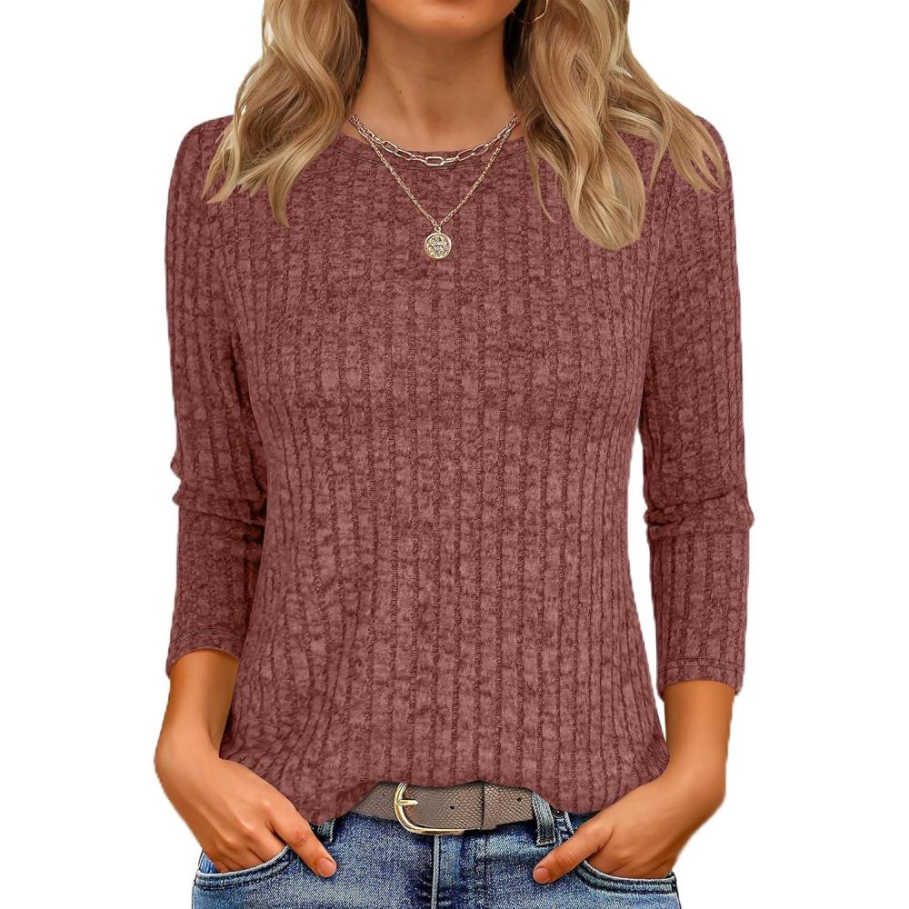 ANRABESS Women 3/4 Sleeve Length Shirts 2025 Fall Lightweight Sweaters Loose Fit Ribbed Knit Casual Soft Layering Tops(Rust Orange)