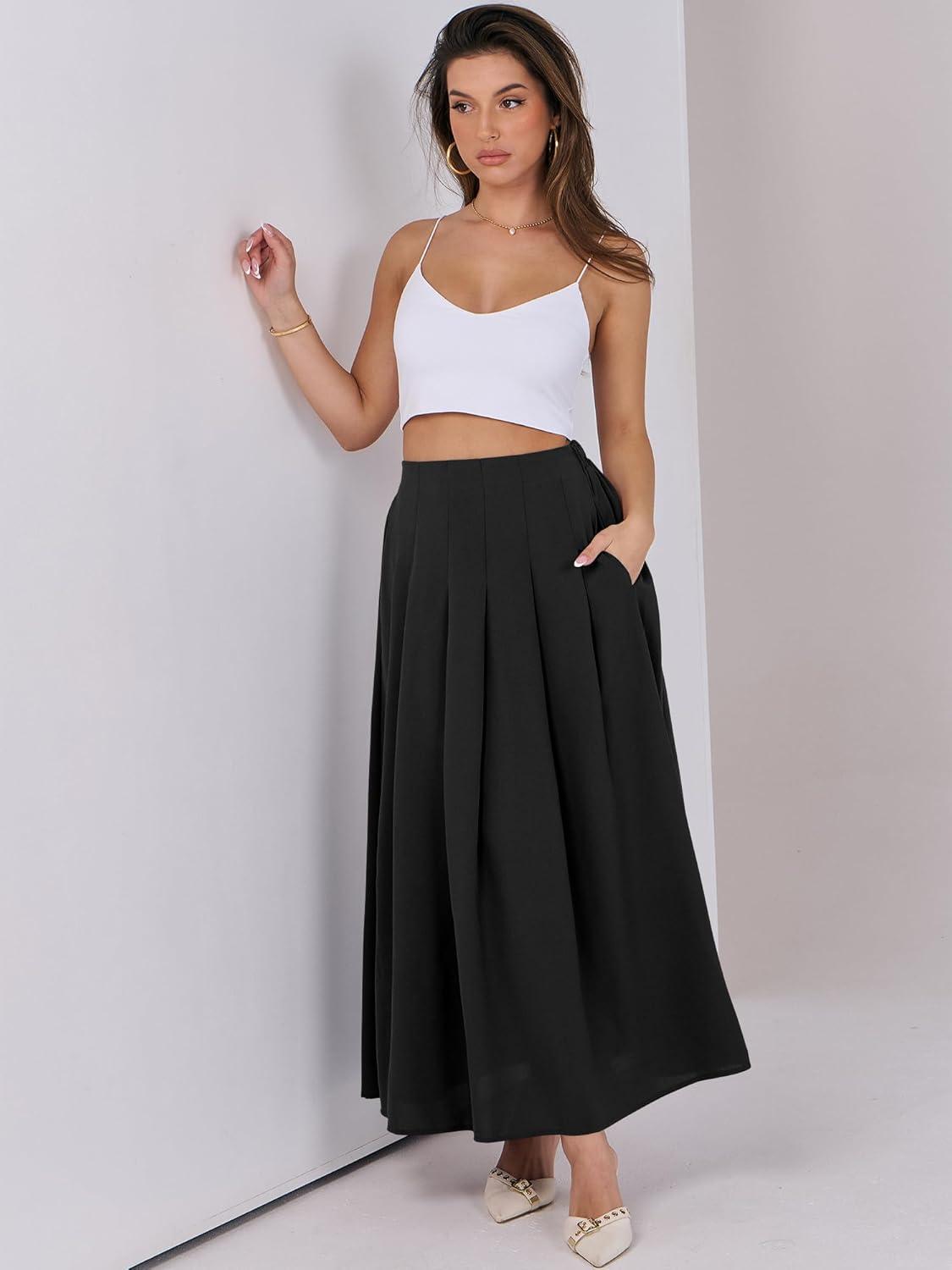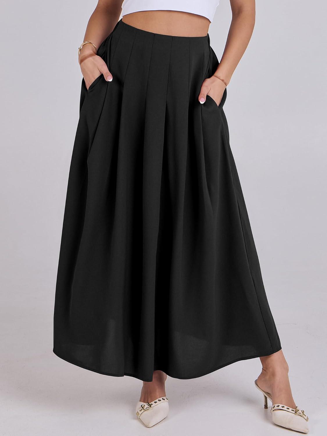 ANRABESS Women A-Line Pleated High Waist Maxi Skirt Full Ankle Length Flowy Swing Elegant Dressy Casual Work Long Skirts(Black)