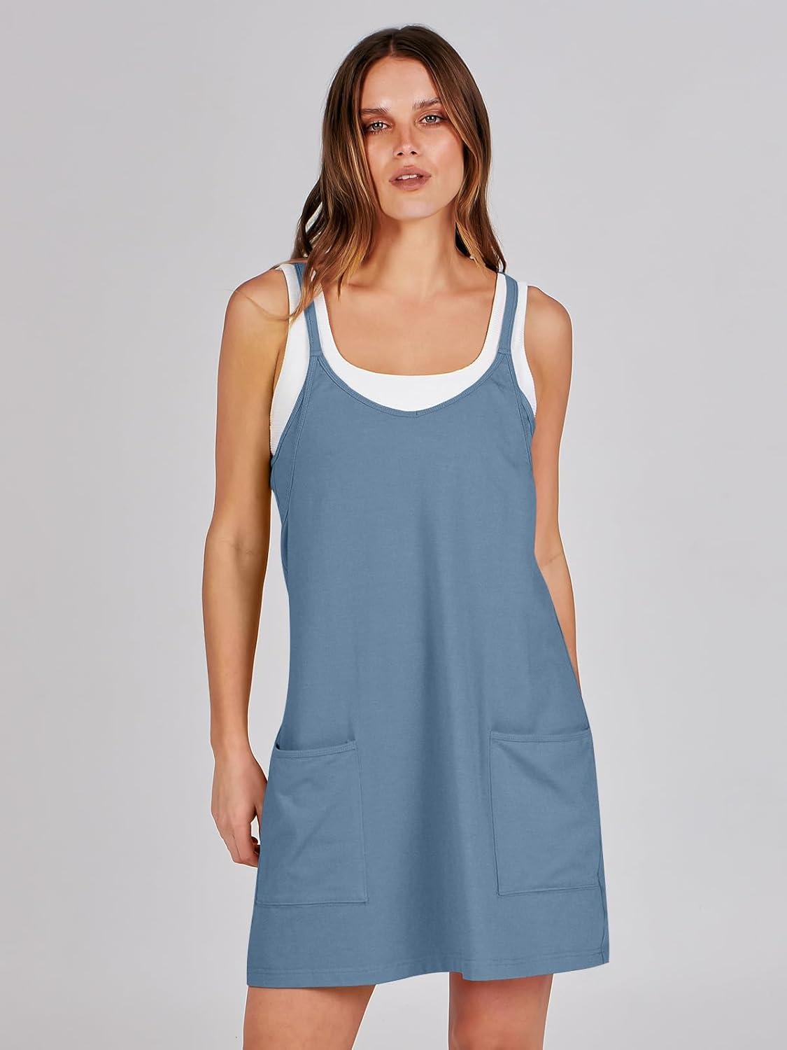 ANRABESS Women Athletic Dress Summer Tennis Workout Active Sports Mini Romper Dress Built in Shorts Travel Vacation Clothes(Blue)