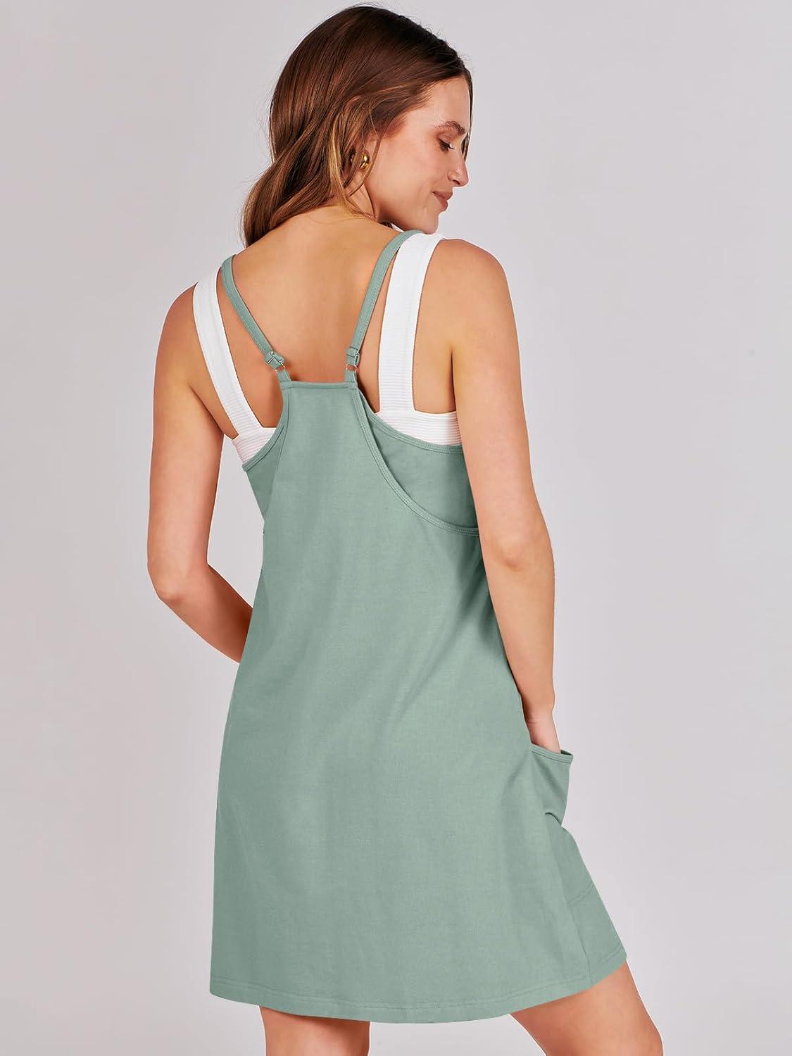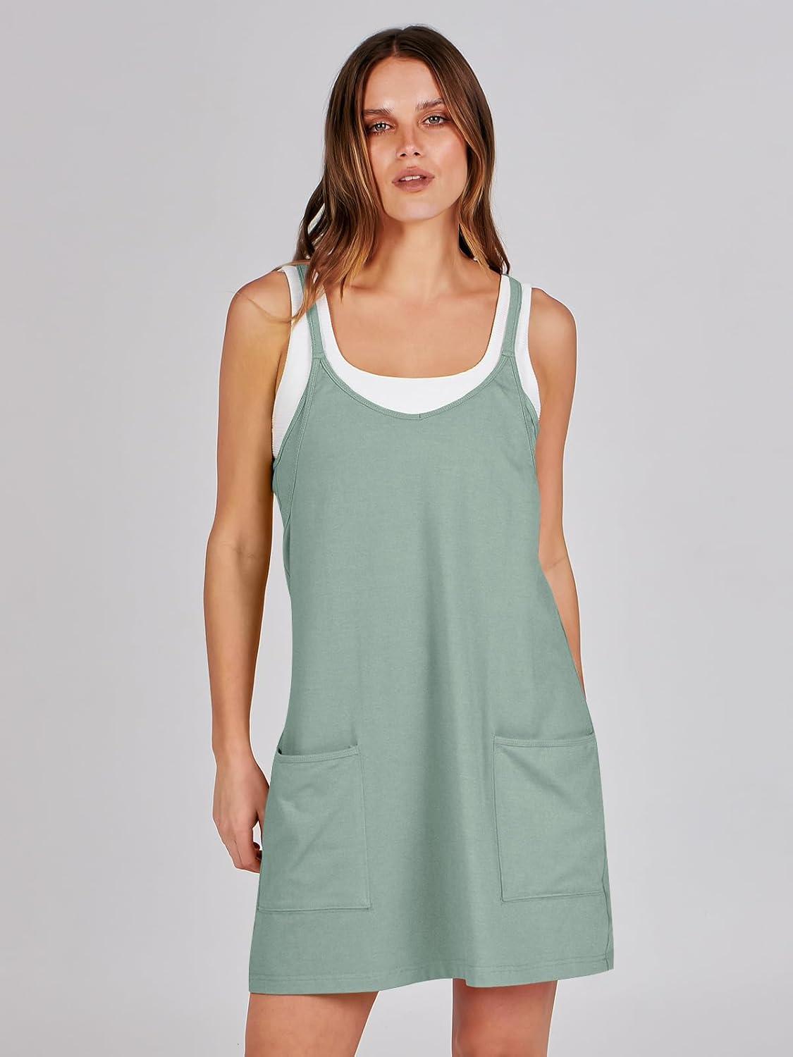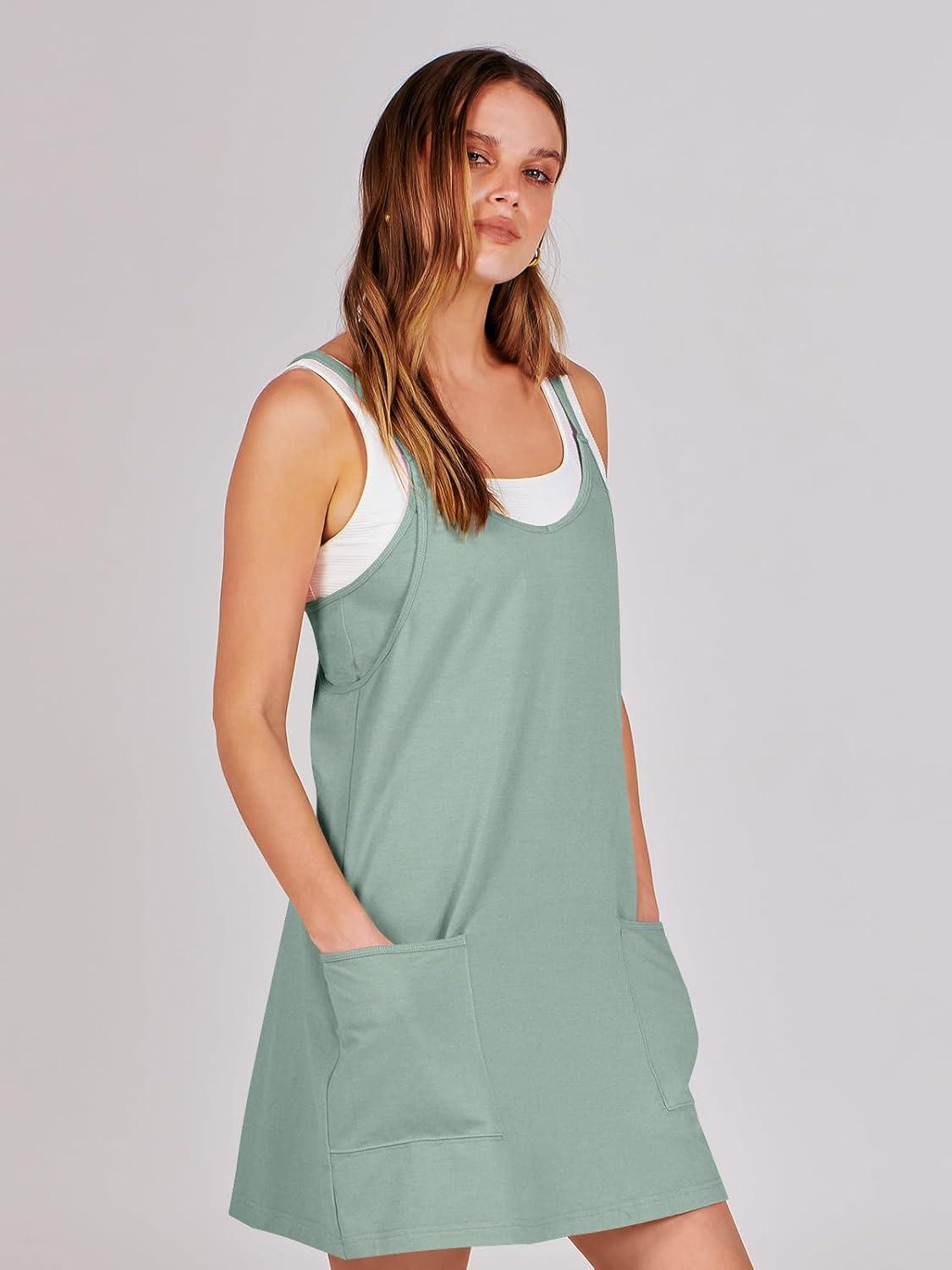 ANRABESS Women Athletic Dress Summer Tennis Workout Active Sports Mini Romper Dress Built in Shorts Travel Vacation Clothes(Gray Blue)