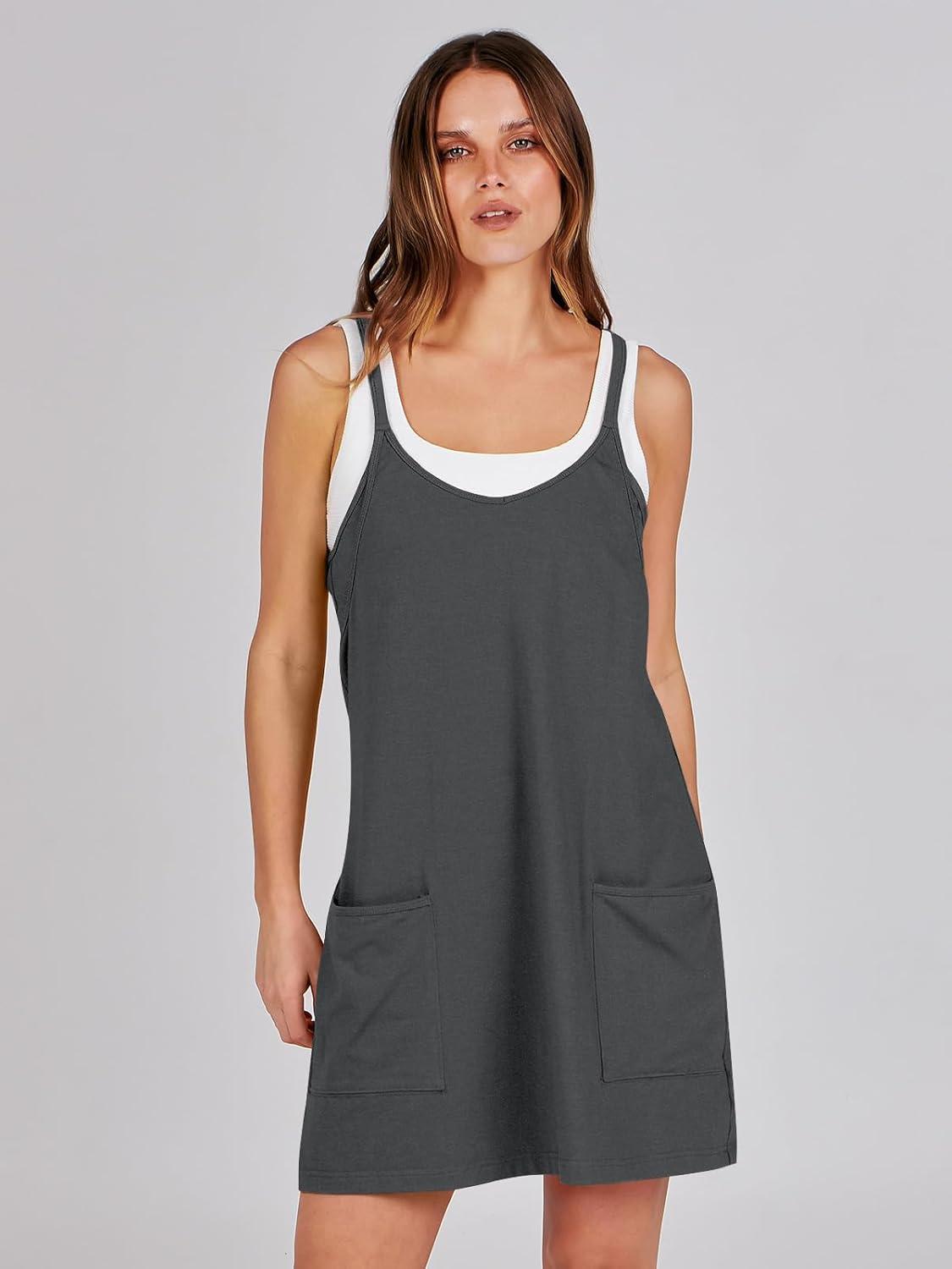 imageANRABESS Women Athletic Dress Summer Tennis Workout Active Sports Mini Romper Dress Built in Shorts Travel Vacation ClothesDeep Gray